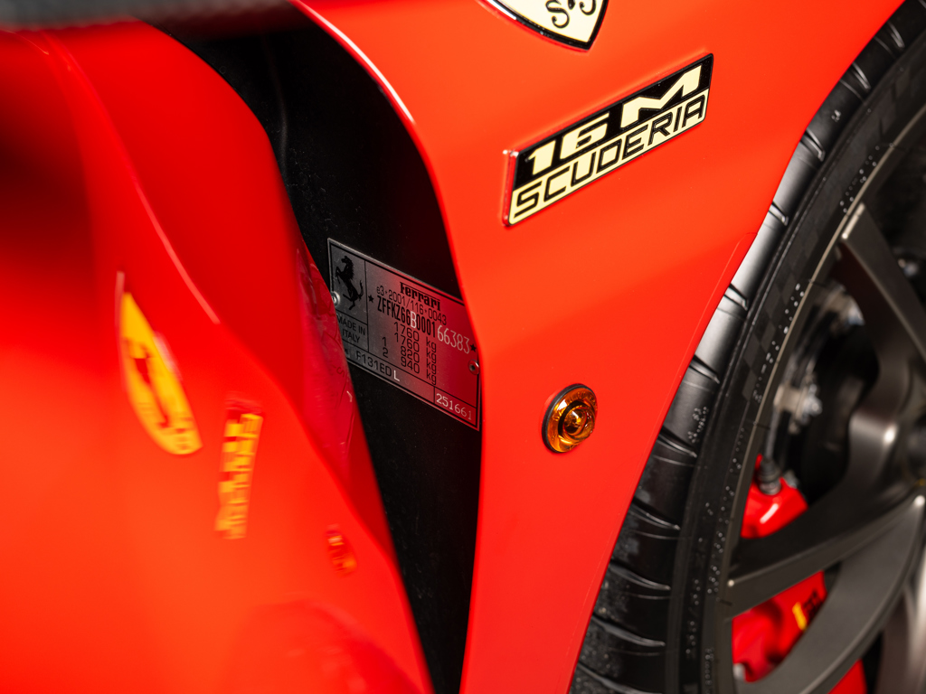 One of just 499 limited-edition cars built to celebrate Ferrari’s 2008 Formula 1 World Championship Constructors’ title Finished in Rosso Corsa over Nero Alcantara with matching Nero soft-top Wears Ferrari’s carbon fibre exterior package; interior is enhanced by carbon fibre racing seats Delivered new to Switzerland via Sportgarage Leirer AG Showing 13,252 kilometres on its odometer at the time of cataloguing Certified in December 2020 by Ferrari Classiche, which verified matching-numbers engine and gearbox Benefits from servicing by official Ferrari dealer Kessel of Zug in July 2025 Accompanied by its original Ferrari books and manuals