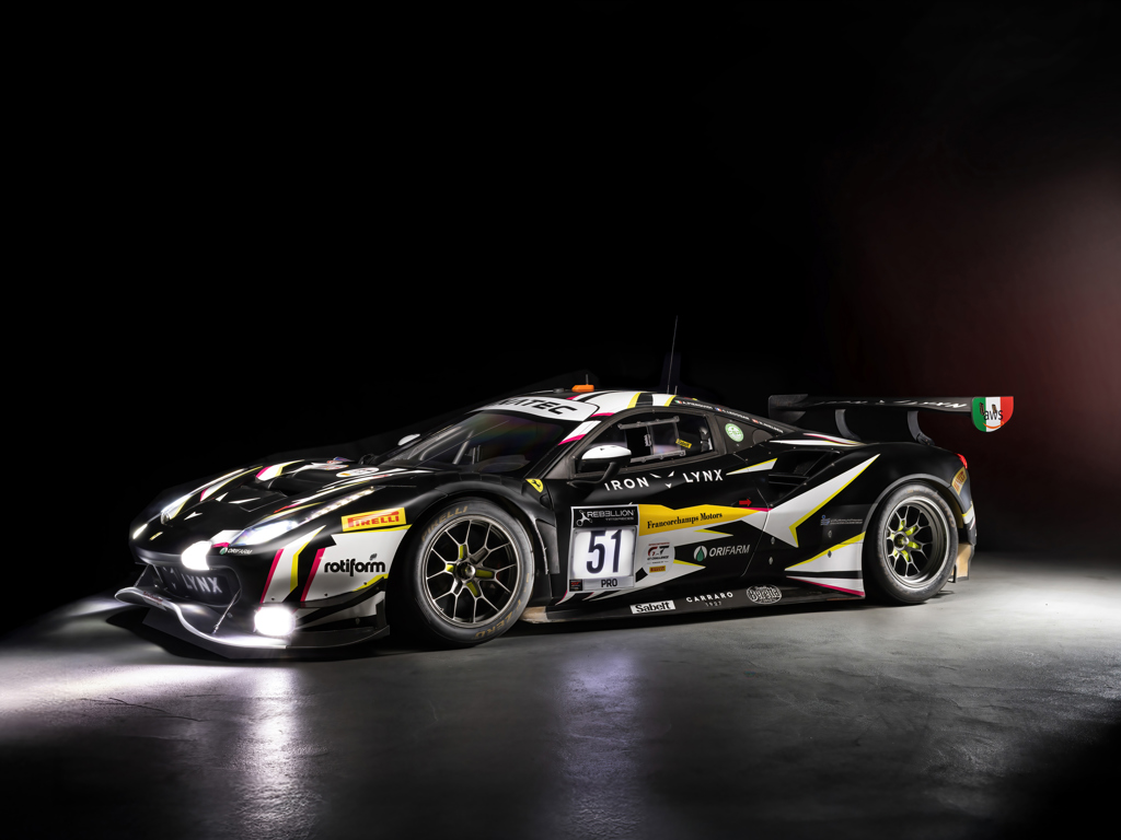 This is a 2020 Ferrari 488 GT3 Evo, chassis No. 4606, that claimed overall victory in the 24 Hours of Spa in 2021. It was supplied new to AF Corse in partnership with Iron Lynx and driven to victory in the 2021 GT World Challenge Europe Endurance Cup Drivers’ championship.