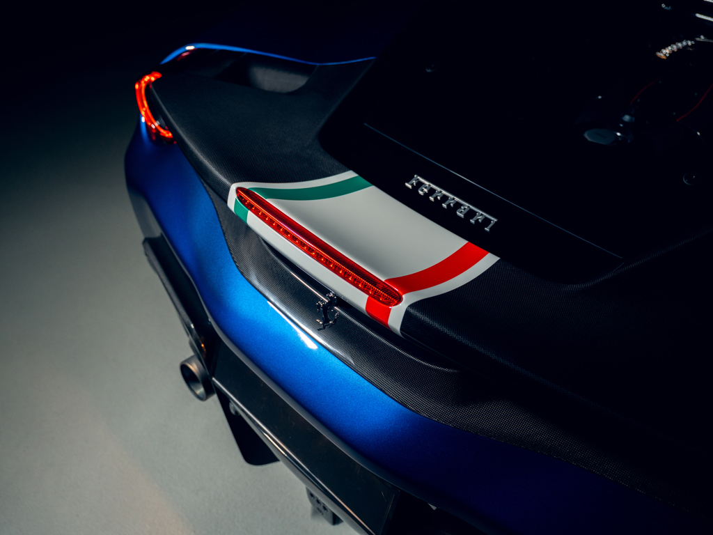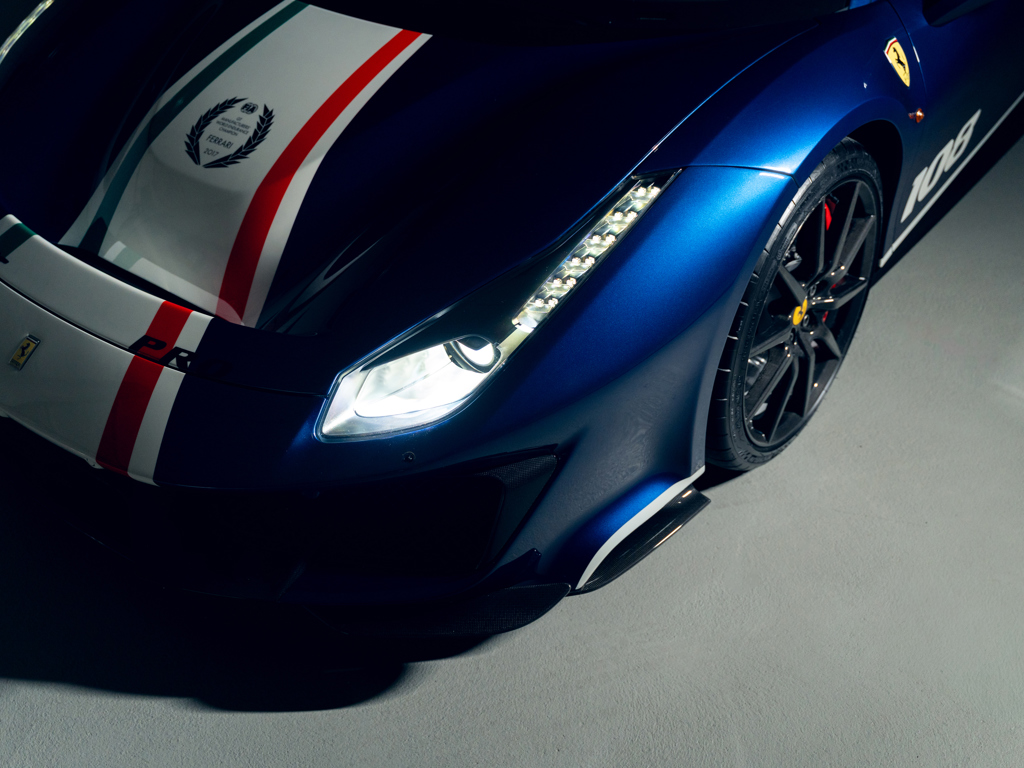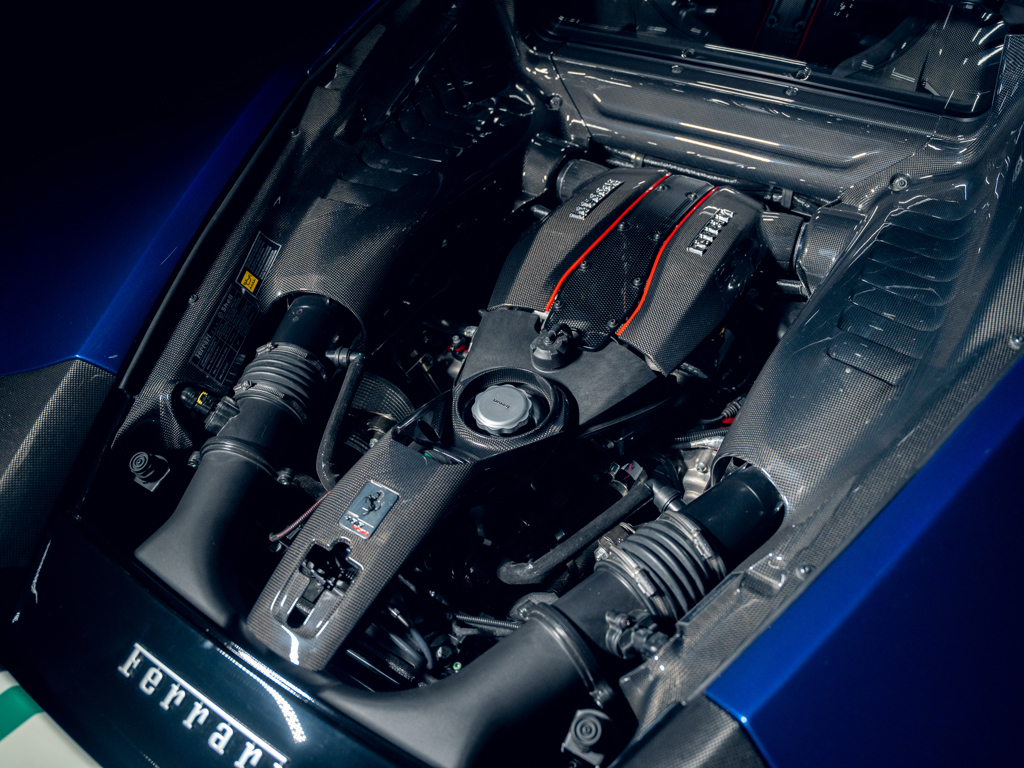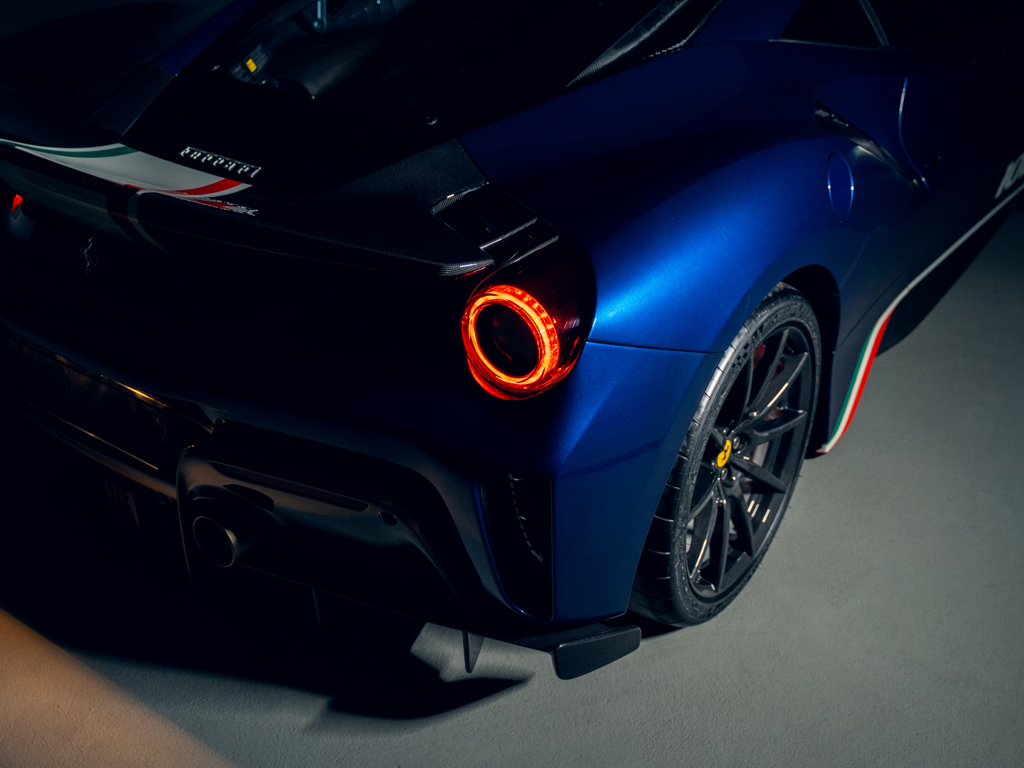 Among the rarest 488 Pista variants; offered exclusively to Ferrari’s client racing drivers Finished in Blu Tour De France with Tricolore accents over Alcantara Nero Swiss-delivery example retained from new by The Tailored For Speed Collection Certified by Ferrari with its “Special Equipment” Grey Book Odometer reads a mere 3,695 kilometres at the time of cataloguing Accompanied by its Ferrari owner’s manual and warranty book