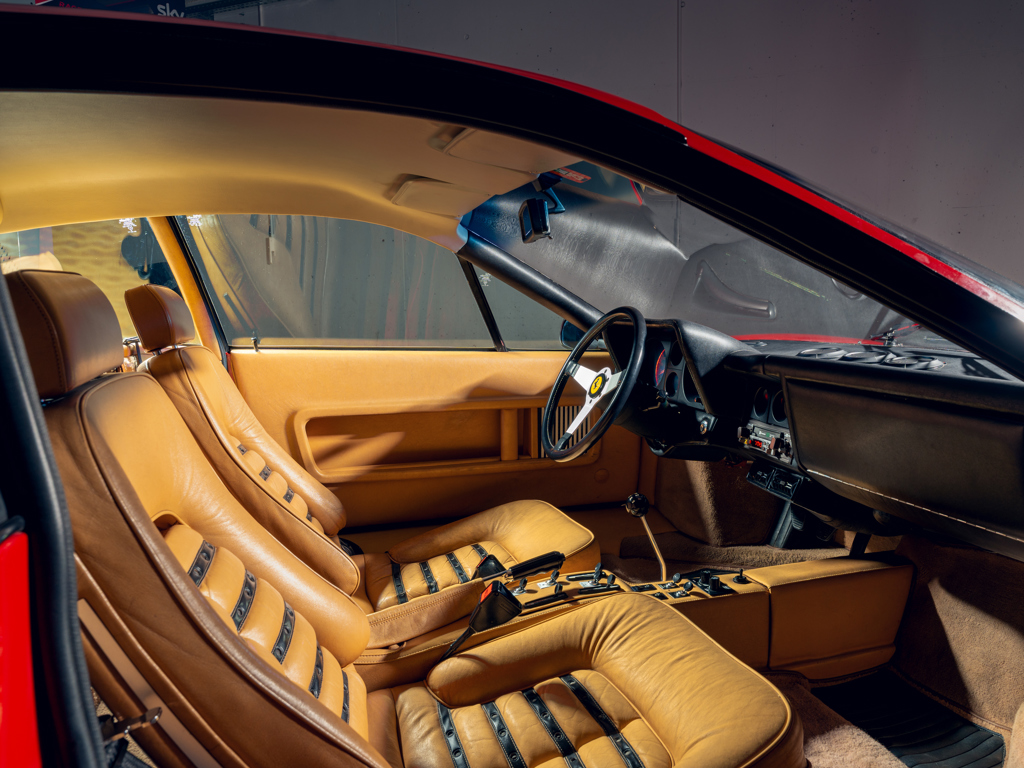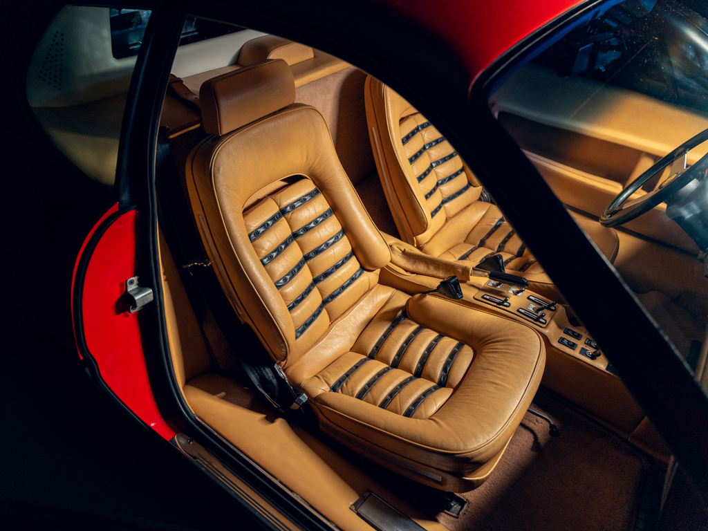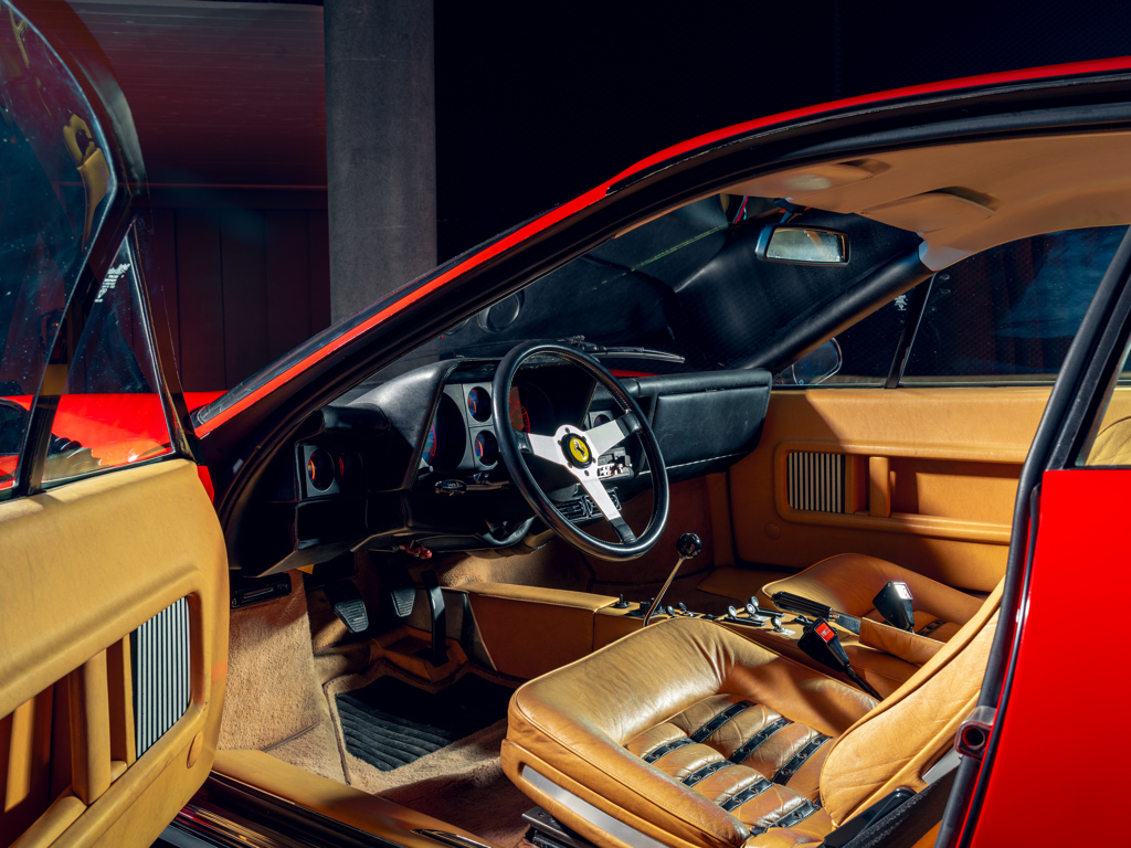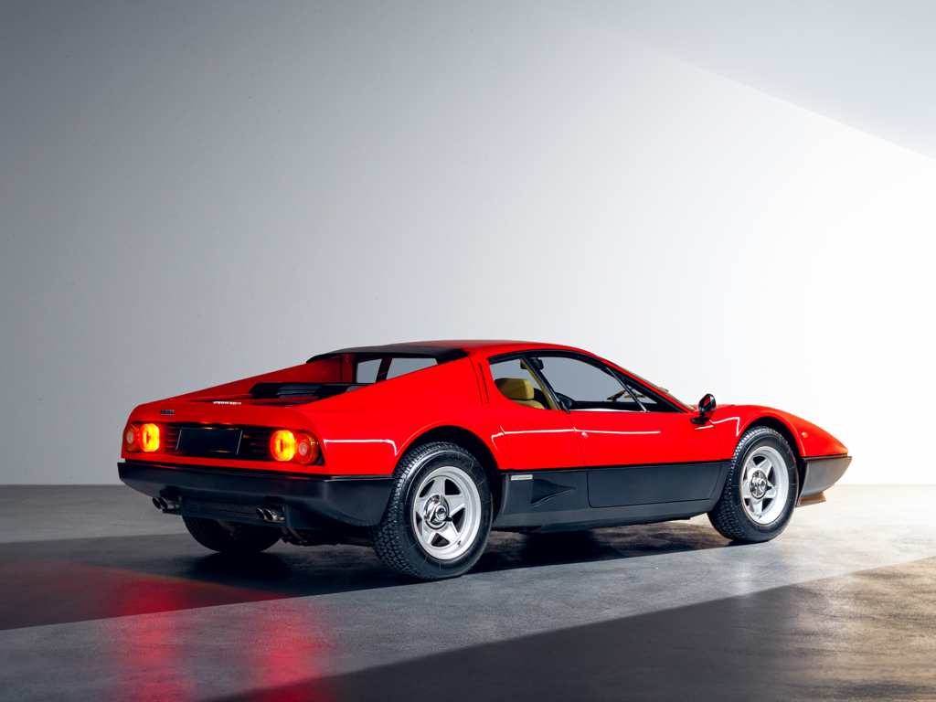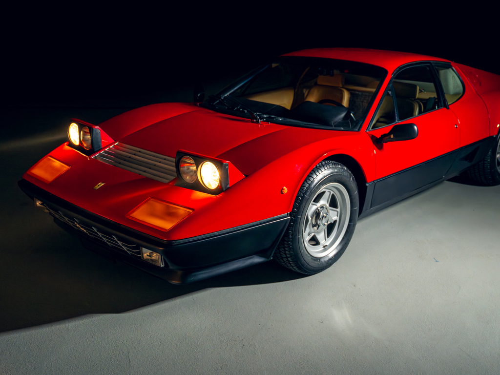 One of only 929 examples of the carburettor-fed 512 BB built between 1976 and 1981; one of only approximately 100 examples sold new to Switzerland, arriving via official Ferrari importer SAVAF of Geneva Finished in its factory-correct colour pairing of Rosso Chiaro over Beige Connolly leather trim Powered by its matching-numbers 4,943-cc flat-12 engine factory-rated at 355 horsepower; also retains its original gearbox Offered with its original Ferrari books and manuals including Warranty Card; also accompanied by a jack, space saver spare wheel, and tool kit