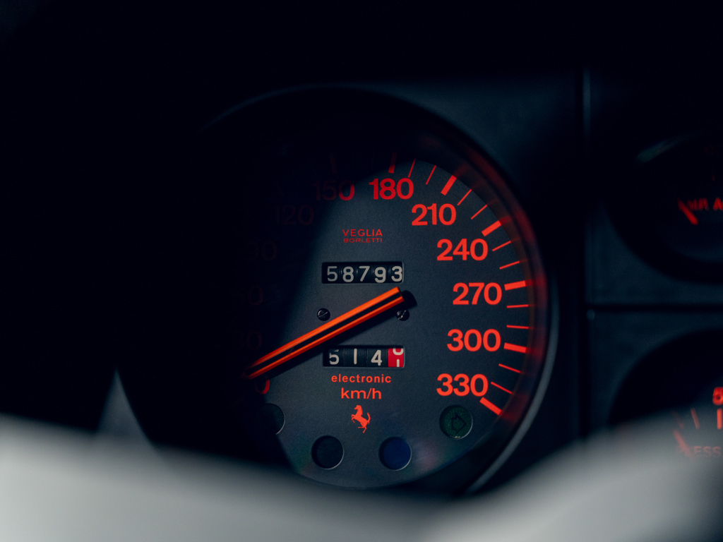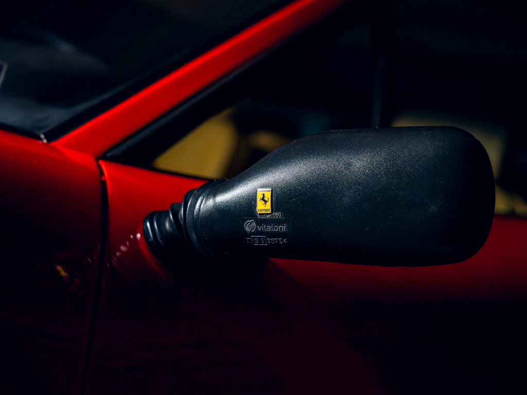The car is described as being finished in its factory-correct color pairing and retains its original gearbox, Ferrari books, manuals, Warranty Card, jack, space saver spare wheel, and tool kit. The listing suggests that it is very well-maintained with minimal cosmetic imperfections.