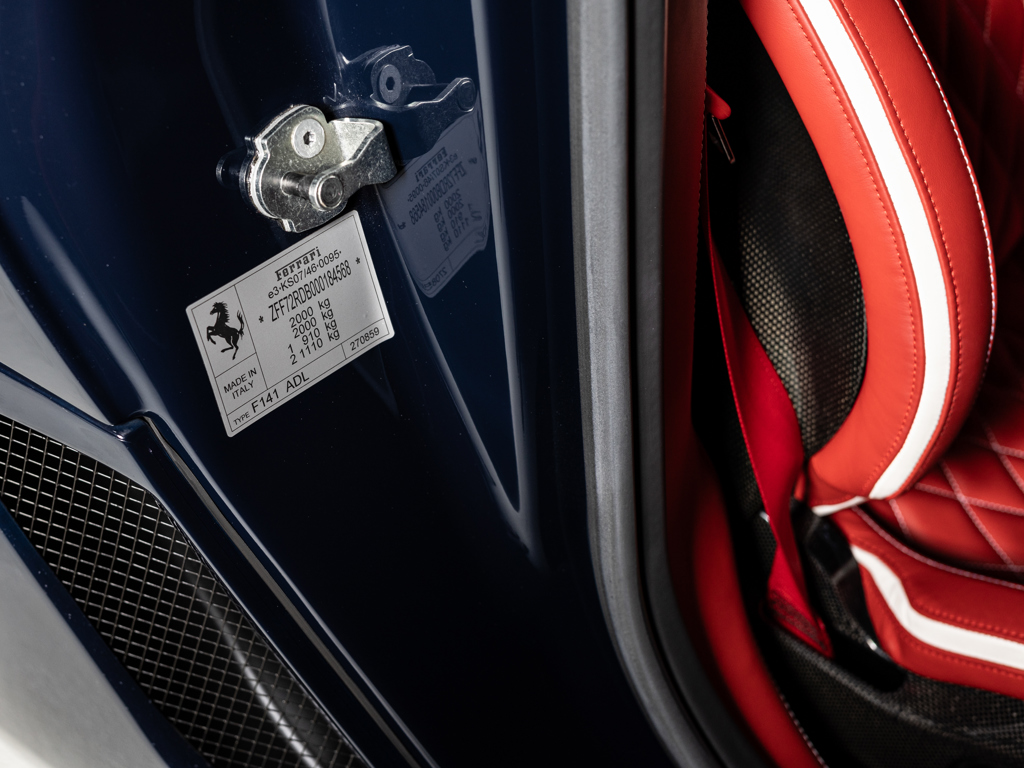 Among the rarest of modern, limited-production Ferraris; one of only 80 stated examples built to celebrate Pininfarina’s 80th anniversary Sensational one-off livery of Blu Pozzi with Bianco Avus accents and painted Ferrari shields over a cabin of Rosso leather with Bianco details Displays just 6,216 kilometres at the time of cataloguing Certified by Ferrari Classiche in March 2012 Delivered new to Switzerland; acquired by The Tailored For Speed Collection in 2015 Exceptionally well-serviced example with a recent fluid and filter service conducted by Kessel of Zug in February 2025 Accompanied by its original books and manuals, tool and tyre kit, plus leather cover for the roof