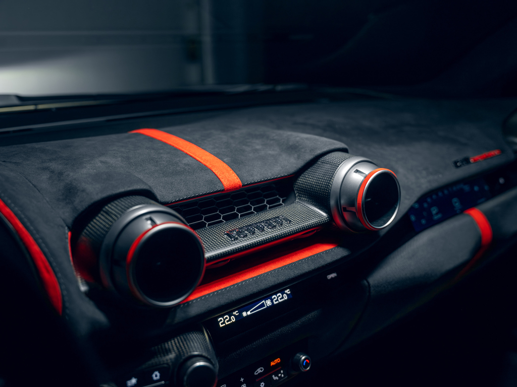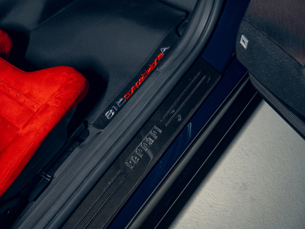 This 2024 Ferrari 812 Competizione A, with only 106 kilometers and a single owner, is practically brand new. Its unique features like the engine cover signed by Charles Leclerc and Carlos Sainz enhance its collectibility and value.