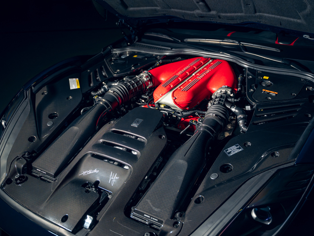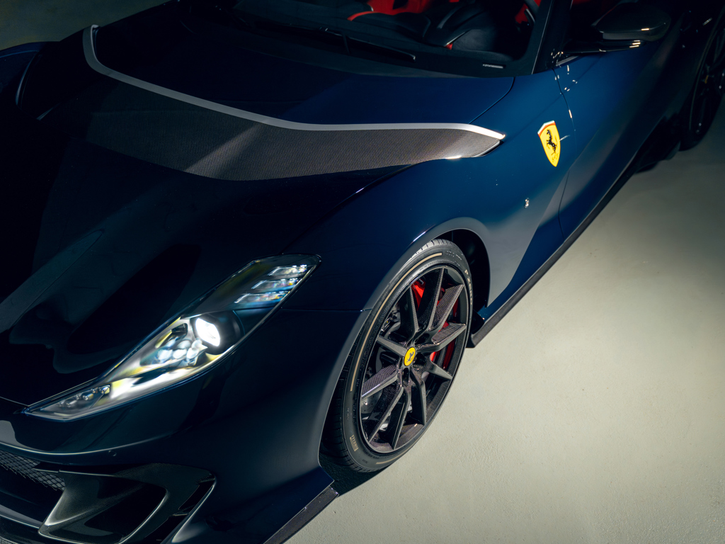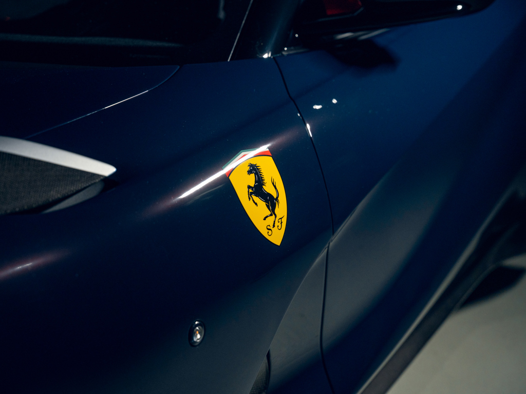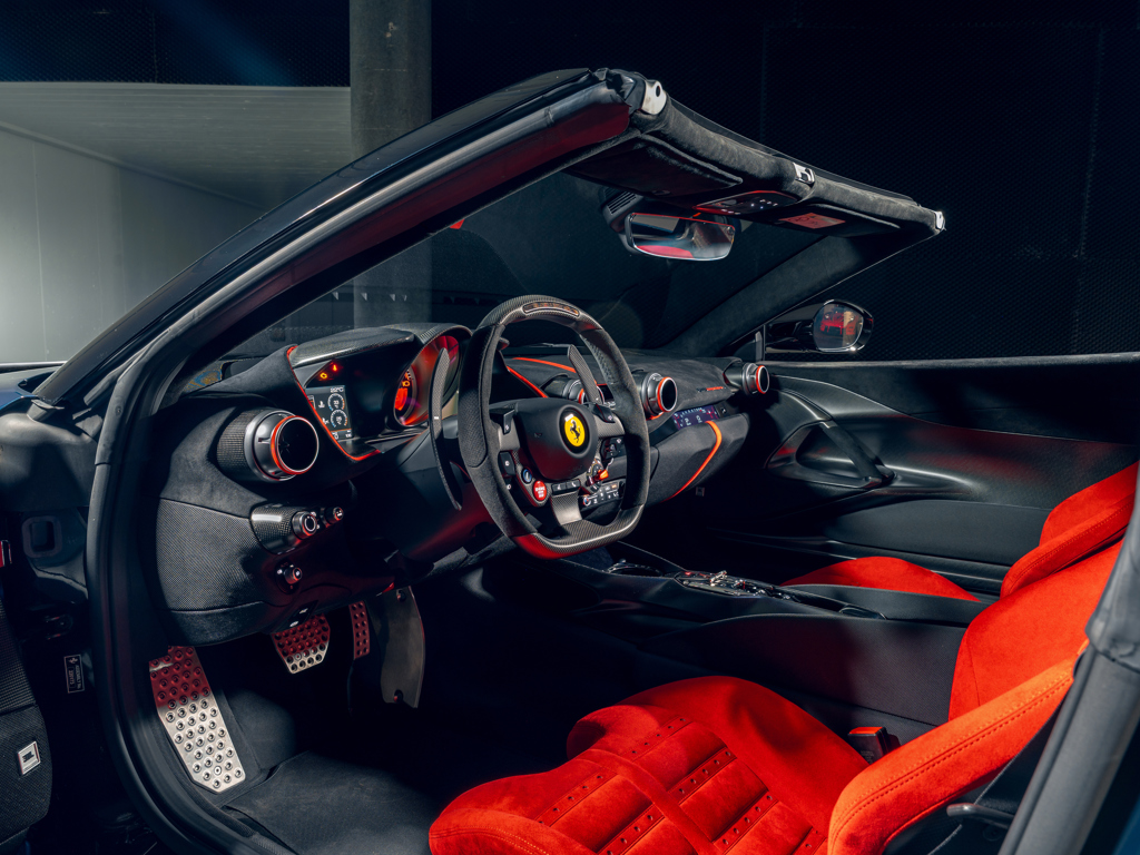 Open-top expression of what was Ferrari’s most powerful naturally aspirated road car upon its debut One of a stated 599 examples produced globally Delivered new to Switzerland via Niki Hasler AG; single ownership and only 106 kilometres at the time cataloguing Finished in striking Blu Pozzi with Argento Nurburgring accents over a Nero and Rosso Alcantara interior Engine cover signed by former Ferrari Formula 1 team-mates Charles Leclerc and Carlos Sainz Serviced by official Ferrari dealer Kessel of Zug in April 2025 Accompanied by its Ferrari books, manuals, and Classiche book