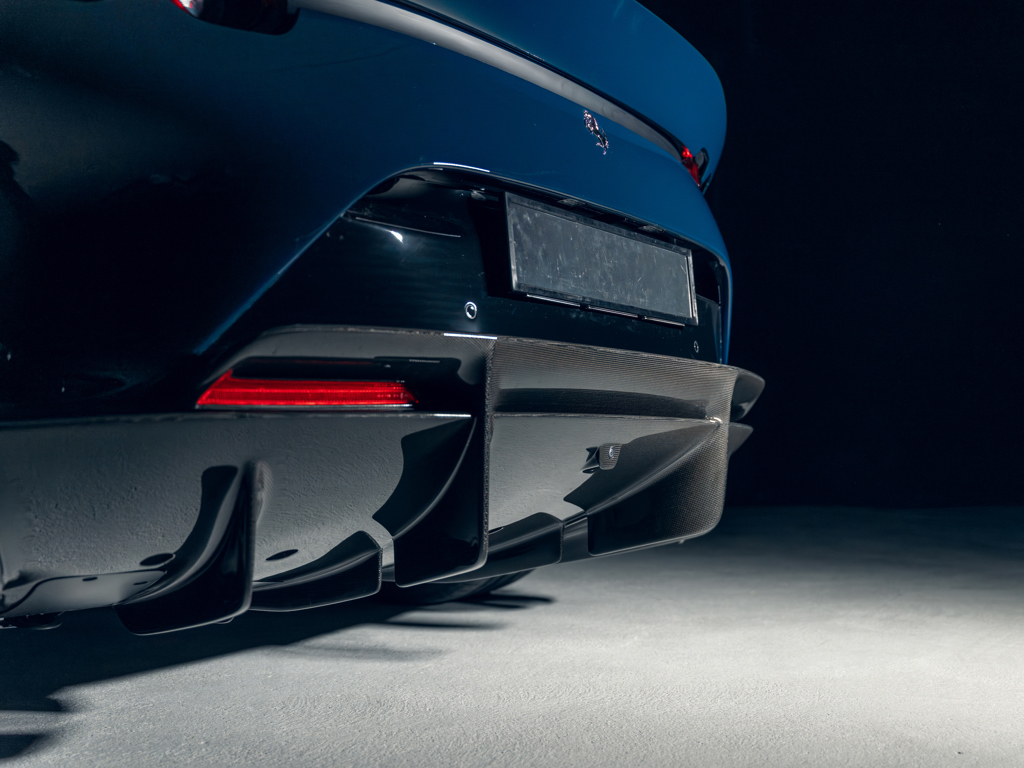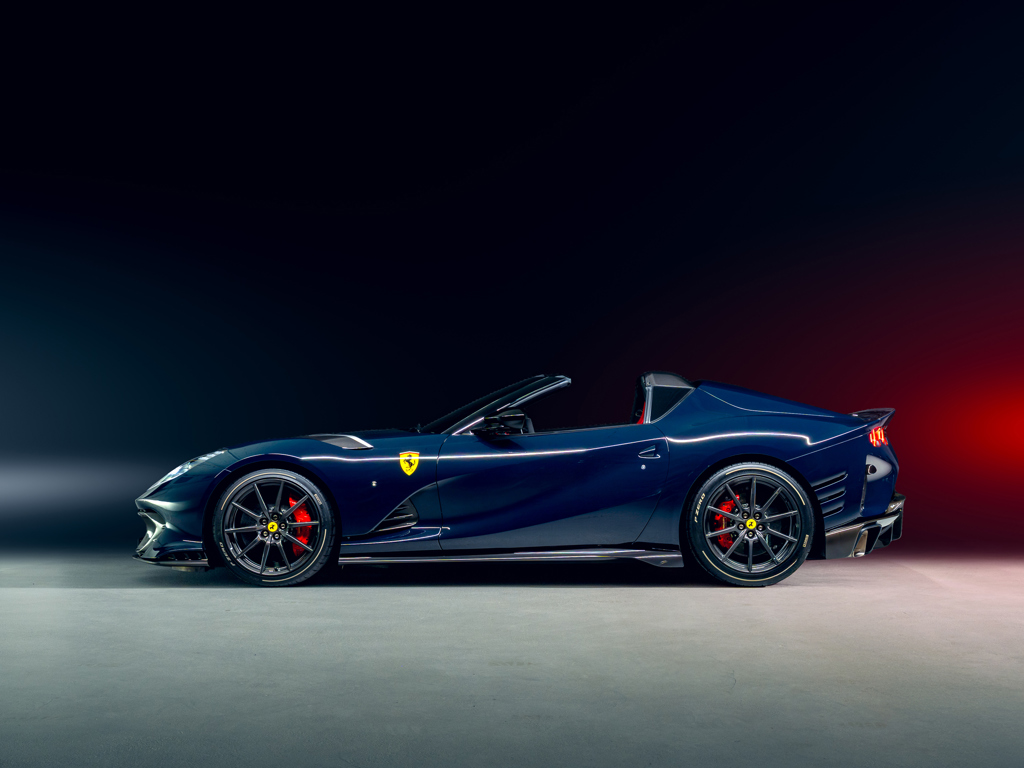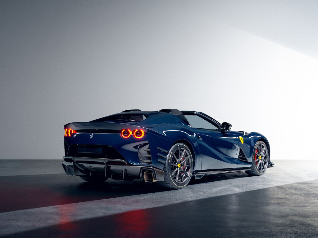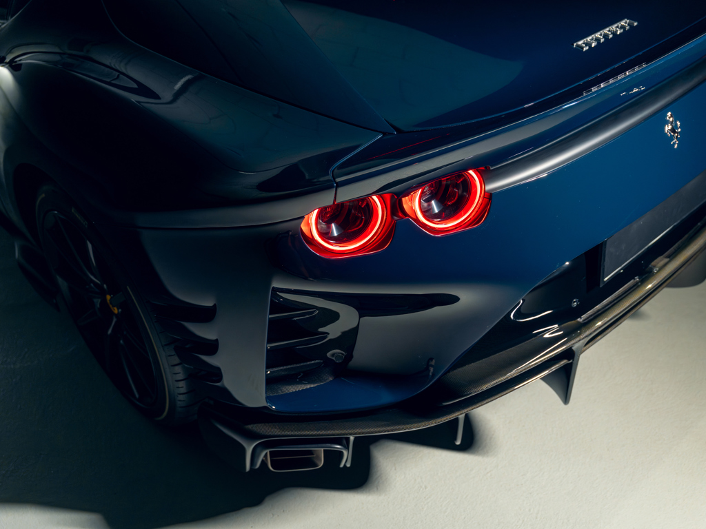 Open-top expression of what was Ferrari’s most powerful naturally aspirated road car upon its debut One of a stated 599 examples produced globally Delivered new to Switzerland via Niki Hasler AG; single ownership and only 106 kilometres at the time cataloguing Finished in striking Blu Pozzi with Argento Nurburgring accents over a Nero and Rosso Alcantara interior Engine cover signed by former Ferrari Formula 1 team-mates Charles Leclerc and Carlos Sainz Serviced by official Ferrari dealer Kessel of Zug in April 2025 Accompanied by its Ferrari books, manuals, and Classiche book