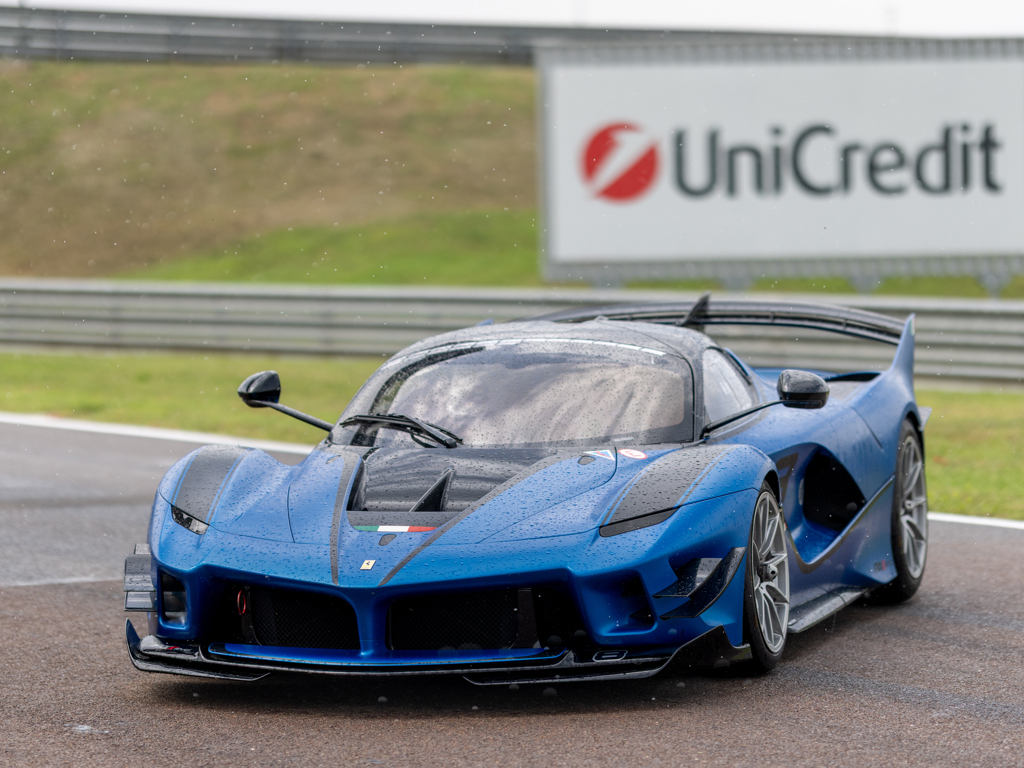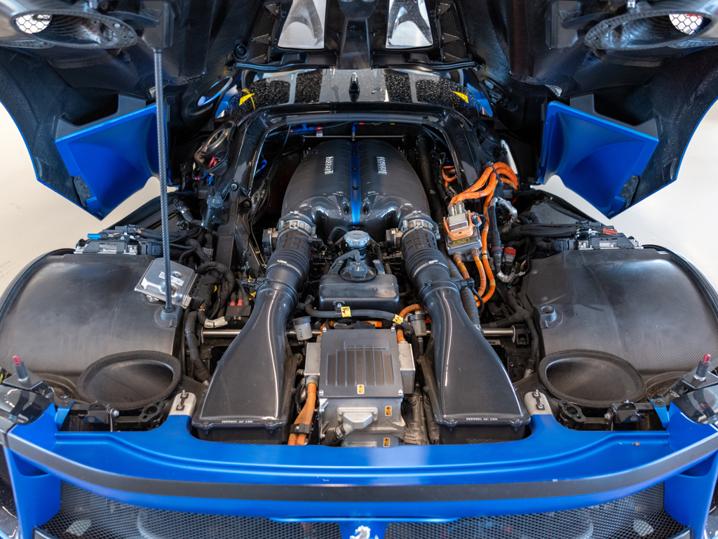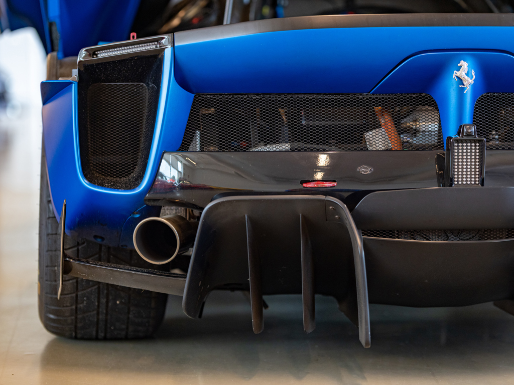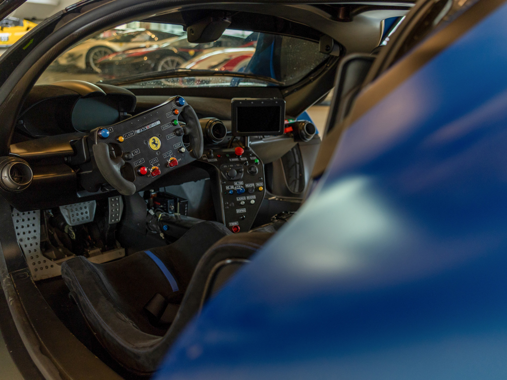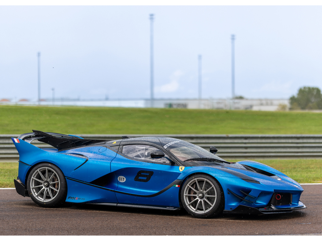One of approximately 60 examples built Liveried in two-tone Blu Corsa Opaco paint with Nero Stellato Opaco accents over a Nero Alcantara interior Upgraded by Ferrari Corse Clienti to Evoluzione specifications Certified in 2017 as a matching-numbers example with a Ferrari Classiche "Red Book" Odometer displays 5,709 kilometres at the time of cataloguing A rare example of the legendary XX Programme’s most advanced V-12 model