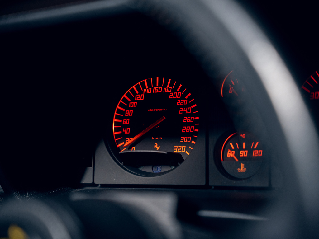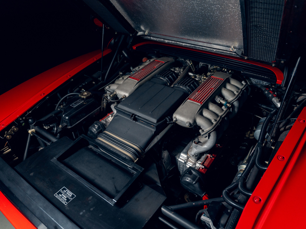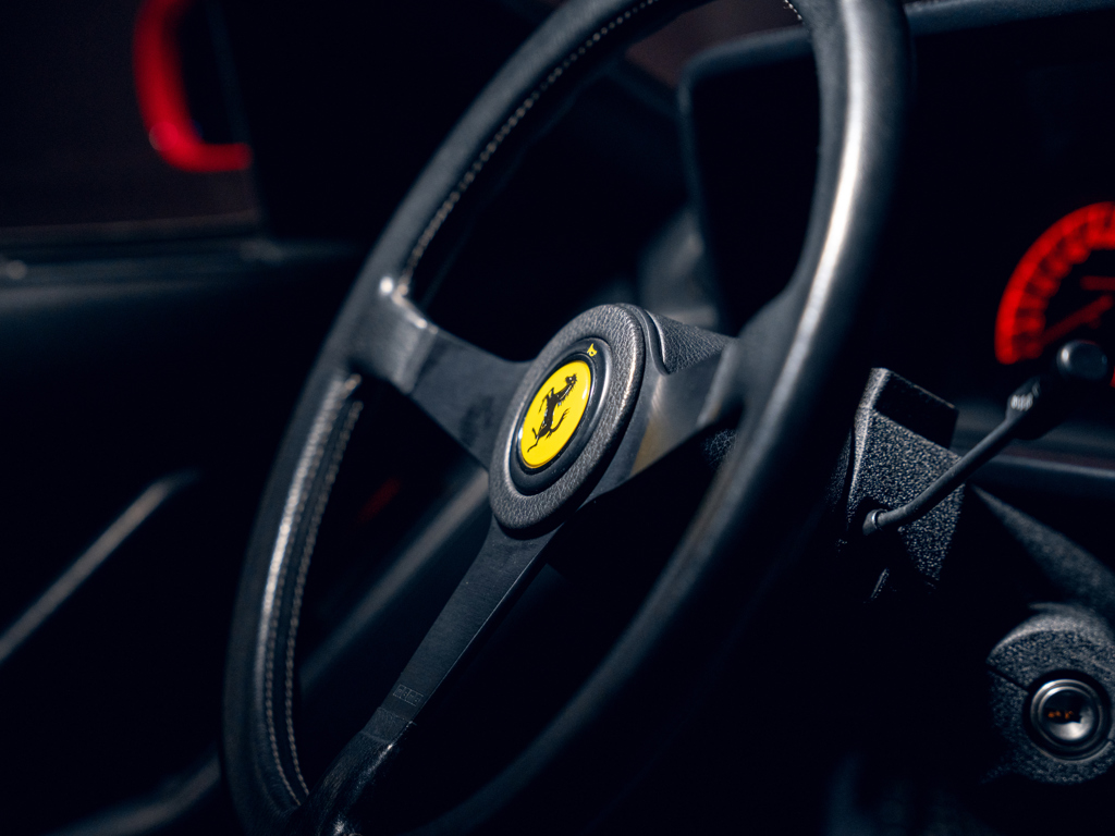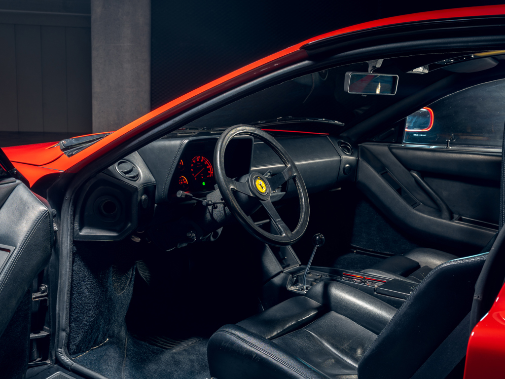 Iconic 1980s supercar delivered new with desirable ‘Monodado’ centre-lock wheels Finished in its factory-correct colour pairing of Rosso Corsa over Nero Ferrari Classiche certified in July 2015; retains its matching-numbers chassis, engine, and gearbox Delivered new to Switzerland and supplied through Autodino AG of Zurich Accompanied by its original Ferrari books, including factory Warranty Card, and manuals with jack kit