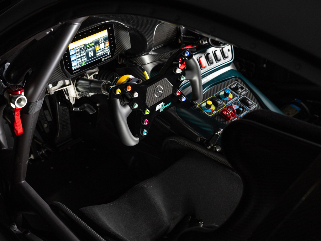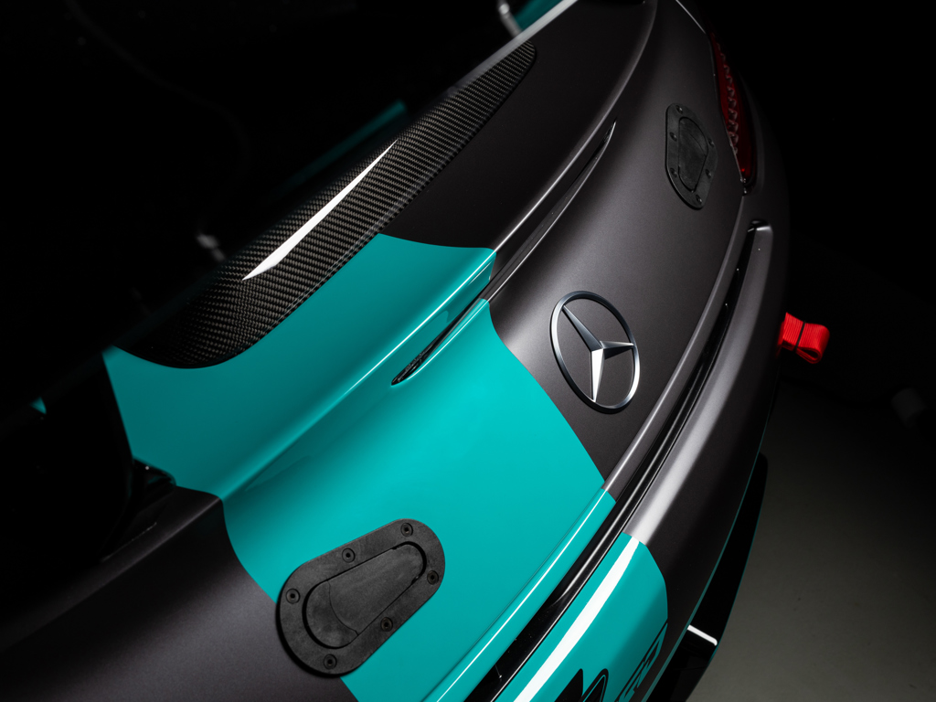 The fastest, most extreme customer track-focused car that AMG had ever produced at the time of its launch Push2Pass function unlocks a colossal 750 horsepower from the 4.0 biturbo V-8 Finished in the model-exclusive, Formula 1-inspired livery of Special PRO Matte Grey with Petronas Green detailing Delivered new to Switzerland and retained by The Tailored For Speed Collection as the sole owner