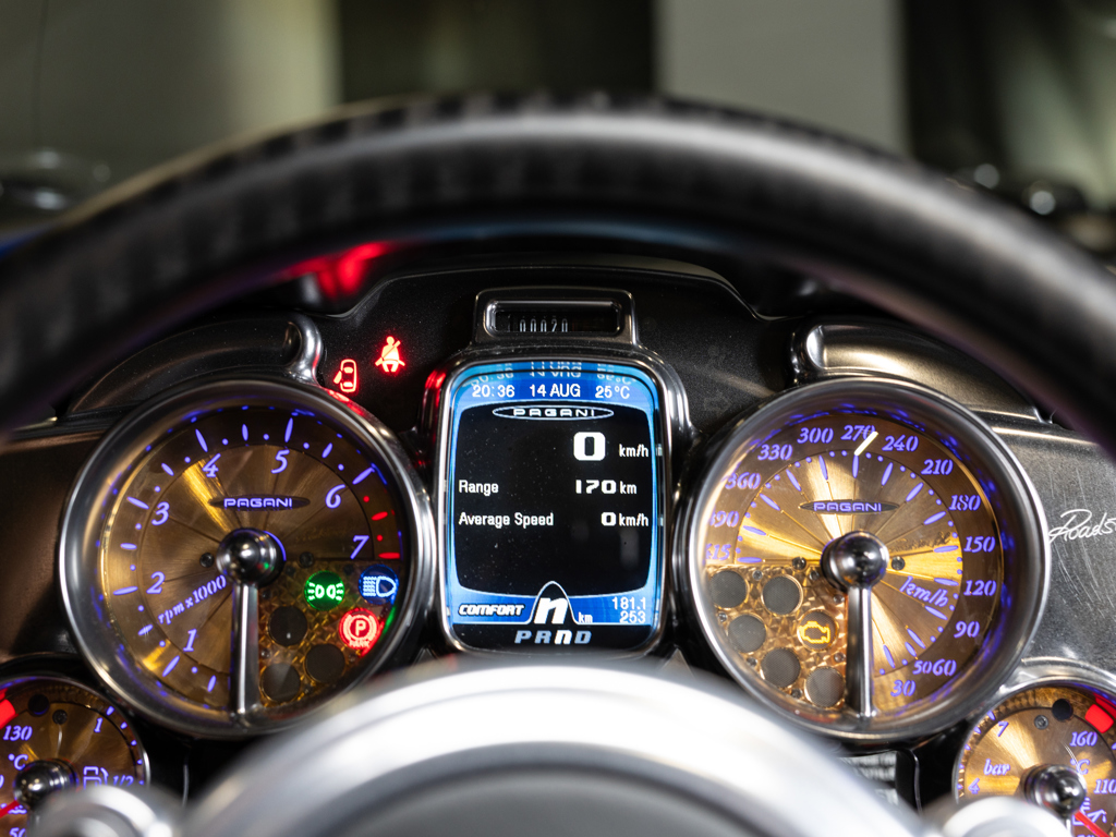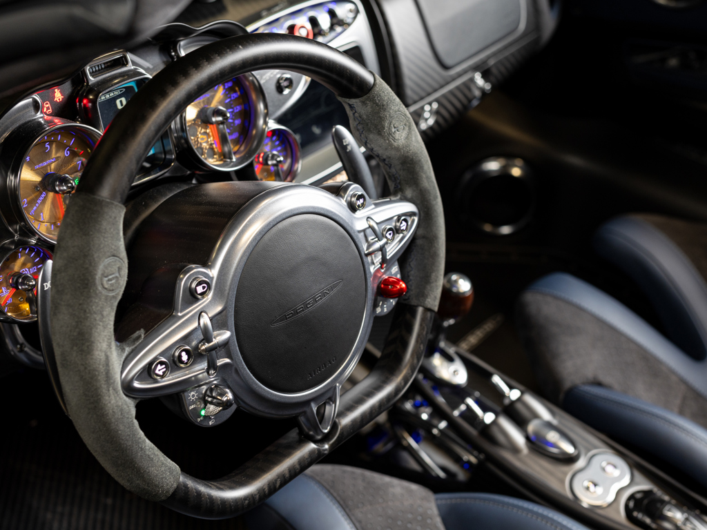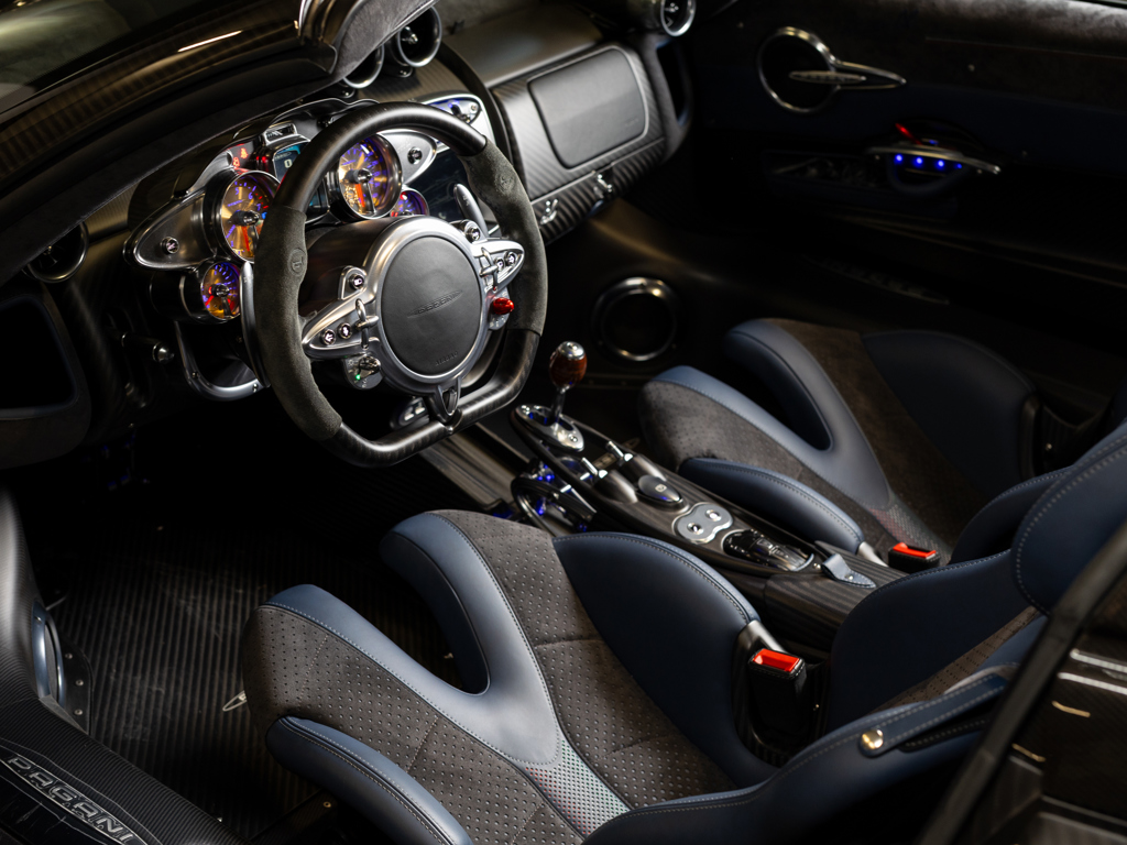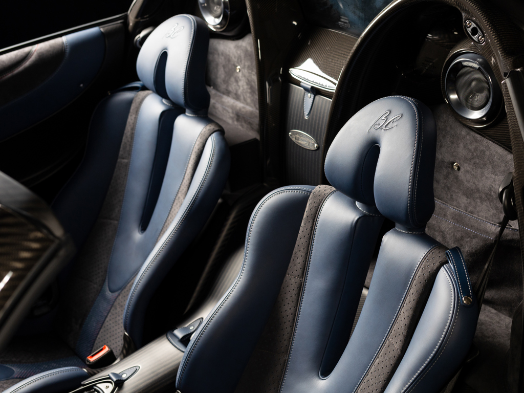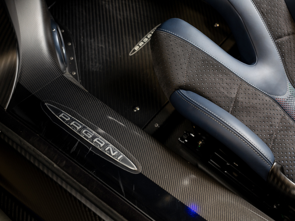 The 33rd of only 40 examples produced to honour Benny Caiola, Pagani Automobili’s first customer Offered from its original owner with 253 kilometres displayed since new Delivered new to Switzerland via an official Pagani dealership in August 2021 Incredibly specified in Glossy Blue Francia and Glossy Crystal Clear Carbon, with Dark Grey Alcantara and New Jeans Leather interior complemented by hard-finish carbon fibre surfaces and Tricolore stitching on door panels