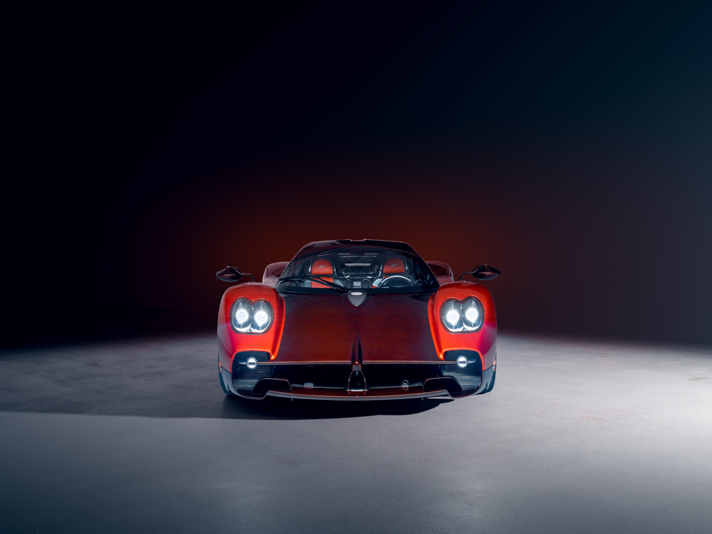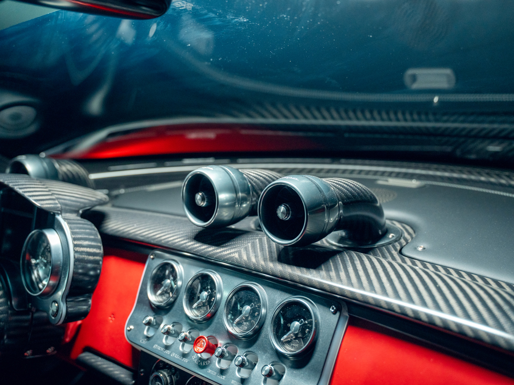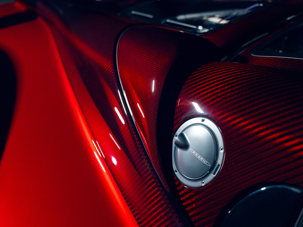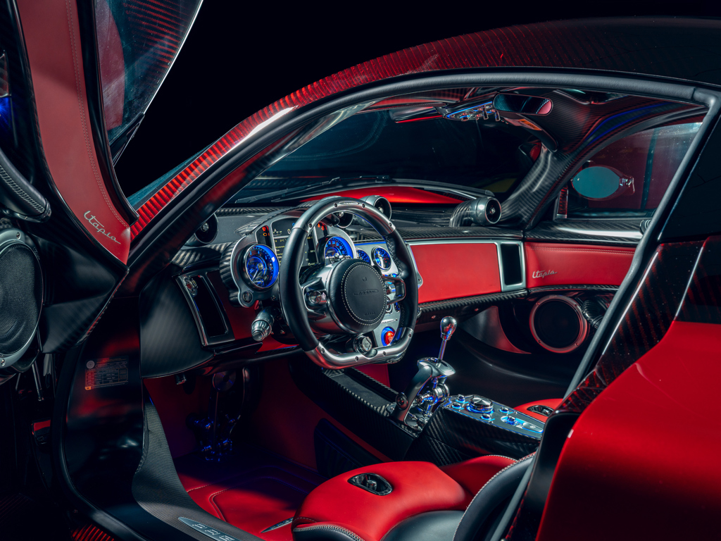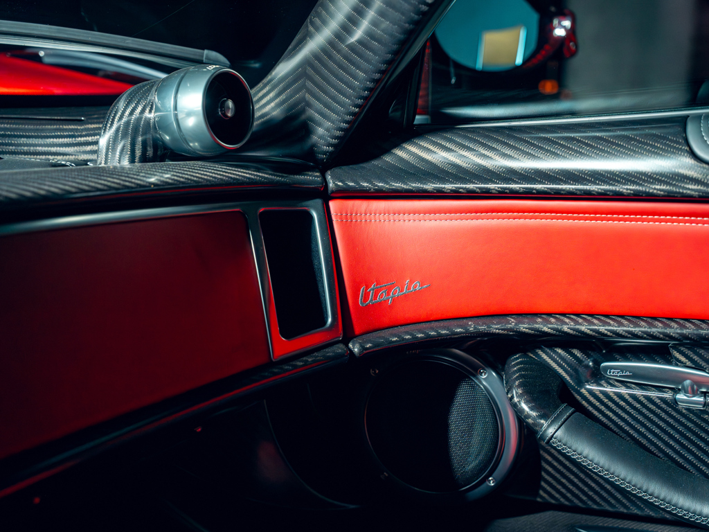 This 2024 Pagani Utopia, chassis number ZA9U11EC9YSF76024, is a rare find with an Xtrac seven-speed automated-manual transmission. Finished in Rosso Dubai with red carbon fiber accents, it has only 48 kilometers and is offered from its original owner in Zurich, Switzerland.