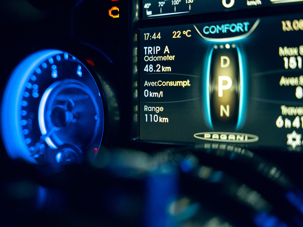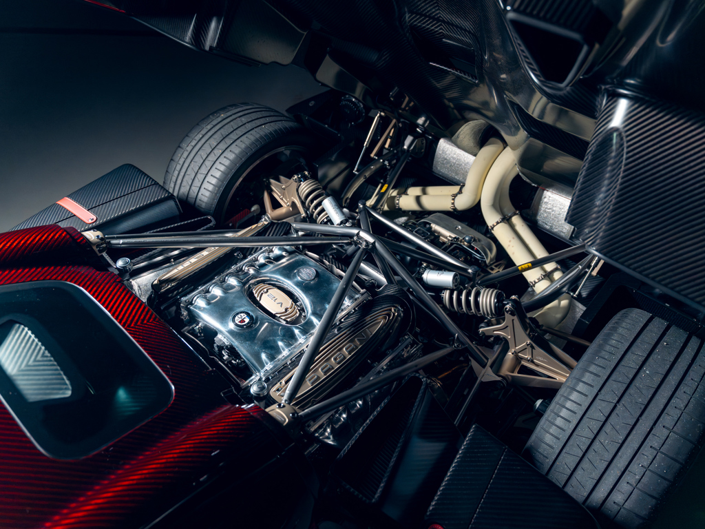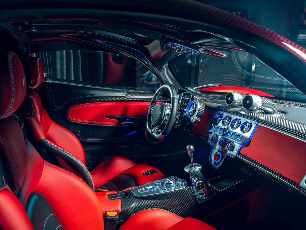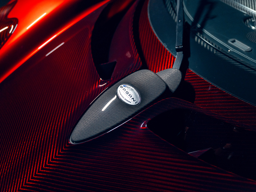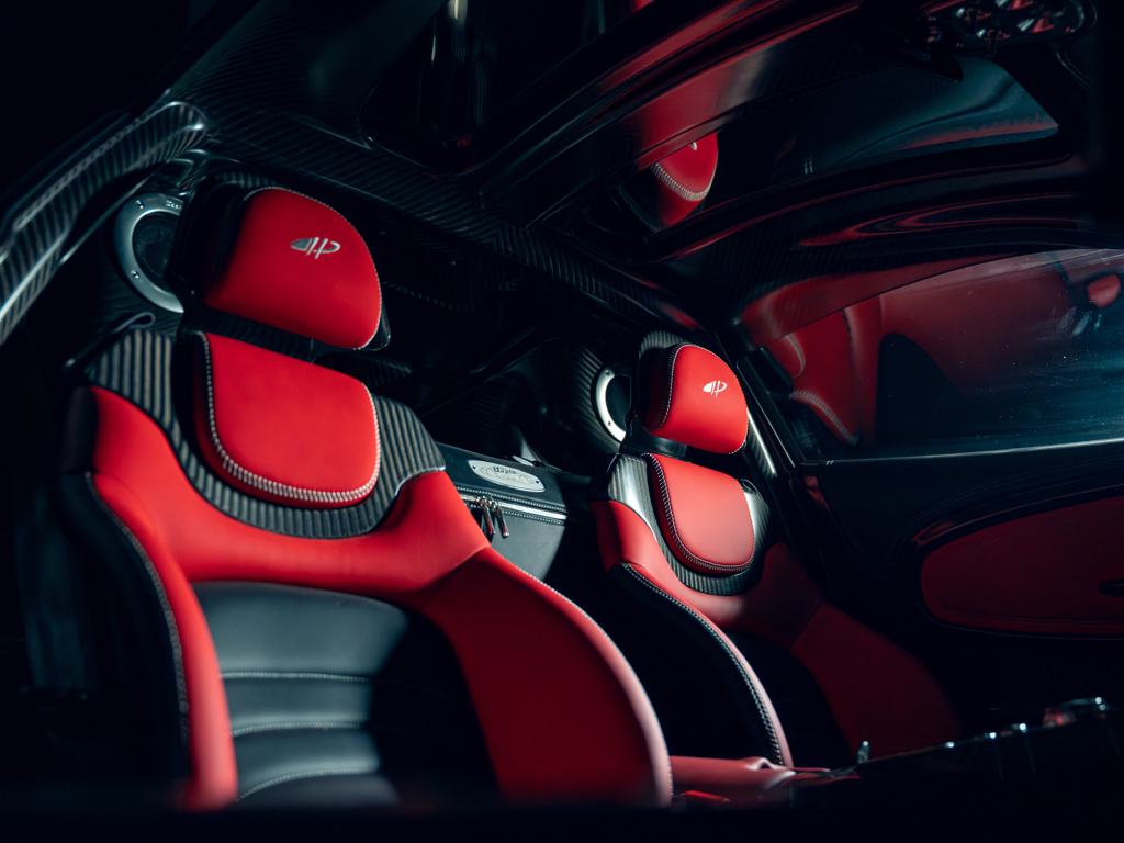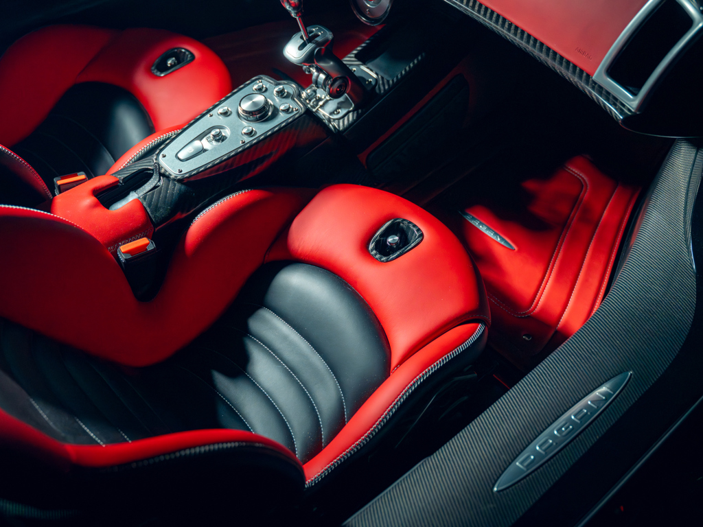 This 2024 Pagani Utopia, chassis number ZA9U11EC9YSF76024, is a rare find with an Xtrac seven-speed automated-manual transmission. Finished in Rosso Dubai with red carbon fiber accents, it has only 48 kilometers and is offered from its original owner in Zurich, Switzerland.
