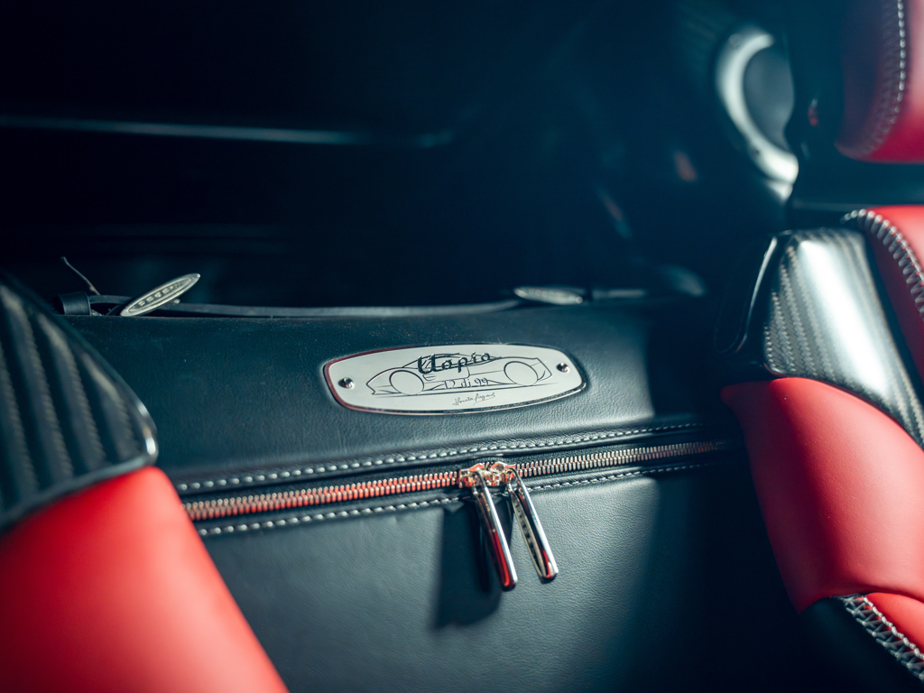 Finished in Rosso Dubai and red visual carbon fibre over red-and-black leather upholstery with red carbon fibre detailing throughout One of very few early Utopia chassis built with an Xtrac seven-speed automated-manual transmission Delivered to Switzerland and offered from its original ownership Odometer reads just 48 kilometres at the time of cataloguing