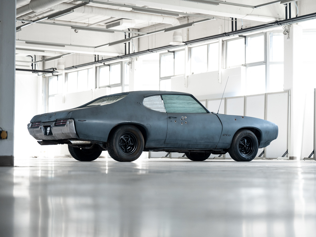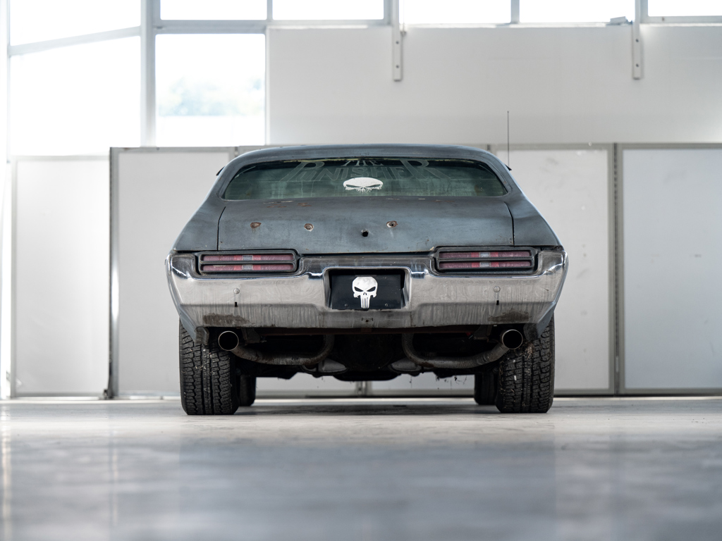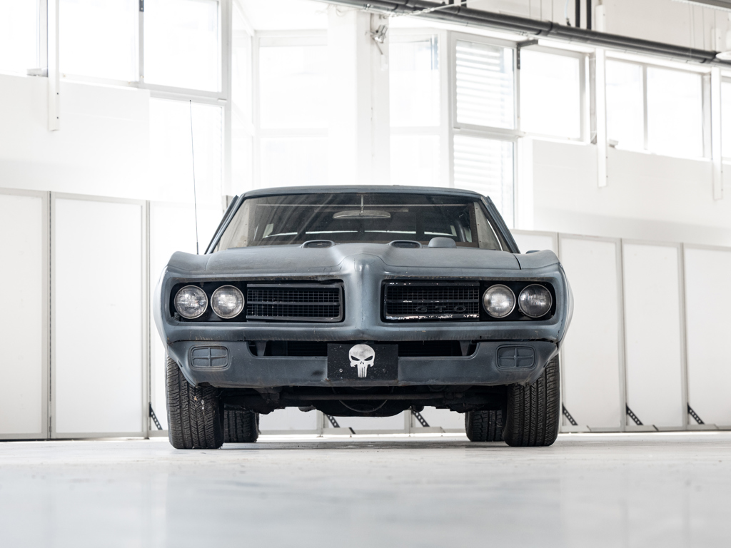 This 1969 Pontiac GTO, nicknamed 'The Punisher', was one of five cars used in the 2004 movie of the same name. It retains bullet holes and has an all-aluminum interior, making it ideal for exhibition rather than road use.