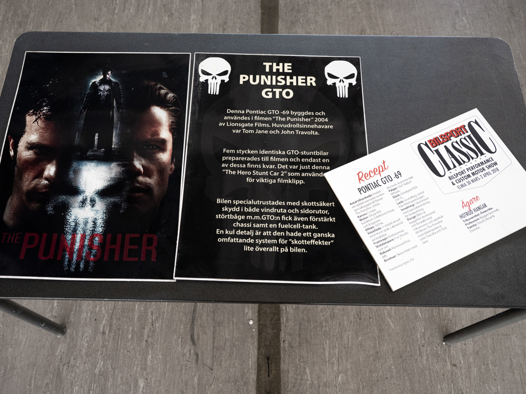 One of five cars used in the filming of the 2004 movie The Punisher Retains the effects of life on the film set; featuring bullet holes, all-aluminium interior, and custom dashboard Ideal for exhibition at car shows and film fan conventions Einer von fünf Pontiac GTOs aus dem 2004er Film The Punisher Noch mit den Spuren des Filmeinsatzes versehen, darunter Einschusslöcher, ein Aluminiuminterieur und ein spezielles Armaturenbrett Ideal als Display für Carshows oder bei Filmkongressen