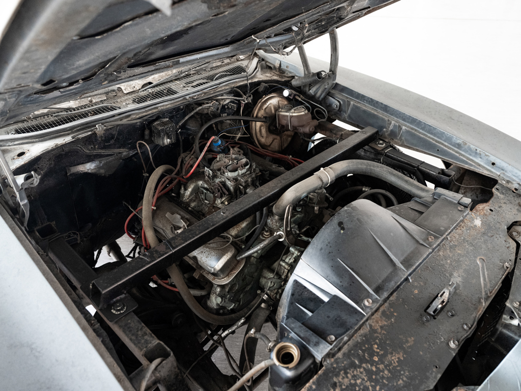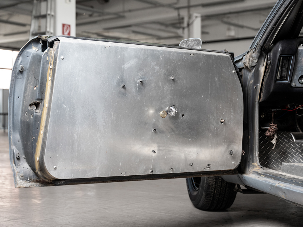 The car has bullet holes and is described as retaining the effects of life on the film set, meaning it has extensive cosmetic damage. It requires major repairs.