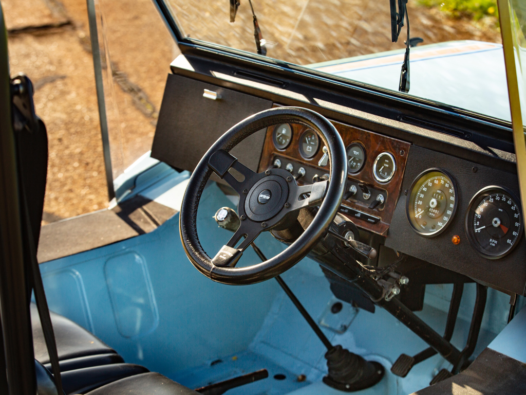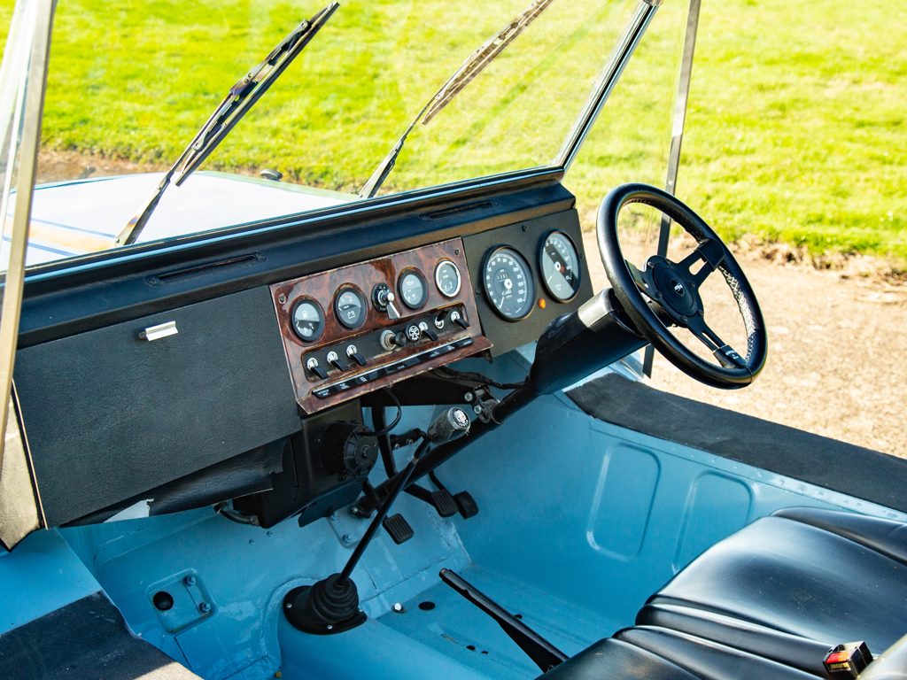 This 1968 Austin Mini Moke, manufactured in September, boasts a striking Gulf motorsport-style livery and benefits from a Swiftune Engineering engine rebuild in 2019. With approximately £15,000 spent on improvements, this Moke is ready for open roads.
