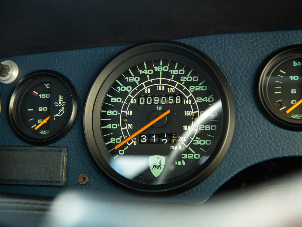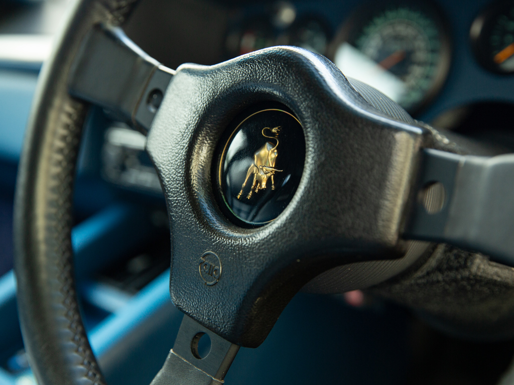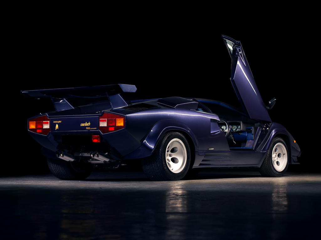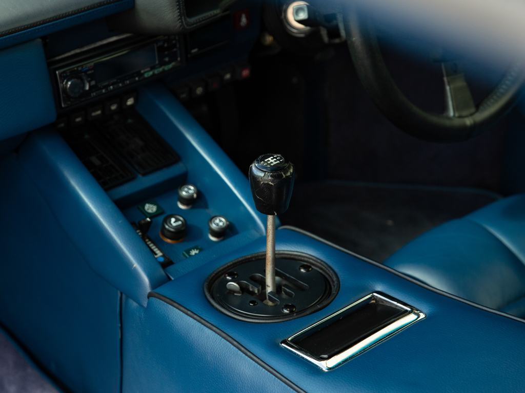 £550,000 - £650,000 GBP One of 631 Countach 5000 Quattrovalvoles built; the last of only 17 right-hand-drive “88½” examplesFinished in its beautiful, rare factory colour combination of Blu Acapulco over Panna Con Filetti Blue leather; fitted with the optional rear wing and gold badgingBoasts an intriguing history; supplied new to the United Kingdom in August 1988 and stored by Pininfarina ahead of plans to deliver the car to the Brunei Royal FamilyPowered by a 5.2-litre V-12 engine making approximately 456 brake horsepowerThe odometer displayed 9,058 kilometres at the time of cataloguing An enduring 17-year production run for the showstopping Countach entailed the mid-engined poster star undergoing a string of evolutions between 1974 and 1990 to keep pace with the competition.
