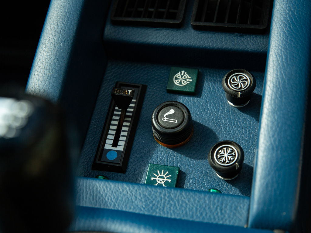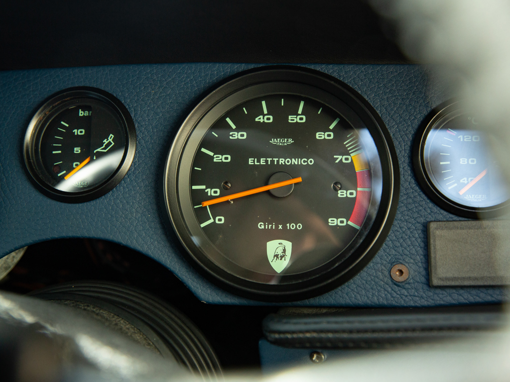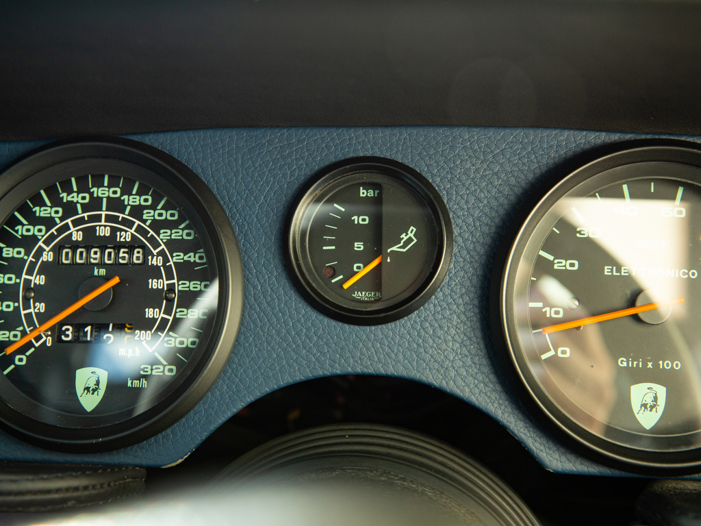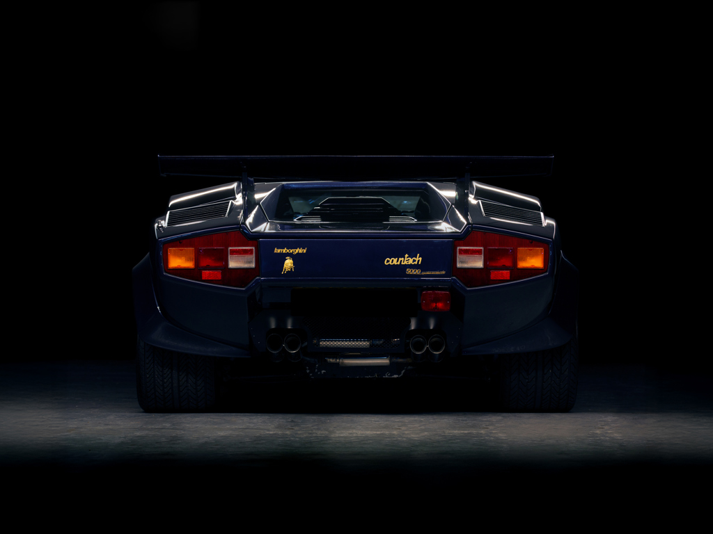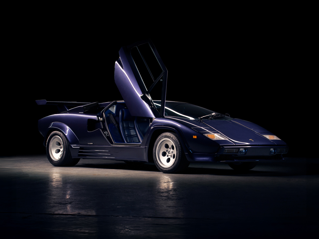 £550,000 - £650,000 GBP One of 631 Countach 5000 Quattrovalvoles built; the last of only 17 right-hand-drive “88½” examplesFinished in its beautiful, rare factory colour combination of Blu Acapulco over Panna Con Filetti Blue leather; fitted with the optional rear wing and gold badgingBoasts an intriguing history; supplied new to the United Kingdom in August 1988 and stored by Pininfarina ahead of plans to deliver the car to the Brunei Royal FamilyPowered by a 5.2-litre V-12 engine making approximately 456 brake horsepowerThe odometer displayed 9,058 kilometres at the time of cataloguing An enduring 17-year production run for the showstopping Countach entailed the mid-engined poster star undergoing a string of evolutions between 1974 and 1990 to keep pace with the competition.