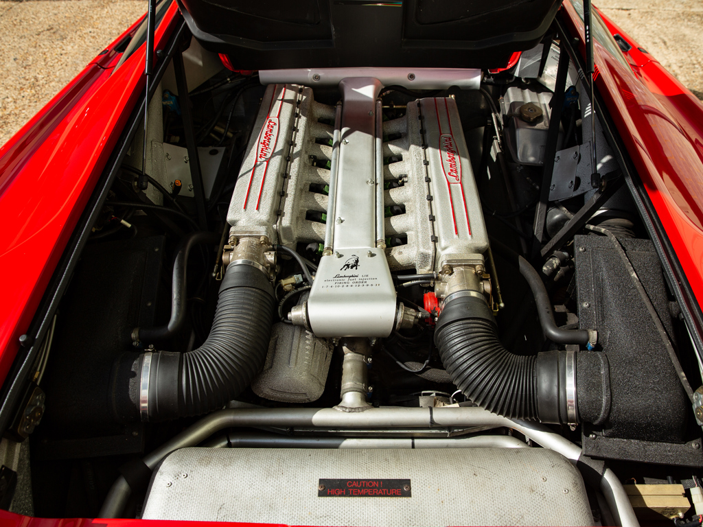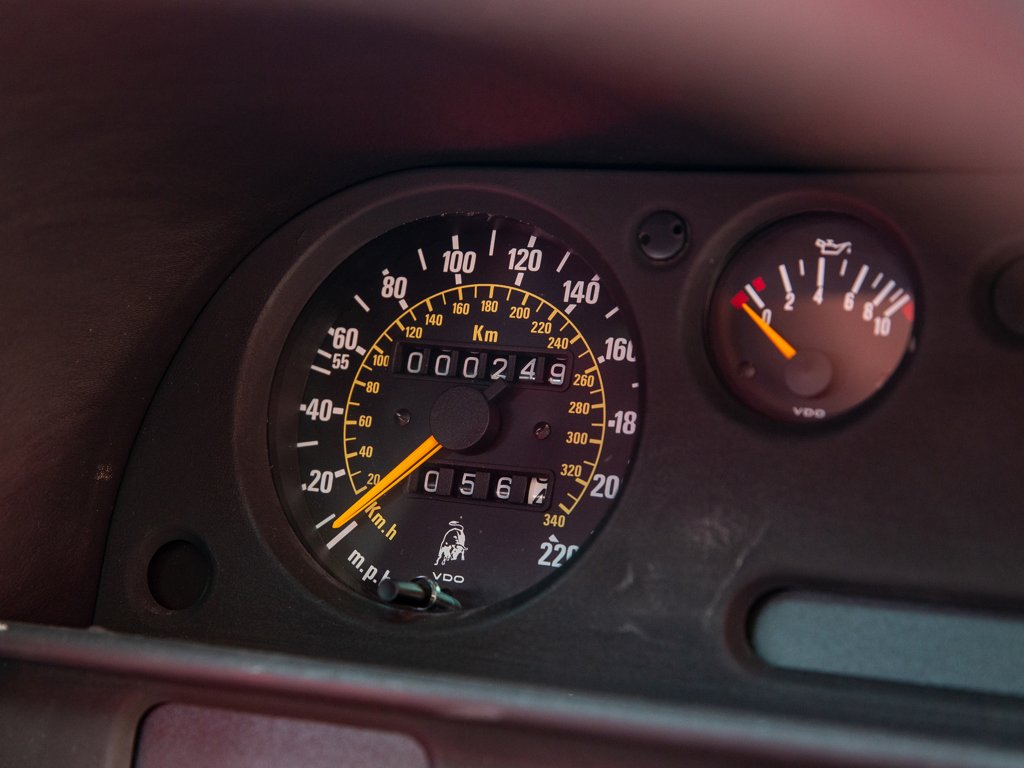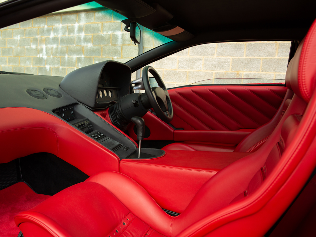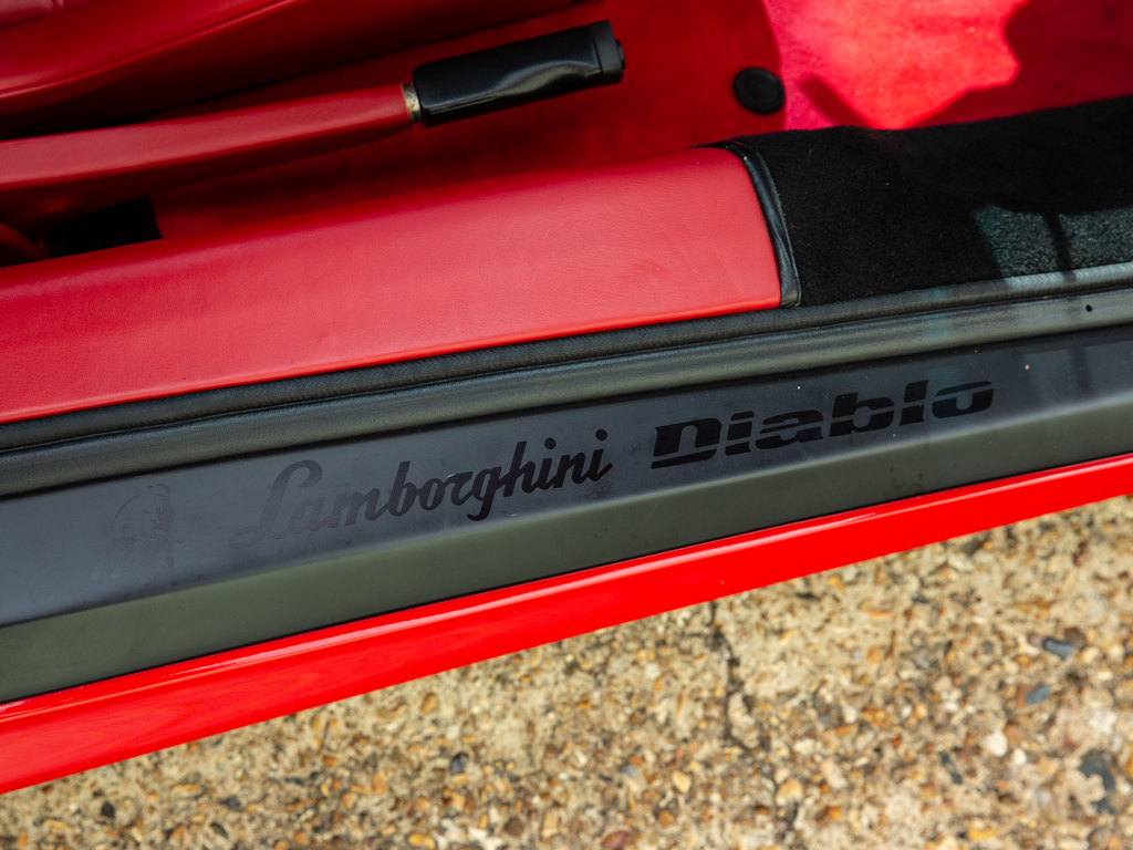 £375,000 - £425,000 GBP Incredible opportunity to acquire an “as-new” Diablo; never registered and showing a remarkable 249 kilometres only at the time of cataloguingOne of approximately 873 original-specification examples of the Diablo built Right-hand-drive car delivered new to the United Kingdom in September 1993Presents in its factory colour combination of Rosso over matching Rosso leatherMore than £16,000 spent on recommissioning at Lamborghini Birmingham in December 2014 The 5.7-litre V-12 engine delivers 485 brake horsepower through a dogleg five-speed manual transmission; capable of a claimed top speed of 202 mph The enduring Lamborghini Countach had cast an enormous shadow.