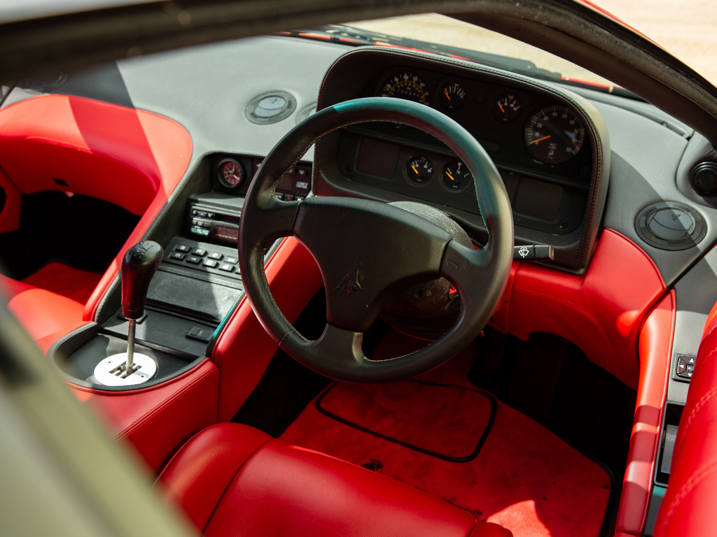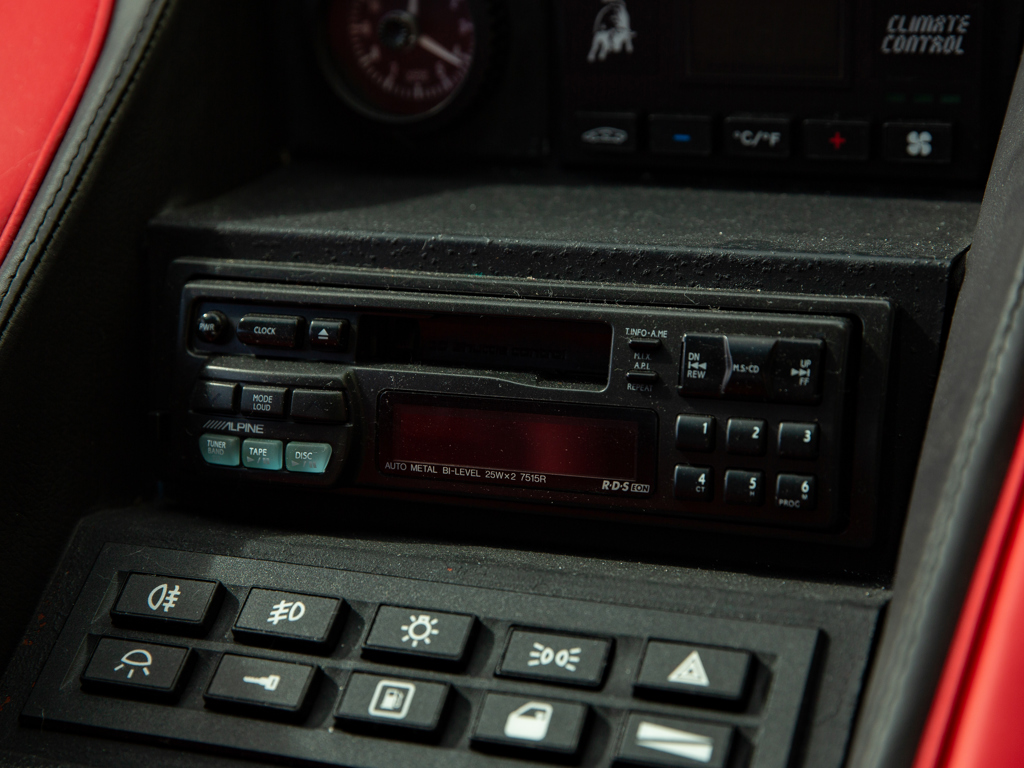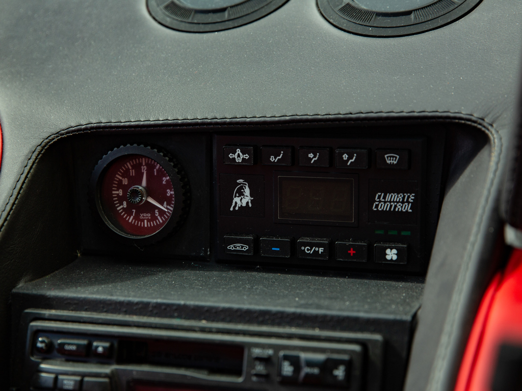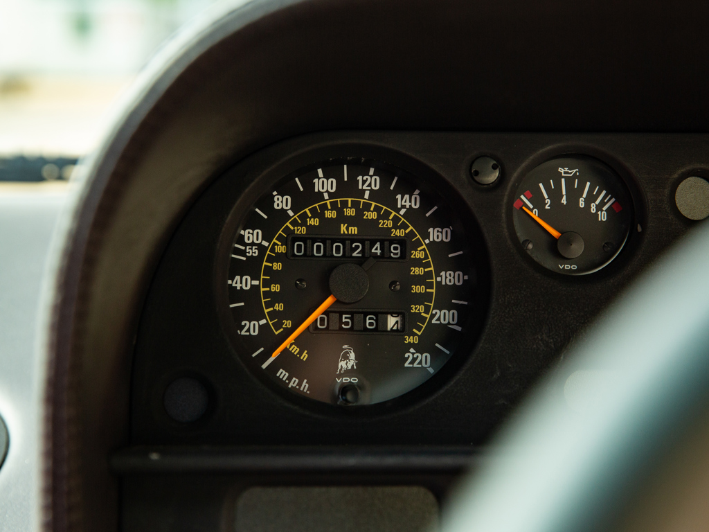 £375,000 - £425,000 GBP Incredible opportunity to acquire an “as-new” Diablo; never registered and showing a remarkable 249 kilometres only at the time of cataloguingOne of approximately 873 original-specification examples of the Diablo built Right-hand-drive car delivered new to the United Kingdom in September 1993Presents in its factory colour combination of Rosso over matching Rosso leatherMore than £16,000 spent on recommissioning at Lamborghini Birmingham in December 2014 The 5.7-litre V-12 engine delivers 485 brake horsepower through a dogleg five-speed manual transmission; capable of a claimed top speed of 202 mph The enduring Lamborghini Countach had cast an enormous shadow.
