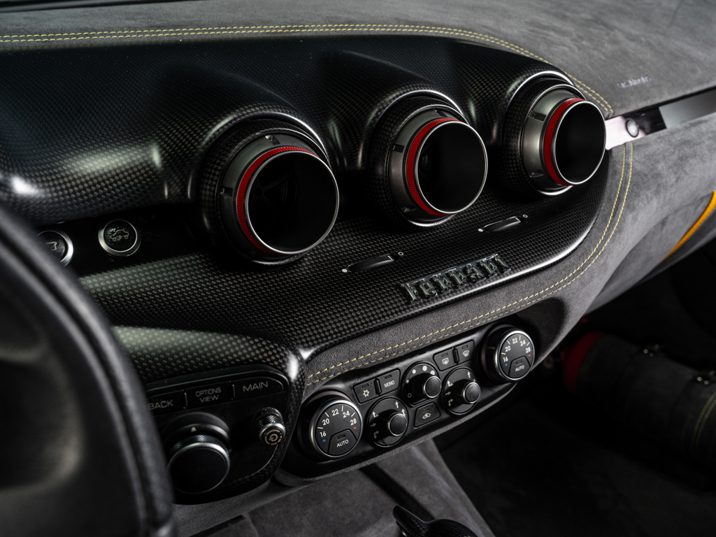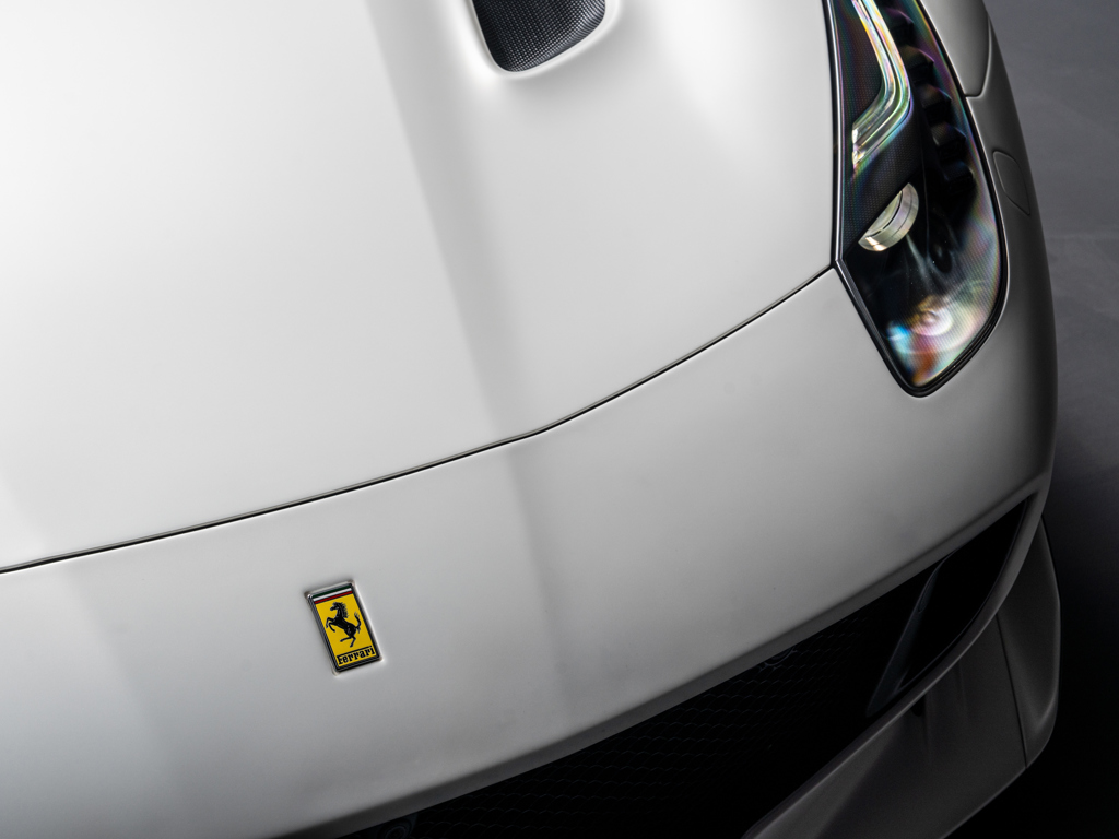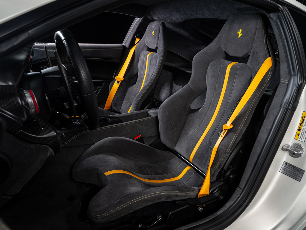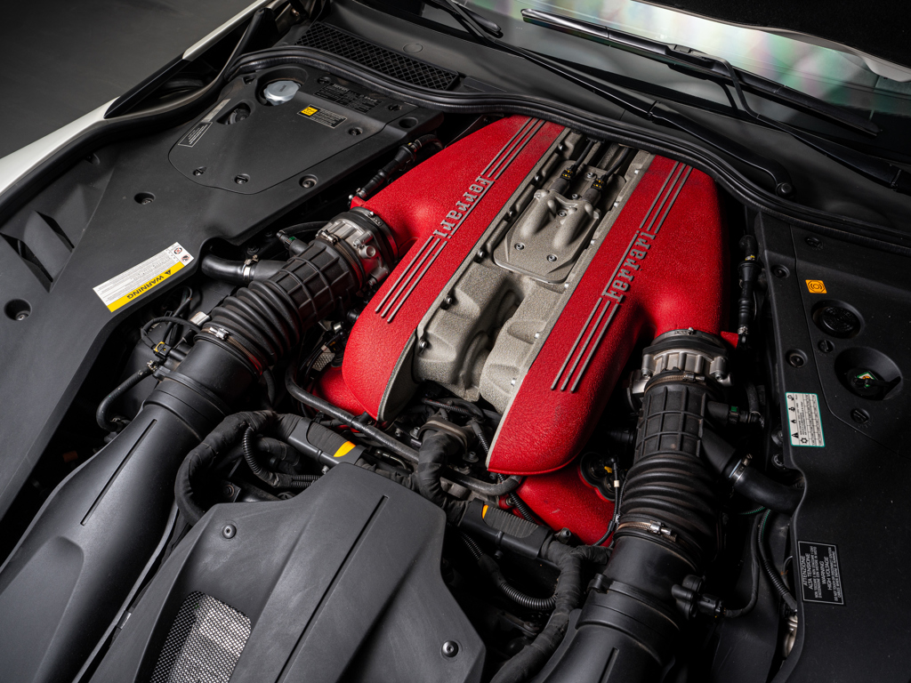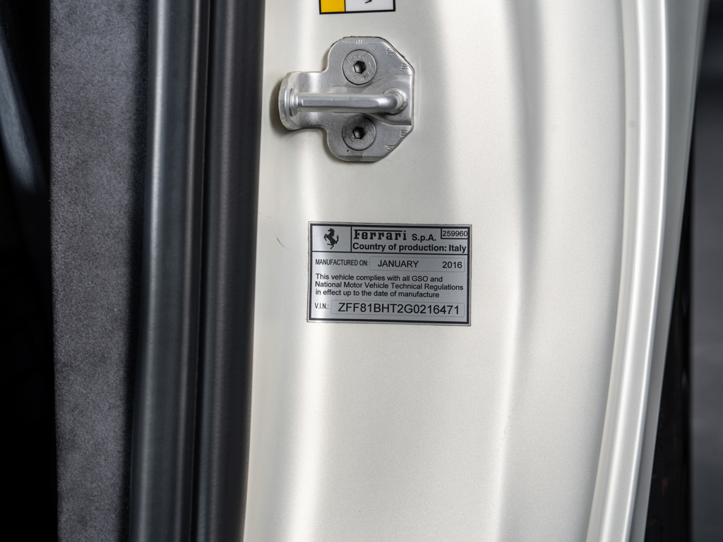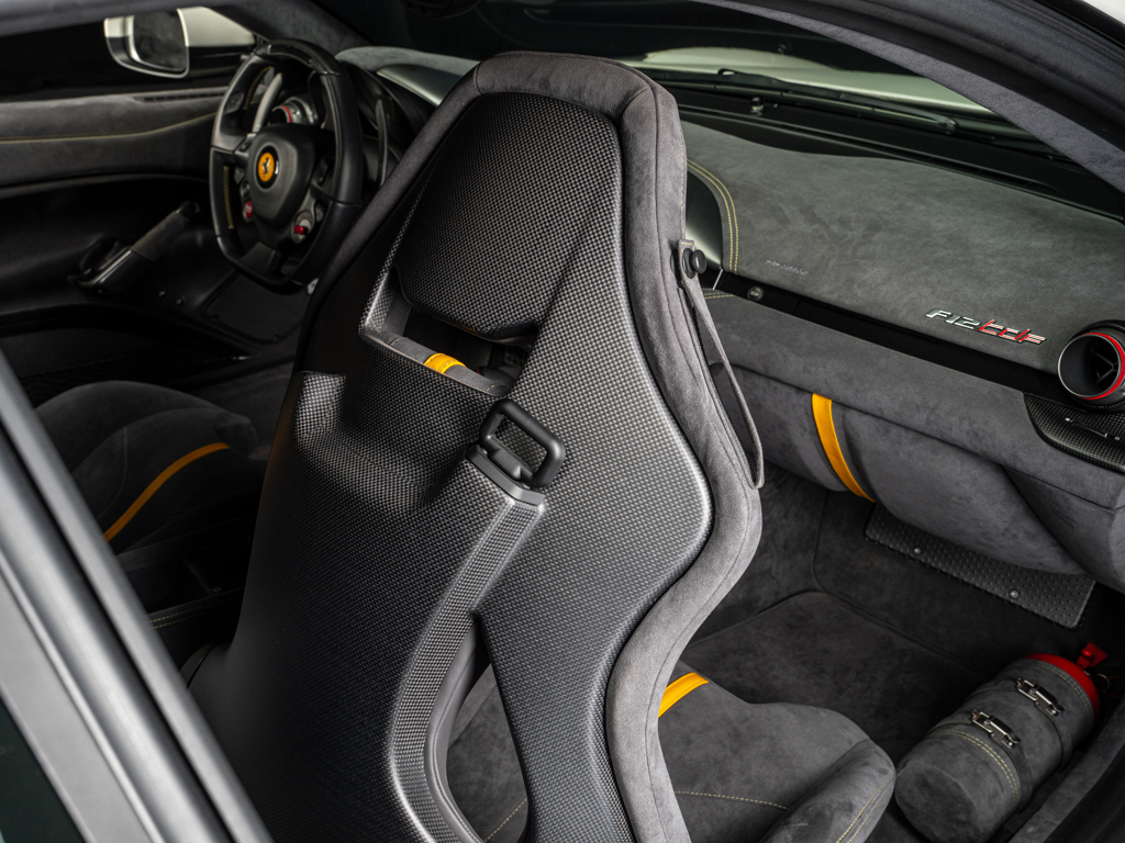One of 799 examples of the F12tdf built between 2015 and 2017 Stunning specification: extra-range Bianco Italia Opaco exterior with matte carbon fibre accents over a Charcoal interior with Giallo accents Delivered new via, and serviced annually by, Kuwait Automobile & Trading Co; driven a modest 10,322 kilometres at the time of cataloguing Powered by a 6.3-litre, naturally aspirated V-12 factory-rated at 769 horsepower Capable of 0-100 km/h in 2.9 seconds; good for a top speed of 340 km/h