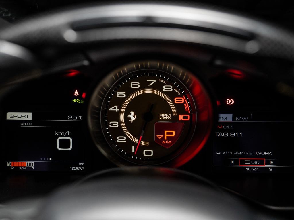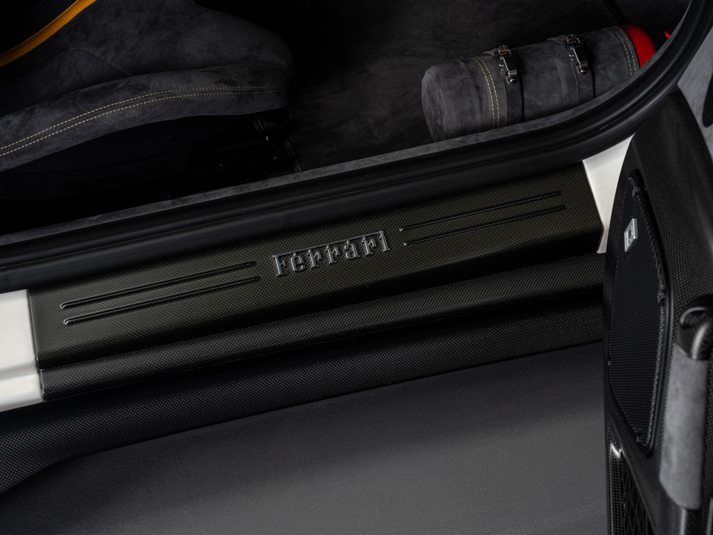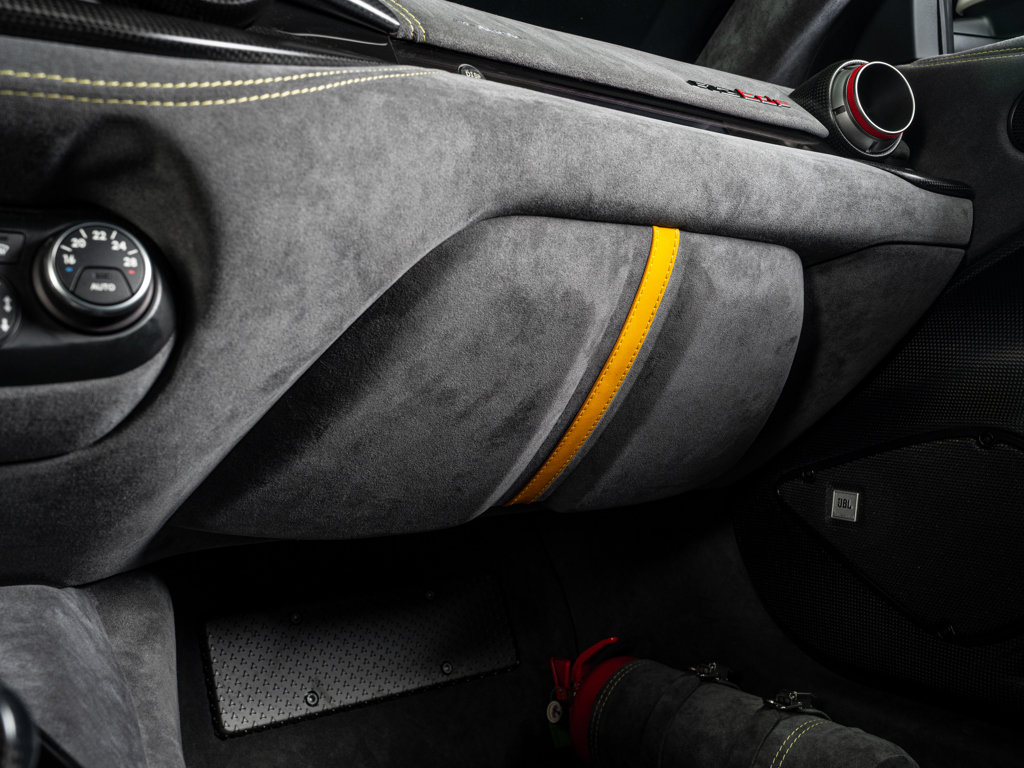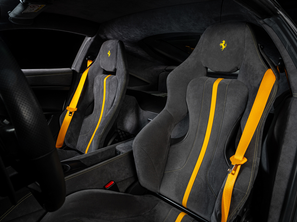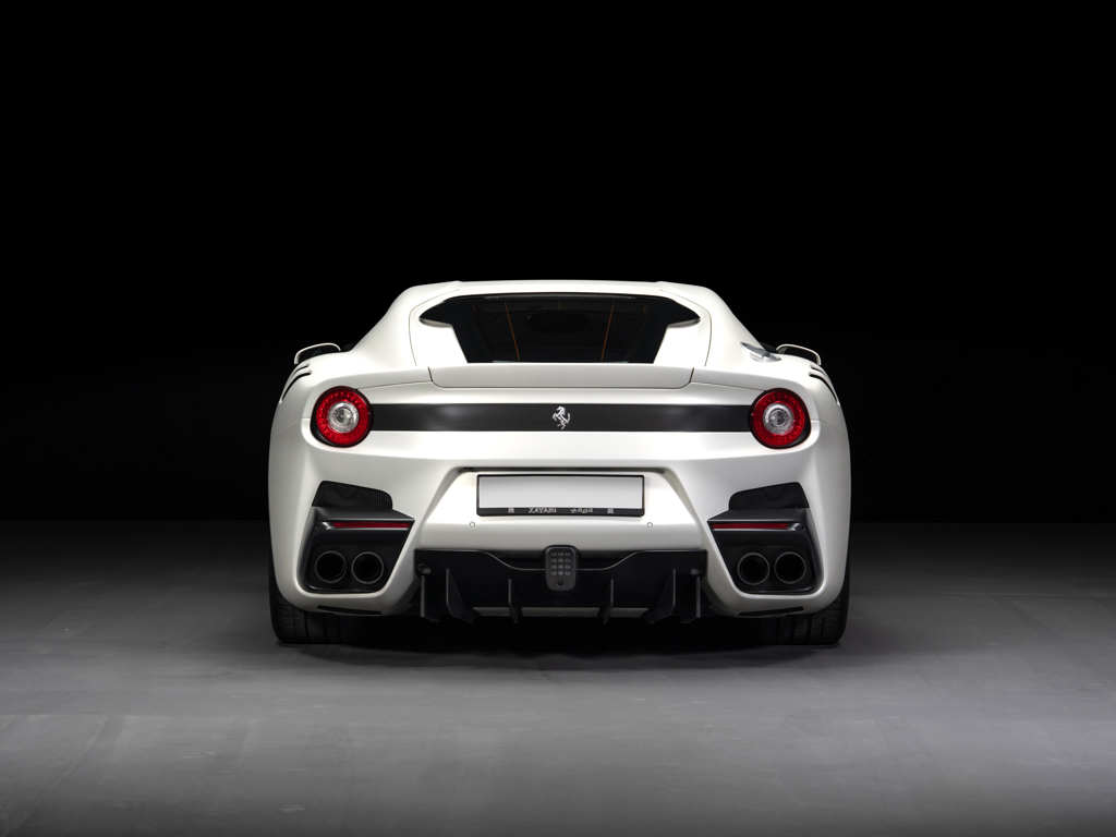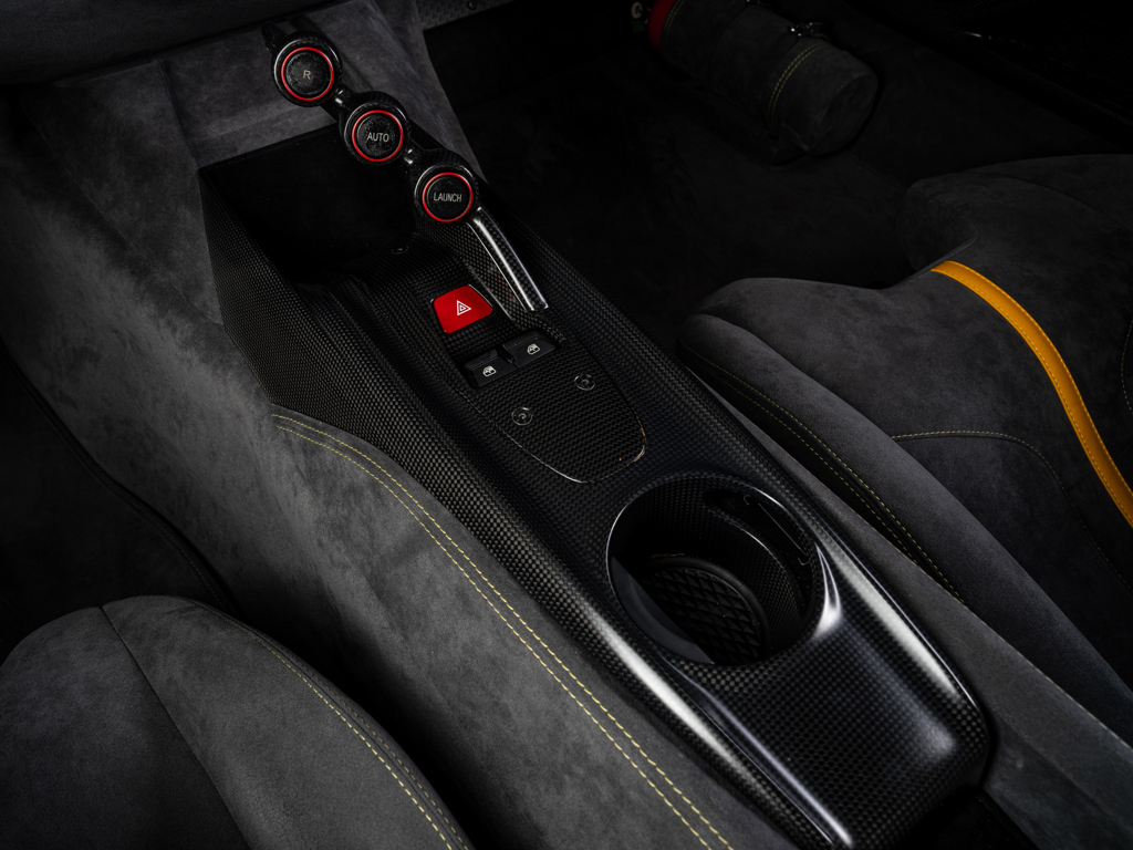 One of 799 examples of the F12tdf built between 2015 and 2017 Stunning specification: extra-range Bianco Italia Opaco exterior with matte carbon fibre accents over a Charcoal interior with Giallo accents Delivered new via, and serviced annually by, Kuwait Automobile & Trading Co; driven a modest 10,322 kilometres at the time of cataloguing Powered by a 6.3-litre, naturally aspirated V-12 factory-rated at 769 horsepower Capable of 0-100 km/h in 2.9 seconds; good for a top speed of 340 km/h