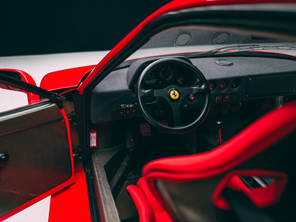 Delivered new to four-time Formula 1 World Champion Alain Prost during his first season as a Scuderia Ferrari driver; the F40’s roof is signed by the Frenchman Highly desirable “non-cat, non-adjust” specification Swiss market example Ferrari Classiche certified in 2016; retains its matching-numbers chassis, engine, gearbox, and bodywork Benefits from an October 2025 service conducted by Emil Frey Sportivo, the official Ferrari dealer for Munich Featured in the April 1997 issue of Motor Sport magazine Awarded 2nd-in-class at the Ferrari 70th Anniversary Concours in Maranello