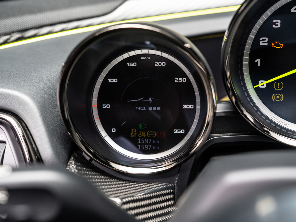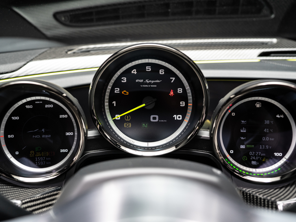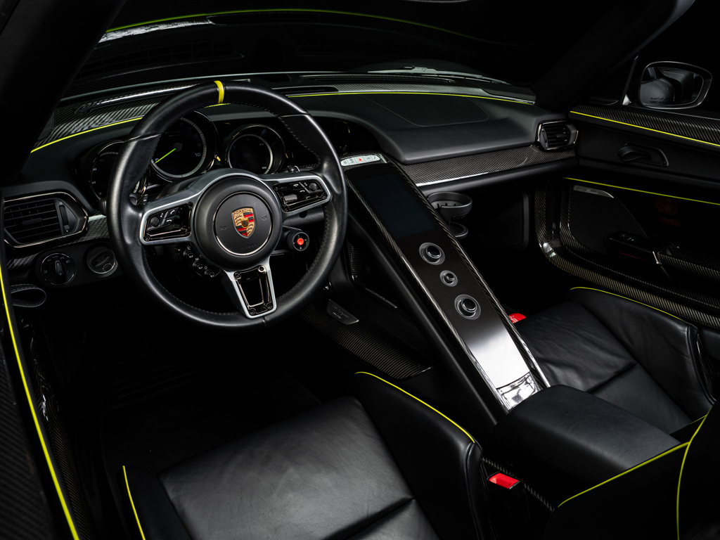 $1,600,000 - $2,000,000 USD The 232nd out of 918 hybrid Porsche 918 Spyders builtFinished in Meteor Grey Metallic over Onyx Black leather with Acid Green accentsSpecified with the desirable, lightweight ‘Weissach Package’ Notably equipped with front-axle lift system, full leather sports seats, Burmester audio system, and visual carbon fibre trimDelivered new to Saudi Arabia; showing a mere 1,597 kilometres at the time of cataloguingSupplied with charging cables, car cover, and six-point Schroth race harnesses ‘Our challenge is to move forward with confidence, blazing new paths.