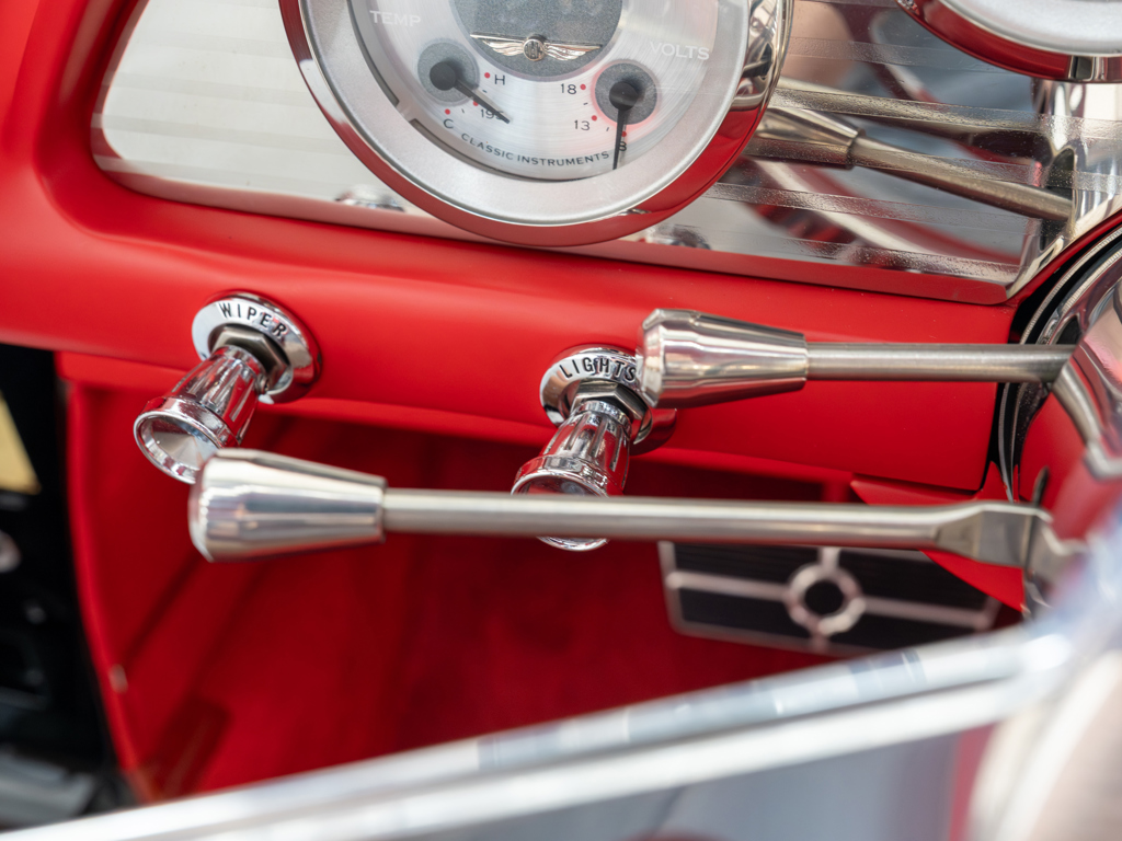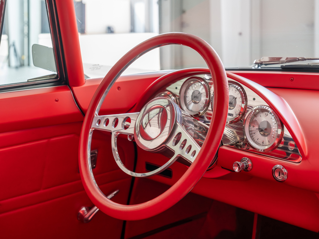 Tastefully executed, high-performance resto-mod with a stealthy nearly stock appearance Conceived and created by the late Calvin and Leon Moore of Nashville, Tennessee Customized chassis incorporating fully independent coil-over suspension, rack-and-pinion steering, and Wilwood four-wheel disc brakes Powered by a built 482-cid fuel-injected V-8 rated at a claimed 650 hp; paired with a GM 4L80E heavy-duty four-speed automatic transmission One of 2,550 Continental Mark IIs built for 1956, the most expensive American car of its day