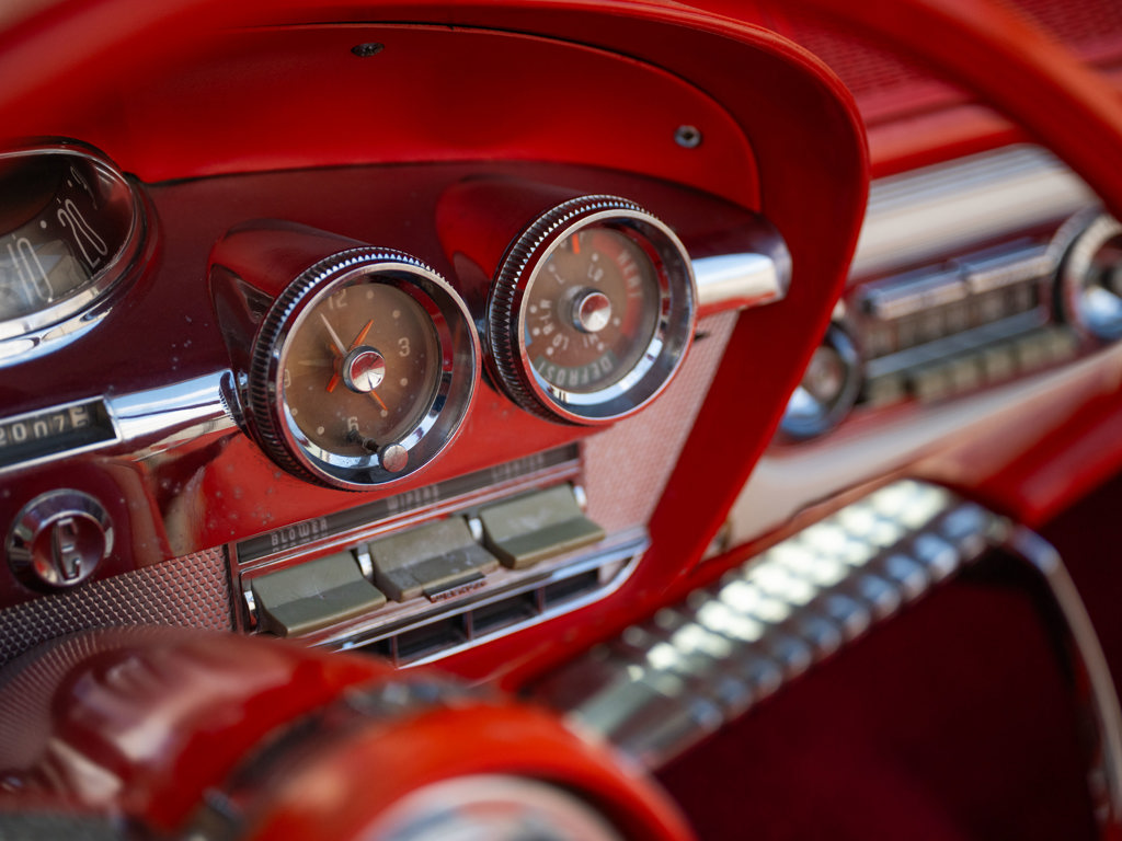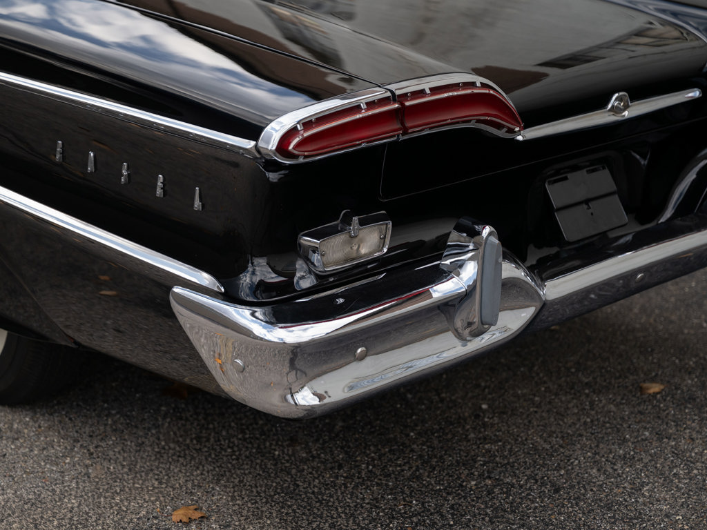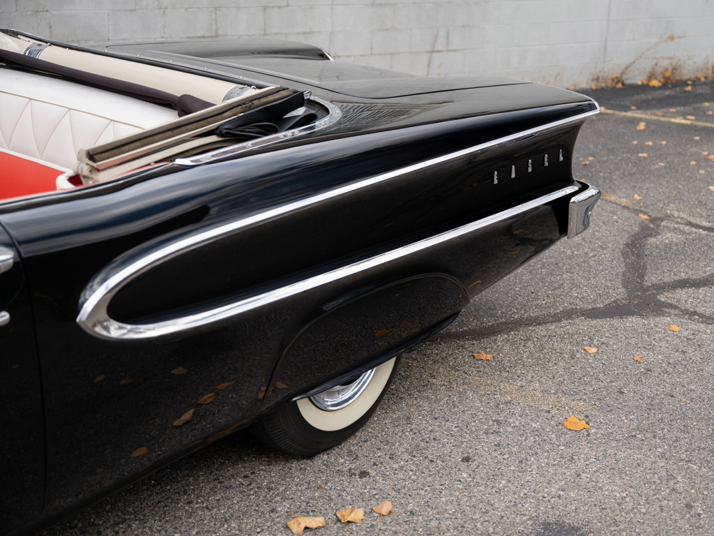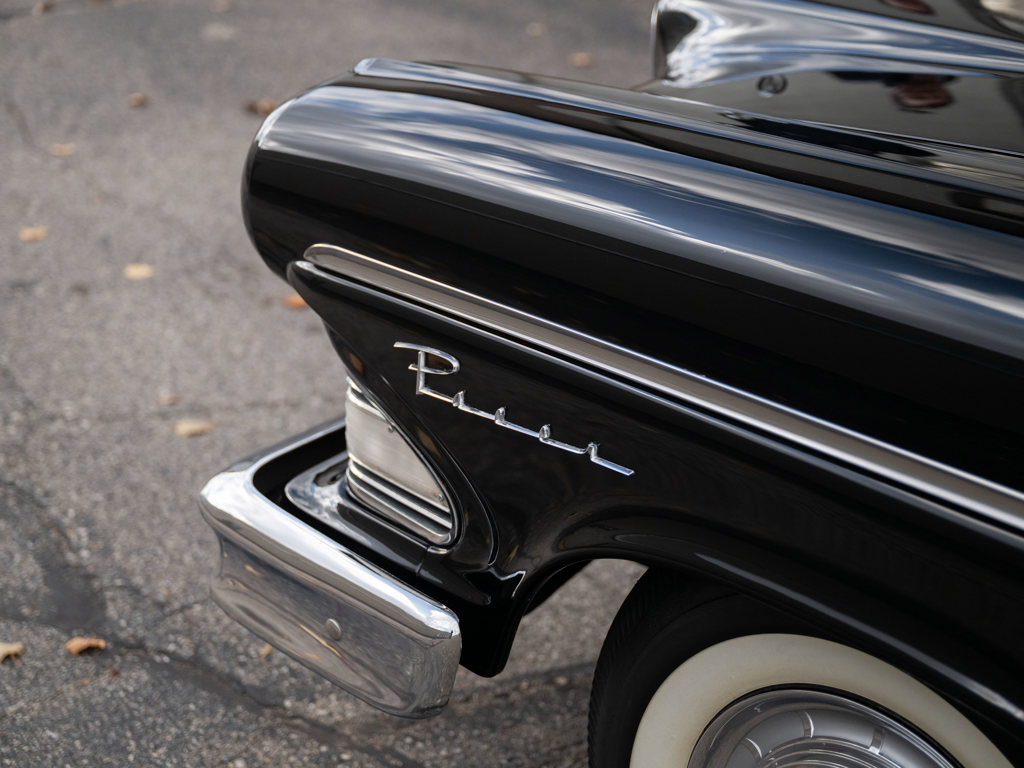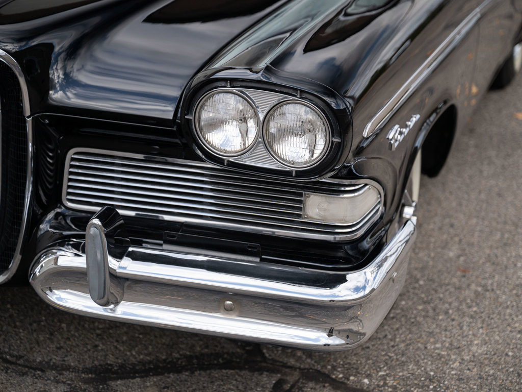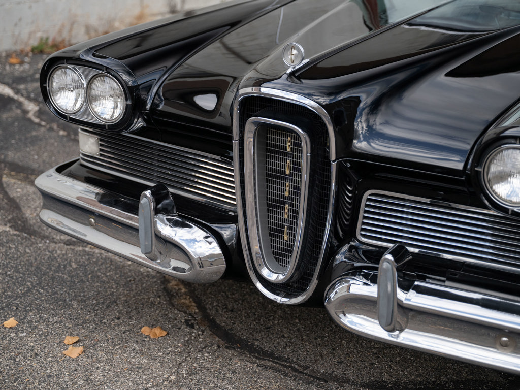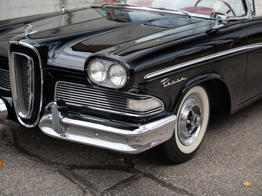Offered Without Reserve | $60,000 - $70,000 USD First year of Ford’s fabled Edsel line, produced for only three yearsOne of 1,876 Pacer Convertibles built for 1958, the model's rarest variant that yearStriking color scheme of black over two-tone white and red Signature avant-guard design and novel features, including Teletouch Drive Powered by a 361-cid V-8 rated at 303 hpA rare offering from a fascinating chapter in Ford's history Named after Henry Ford’s son and advertised as the “Newest thing on wheels,” the Edsel brand was a highly anticipated expansion of Ford’s Lincoln-Mercury lineup with the goal of gaining market share from Chrysler and General Motors.