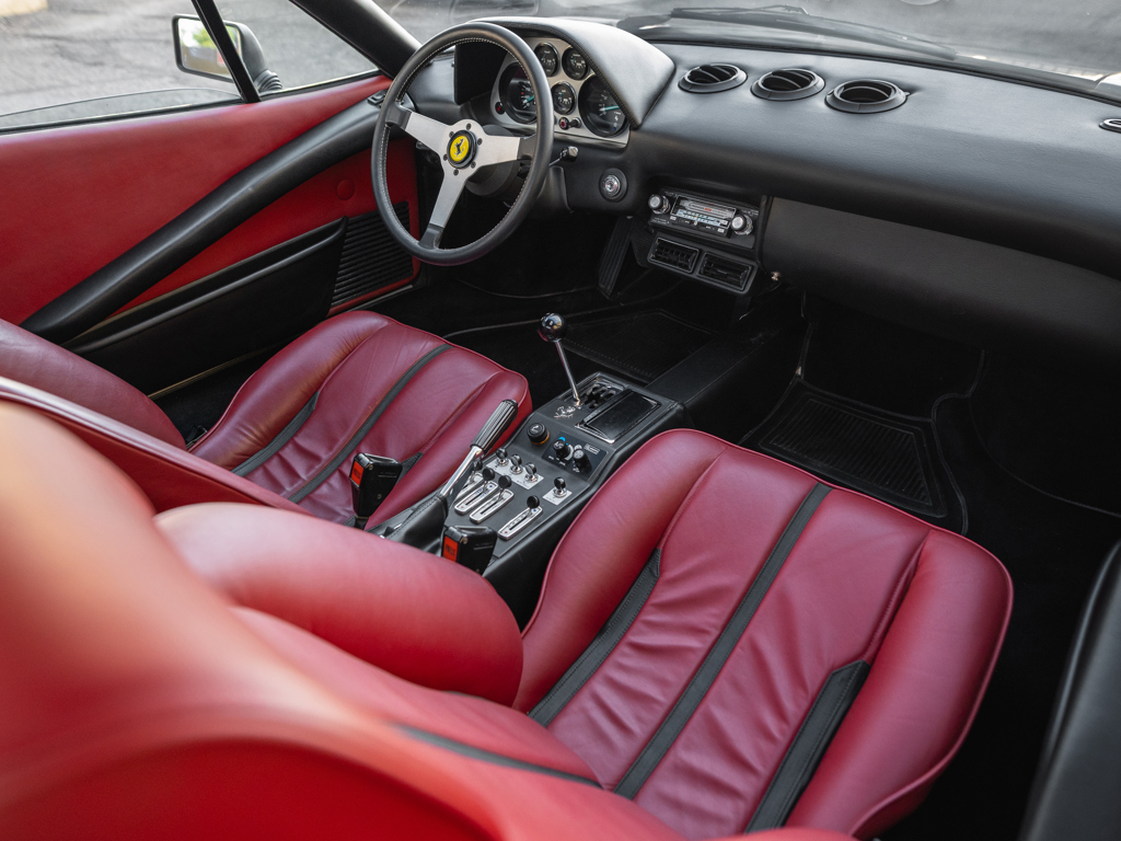 This 1977 Ferrari 308 GTB, finished in black over red, features a documented service history, including an engine rebuild and interior refresh. With its striking design and mid-mounted V-8, this well-maintained example is ready to be driven and admired.