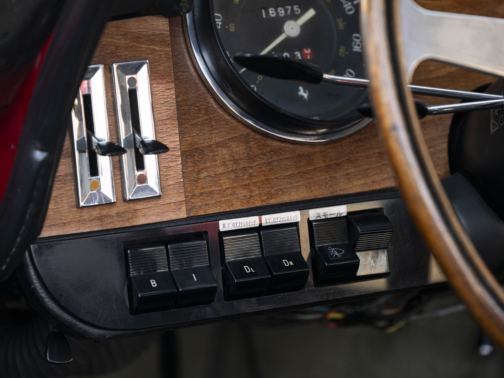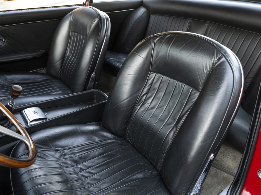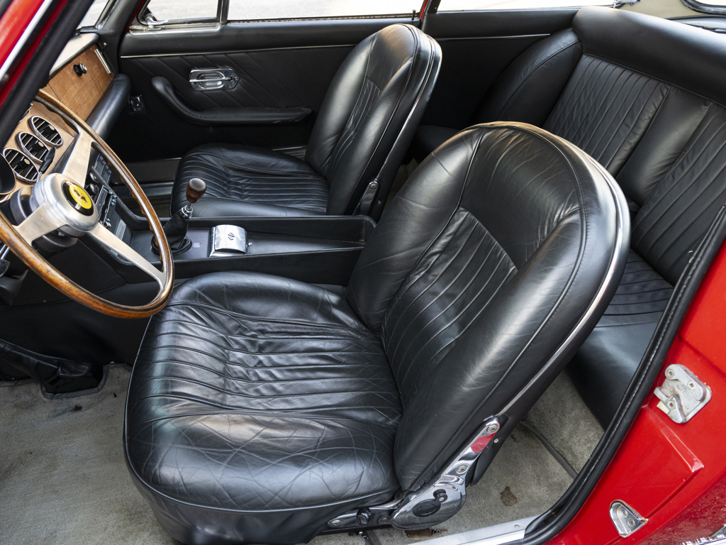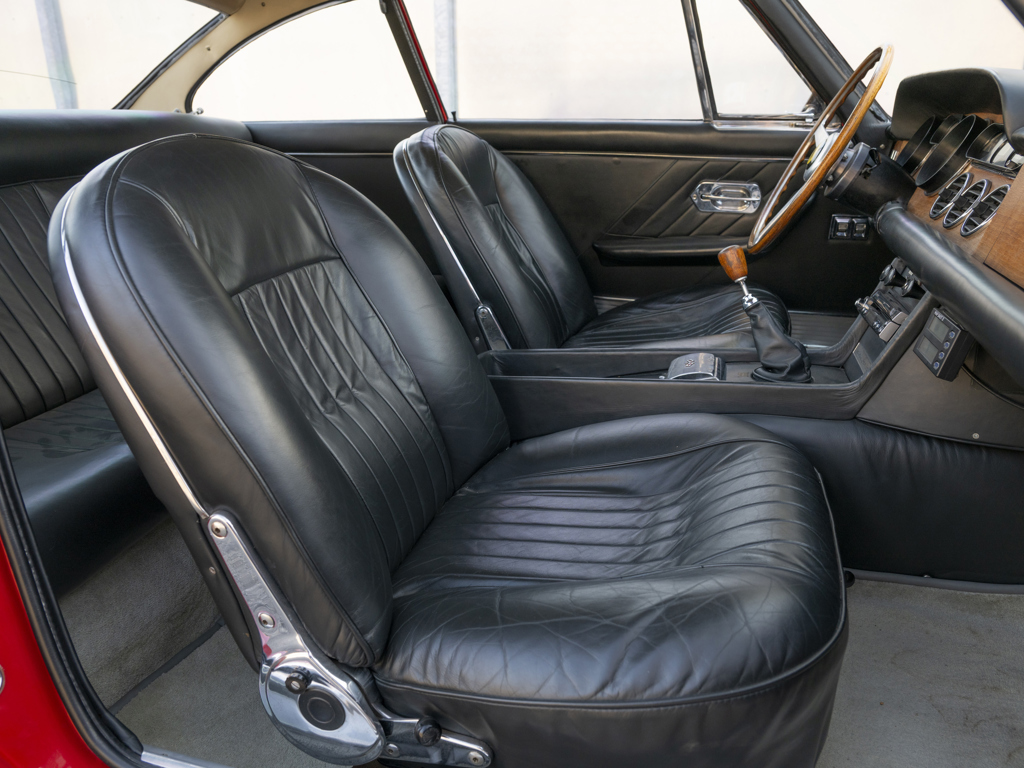 Stylish and powerful; the best of mid-century Italian grand touring One of approximately 424 left-hand-drive Series II examples Sold new to Italy, optioned with factory air conditioning Numbers-matching 4.0-liter V-12 engine Currently red over black; factory livery of Verde Scuro (19394 It.) over Pelle Beige Scuro leather (VM 846)