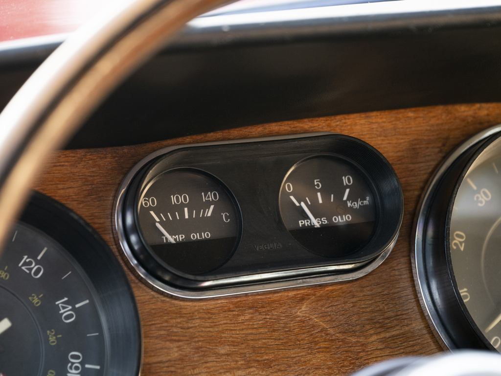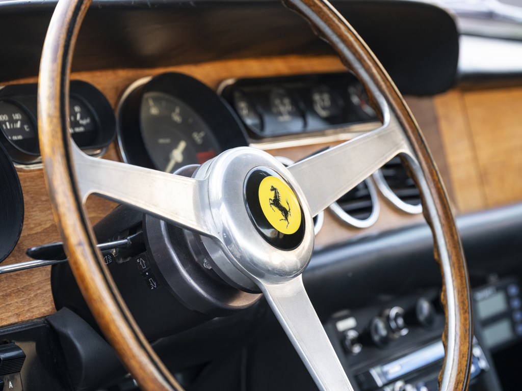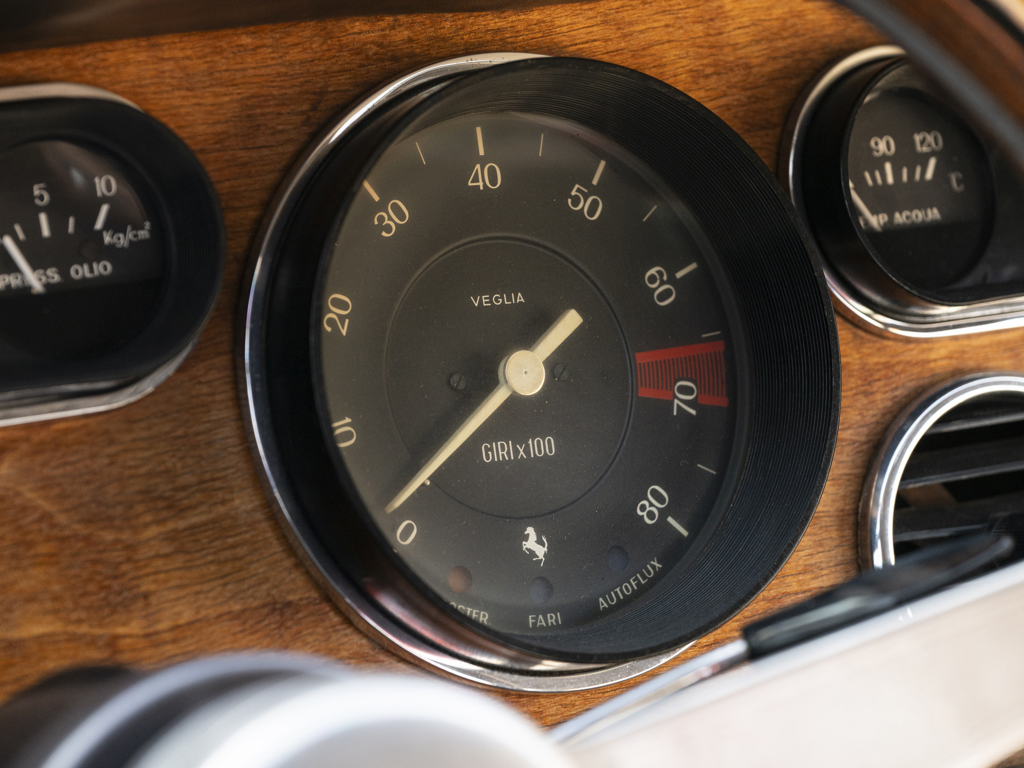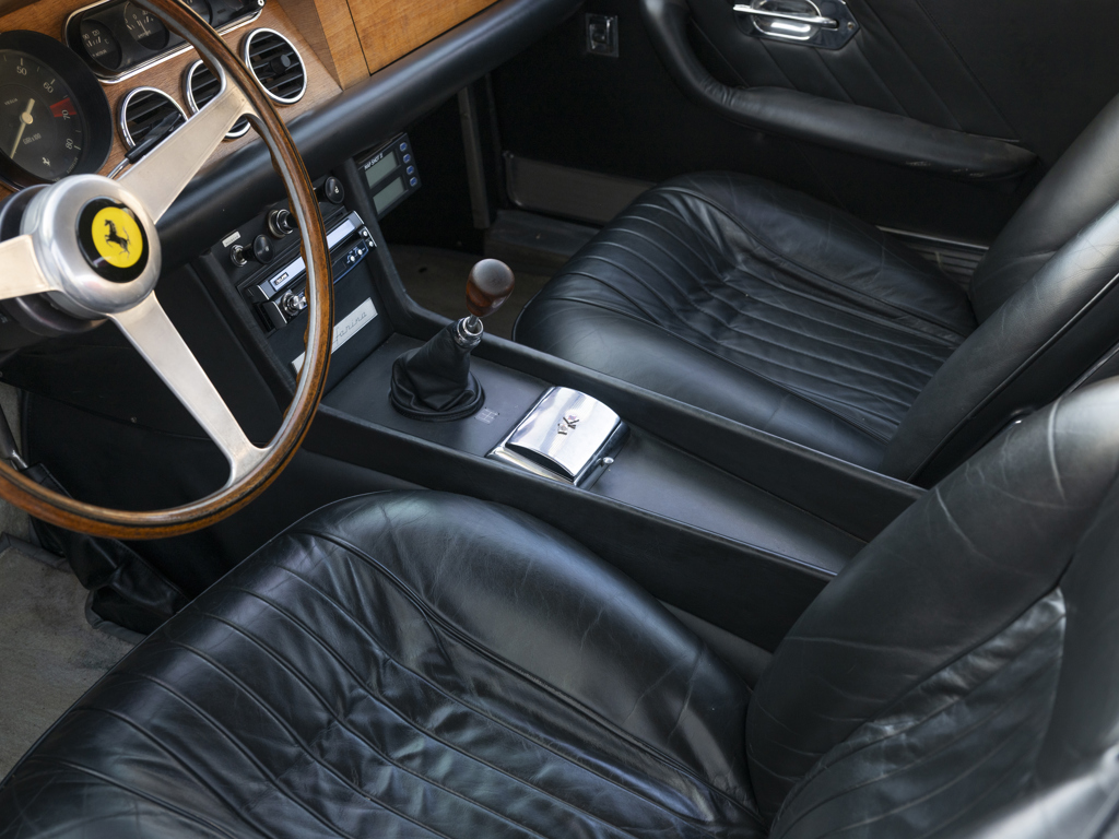Stylish and powerful; the best of mid-century Italian grand touring One of approximately 424 left-hand-drive Series II examples Sold new to Italy, optioned with factory air conditioning Numbers-matching 4.0-liter V-12 engine Currently red over black; factory livery of Verde Scuro (19394 It.) over Pelle Beige Scuro leather (VM 846)