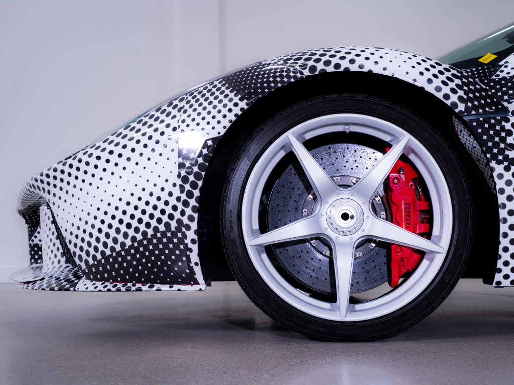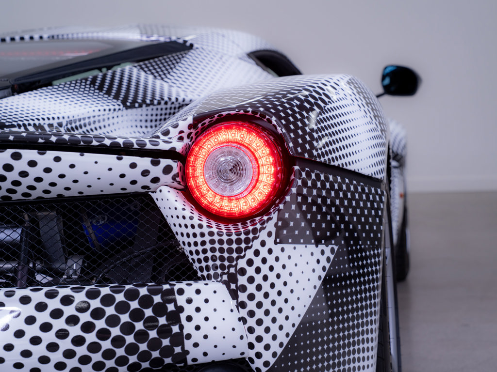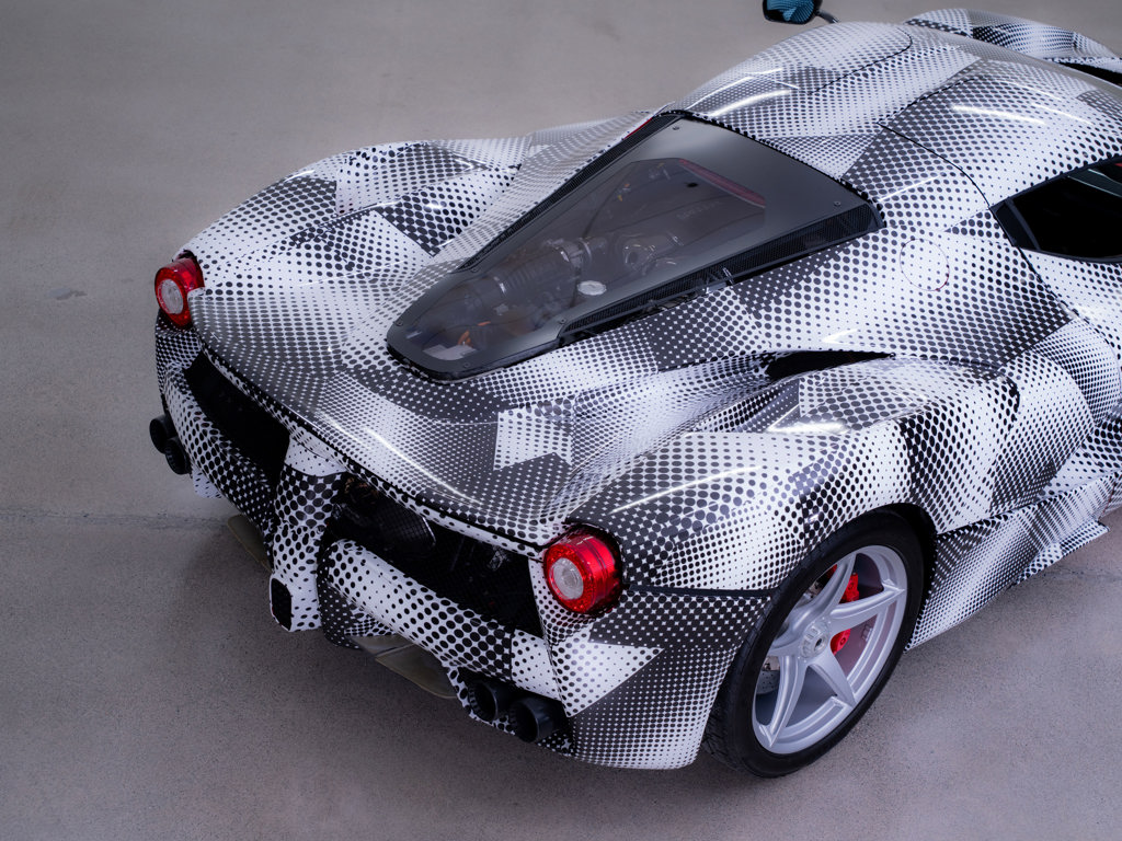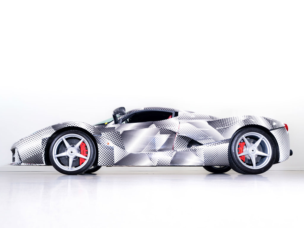 An internal development prototype fitted with a production-style LaFerrari body Notably equipped with a naturally aspirated F140 FD V-12 without the production model’s hybrid system Wears a dazzling camouflage wrap over Rosso and carbon bodywork Accompanied by Ferrari Classiche Yellow Book issued in 2022 A spectacular and unique opportunity for a dedicated Ferrari collector