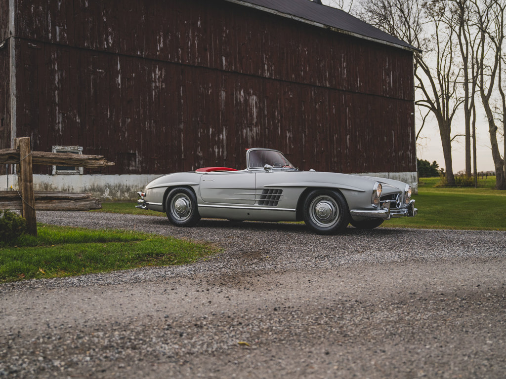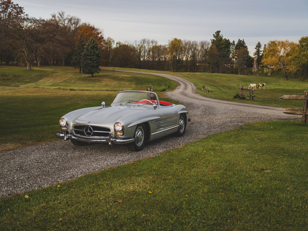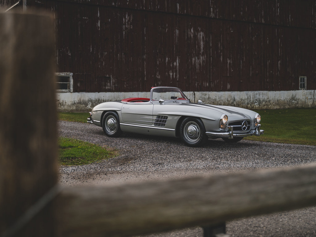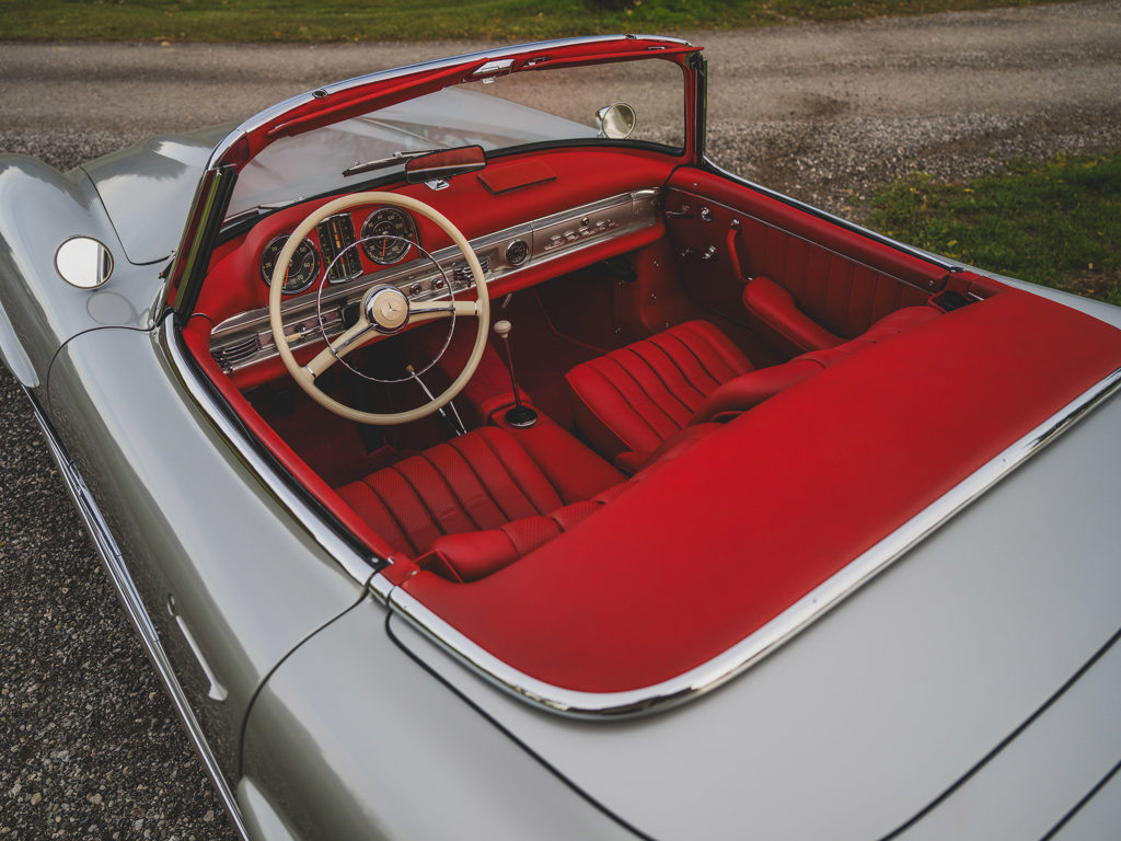 $1,100,000 - $1,400,000 USD A stellar US-spec example from the model’s first year of productionPresented in Silver Metallic over red leather with a matching red soft-topRetains numbers-matching major components, including engine, body, gearbox, rear axle, and front axlesTreated to an engine rebuild, clutch replacement, exterior touchups, and engine bay cleaning and detailing by RM Auto Restoration in 2025; over $100,000 of invoices on fileAccompanied by a tool roll, matching luggage, 2025 invoices, and a copy of its factory data card When the Mercedes-Benz 300 SL first broke cover in 1954, it presented a blinding vision of the future.