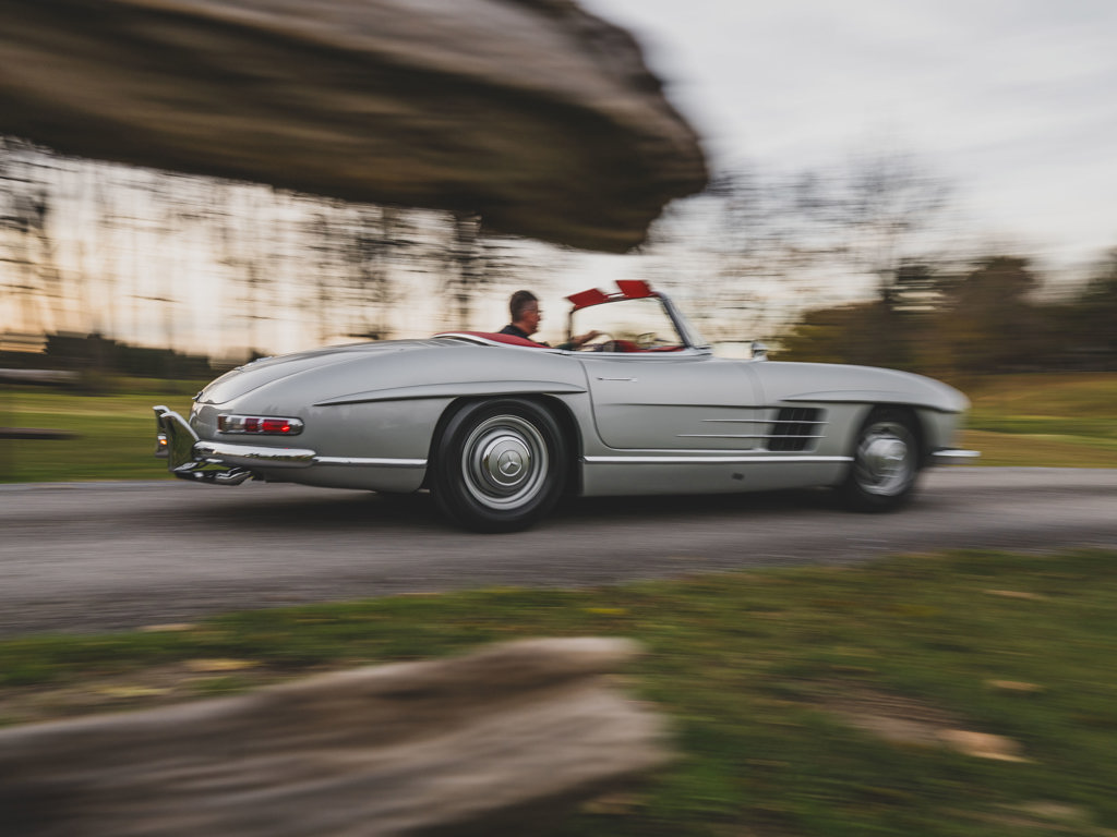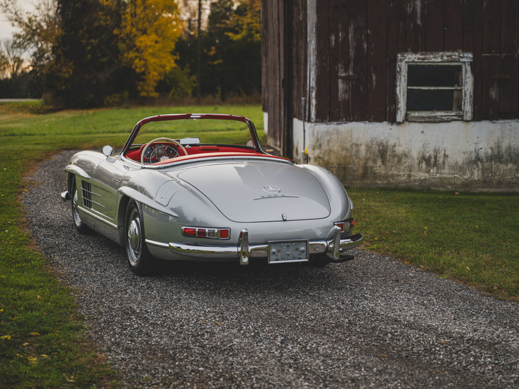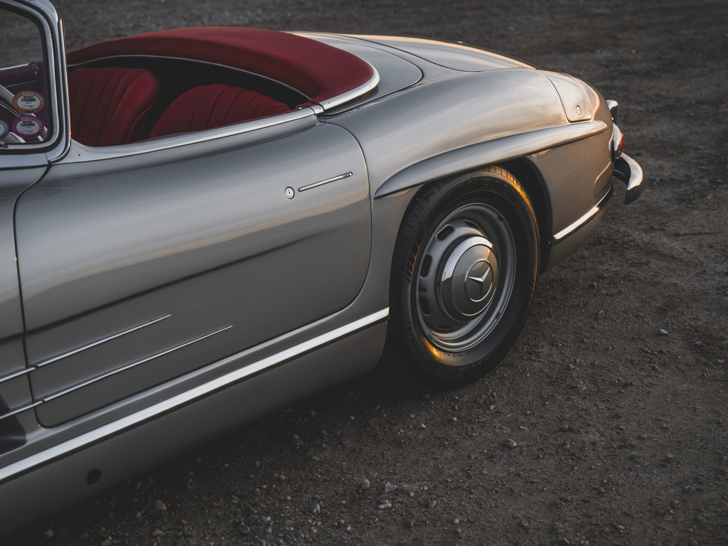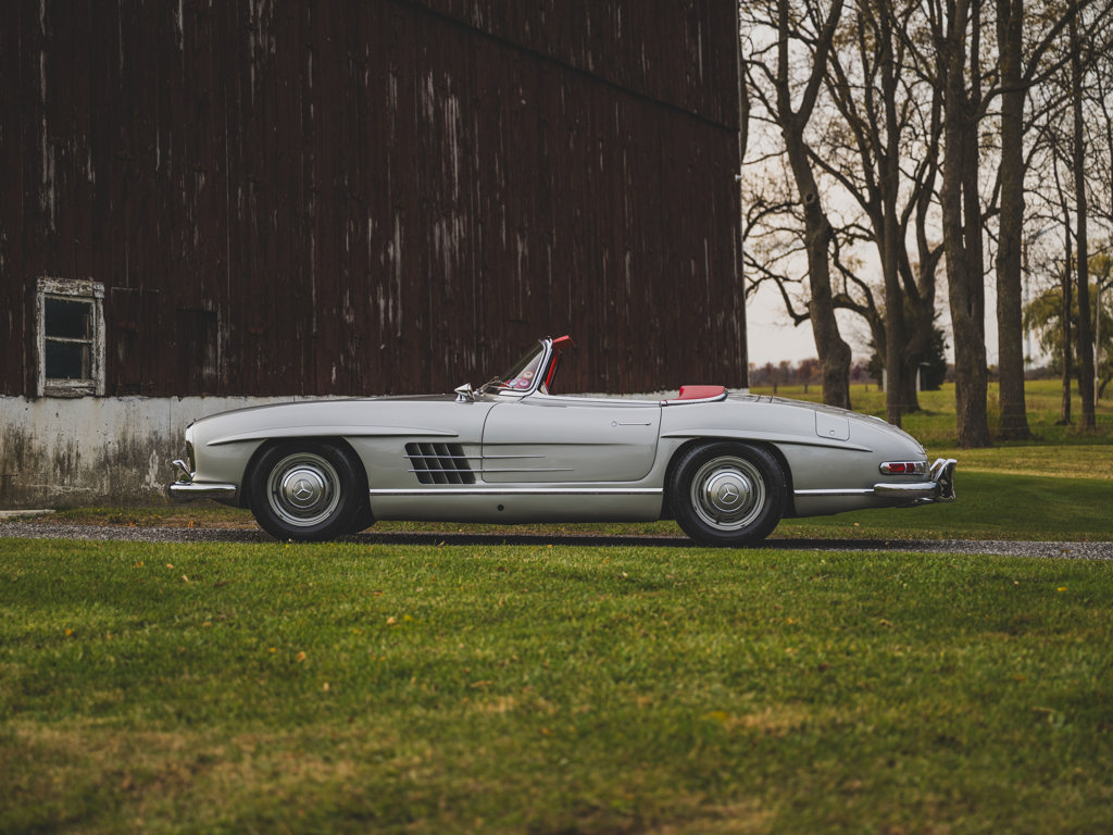 $1,100,000 - $1,400,000 USD A stellar US-spec example from the model’s first year of productionPresented in Silver Metallic over red leather with a matching red soft-topRetains numbers-matching major components, including engine, body, gearbox, rear axle, and front axlesTreated to an engine rebuild, clutch replacement, exterior touchups, and engine bay cleaning and detailing by RM Auto Restoration in 2025; over $100,000 of invoices on fileAccompanied by a tool roll, matching luggage, 2025 invoices, and a copy of its factory data card When the Mercedes-Benz 300 SL first broke cover in 1954, it presented a blinding vision of the future.