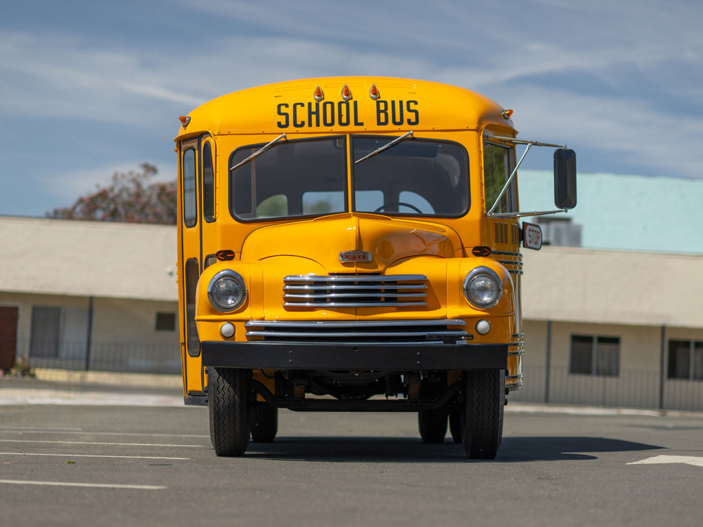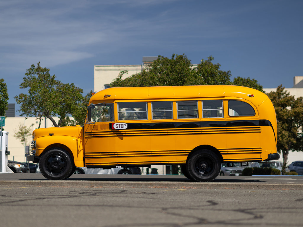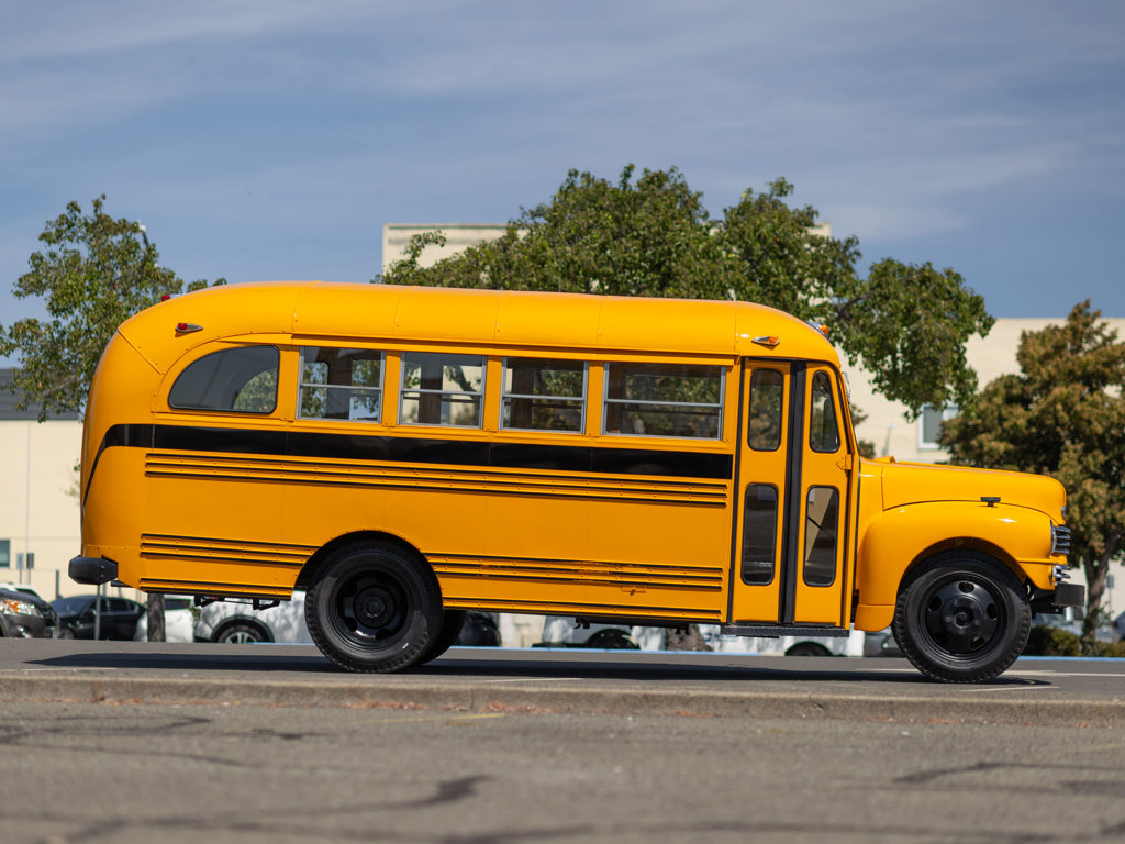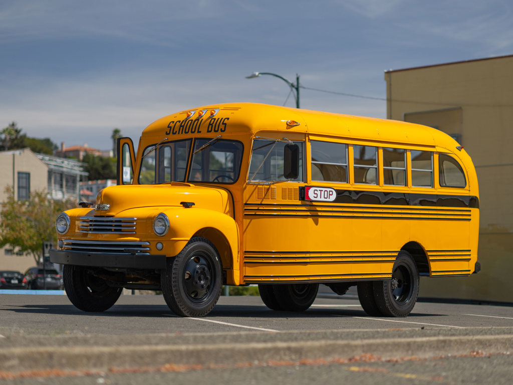This is an extremely rare, restored 1949 Nash Model 3248 School Bus by Wayne. It features an authentic livery and is described as a 'surefire crowd favorite and ideal party wagon.'