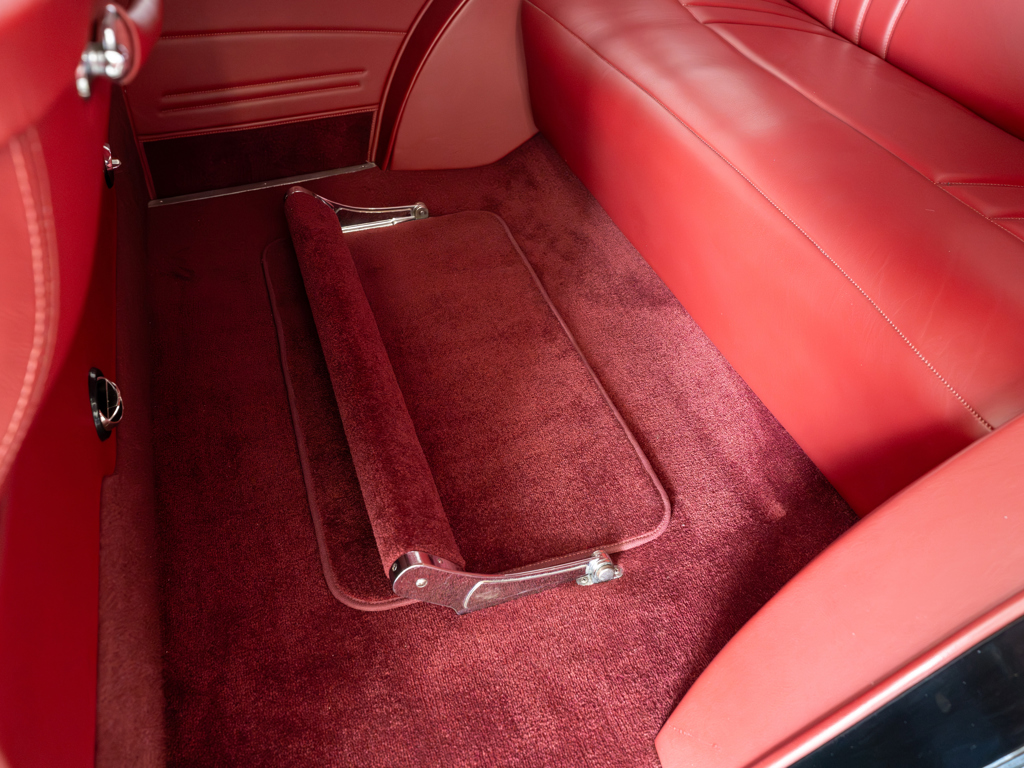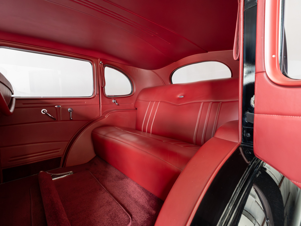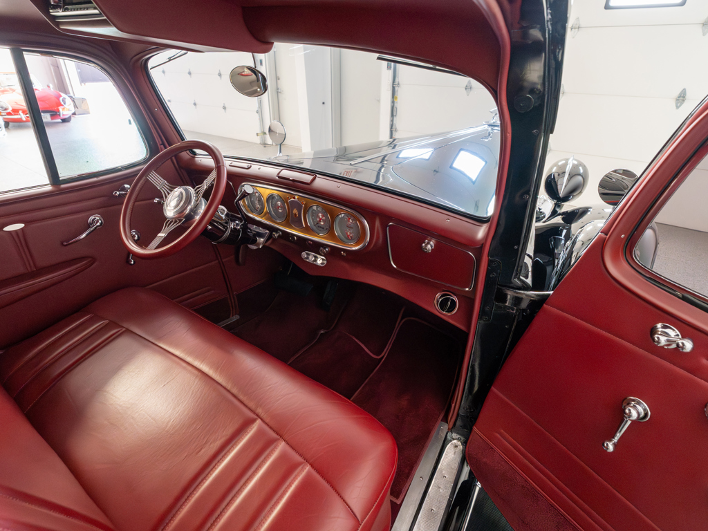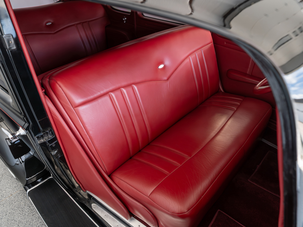 Powered by a modified Chevrolet LS3 V-8 estimated to produce 560 hp Equipped with power steering, front disc brakes, and air conditioning for improved drivability and comfort Maintains elegant pre-war looks with whitewall tires, chrome brightwork, and other period features Nicely appointed interior with well-padded seats covered in red leather A highly capable machine for touring and showing
