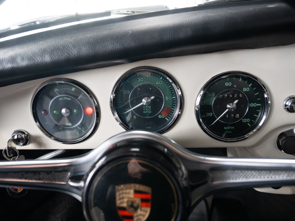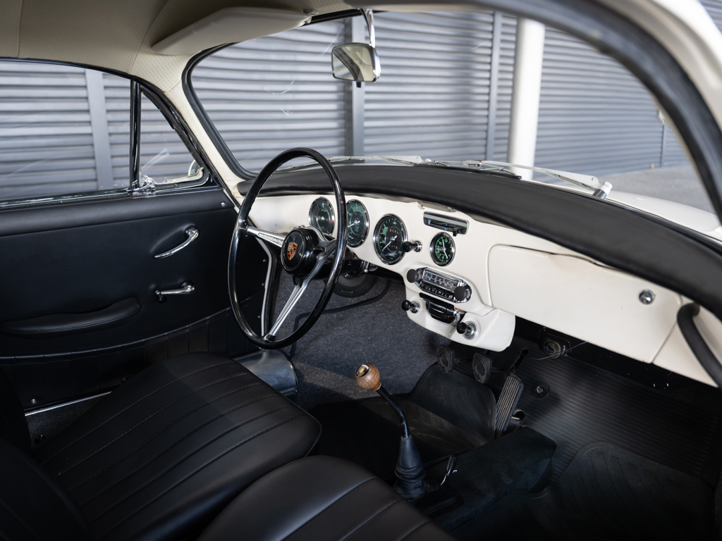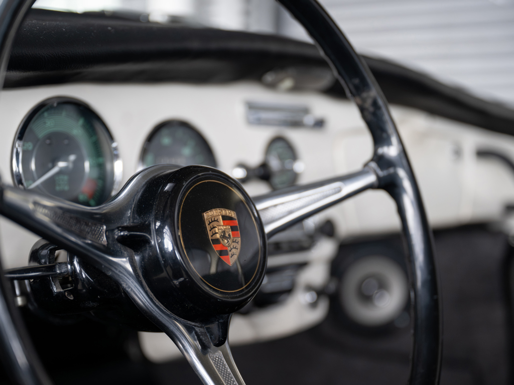 Offered Without Reserve | $90,000 - $120,000 USD An authentic, factory-built Porsche 356 SC with a numbers-matching engine and gearboxSold new in Texas and believed to have spent most of its life in the American SouthwestPresented in factory-correct Hellelfenbein (Light Ivory) over black leatherette trimReceived nearly $25,000 in service work in 2025 by Porsche Colorado SpringsIncludes a copy of its original Kardex, service and parts invoices, and coveted Porsche Classic Technical Certificate The Porsche 356 C, the final and most polished version of the iconic model, introduced a range of enhancements over its predecessors, including upgraded steering and suspension, along with four-wheel disc brakes.