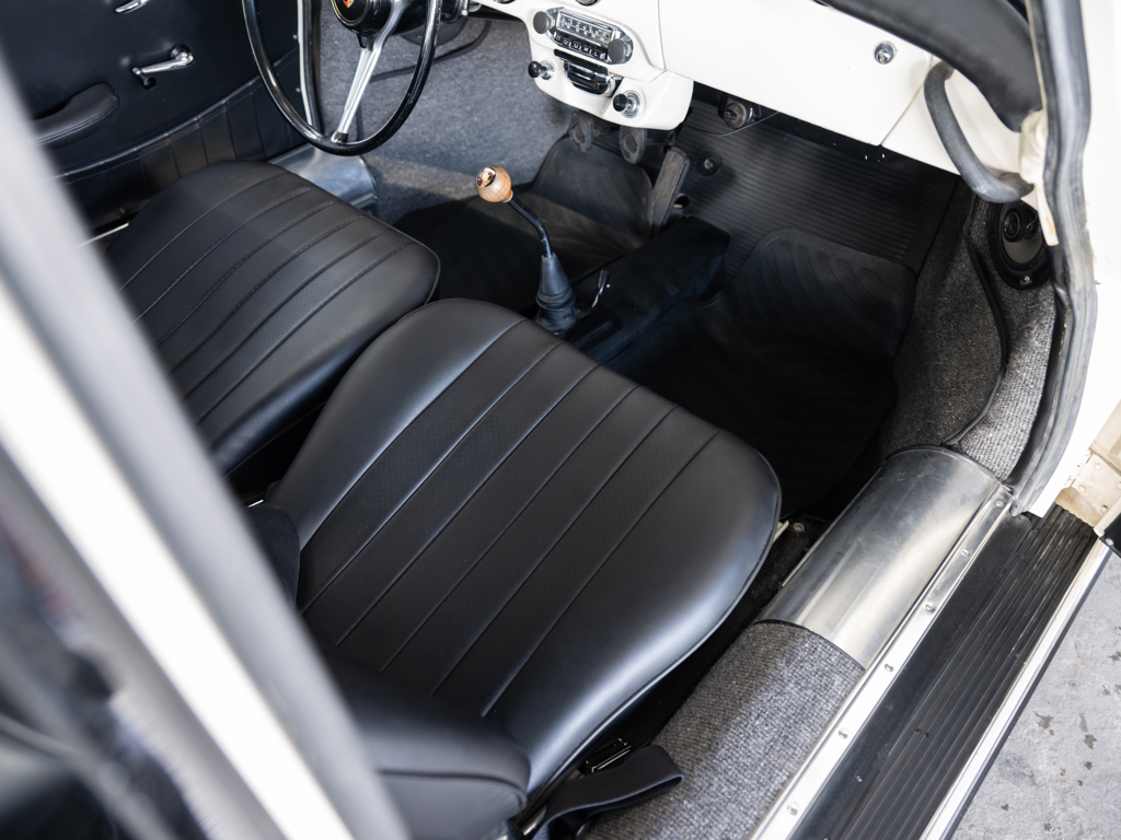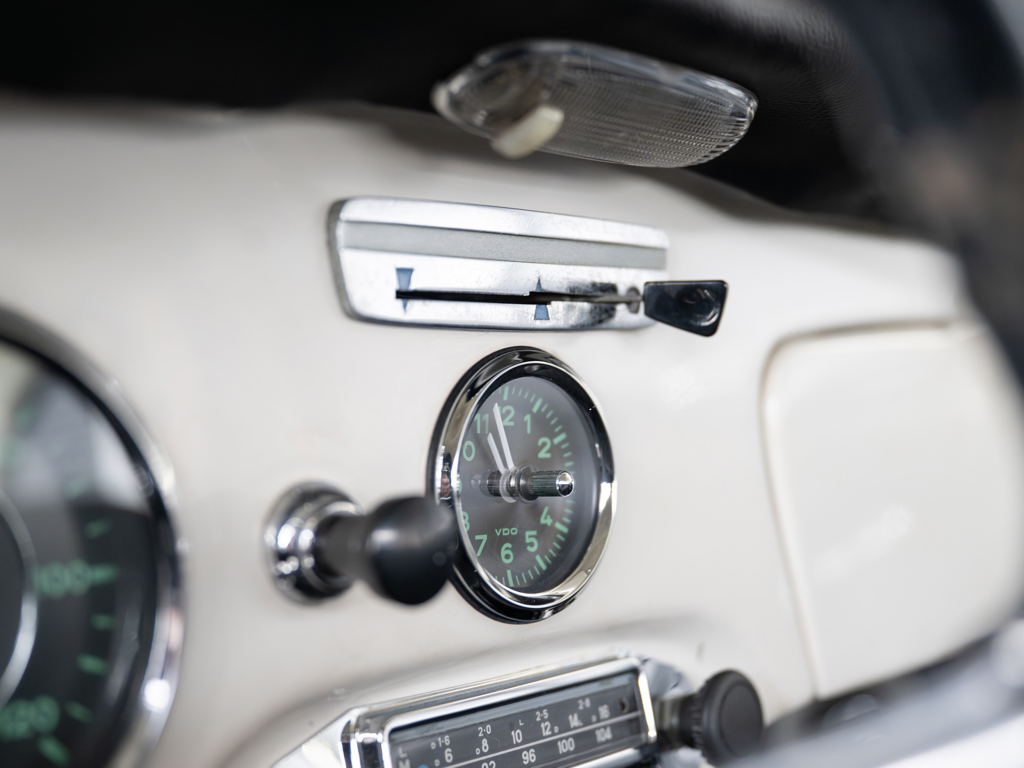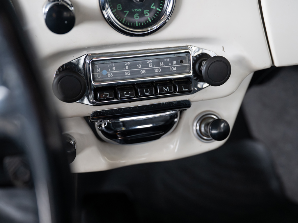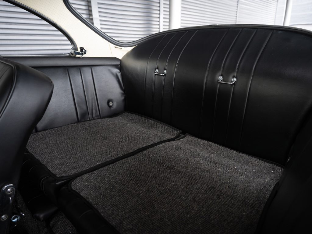 This 1964 Porsche 356 SC Coupe, finished in Light Ivory over black, boasts a numbers-matching engine and gearbox. Recently serviced with nearly $25,000 spent, it includes its Kardex, Porsche Classic Technical Certificate, and restoration photos, making it a highly desirable example.