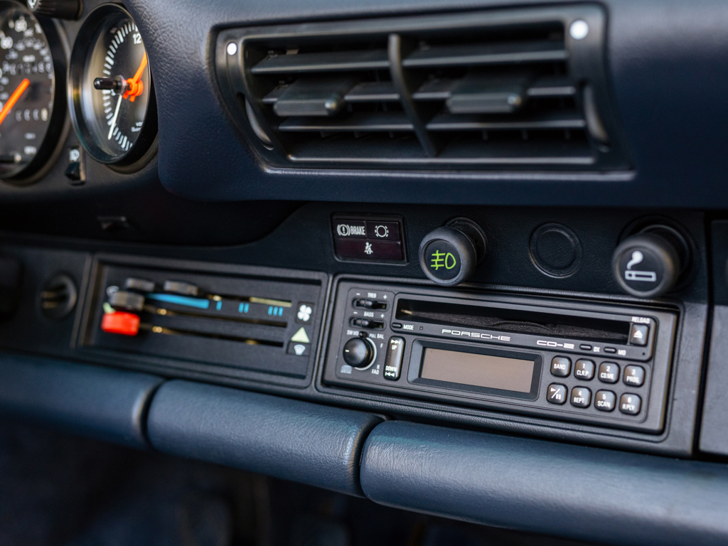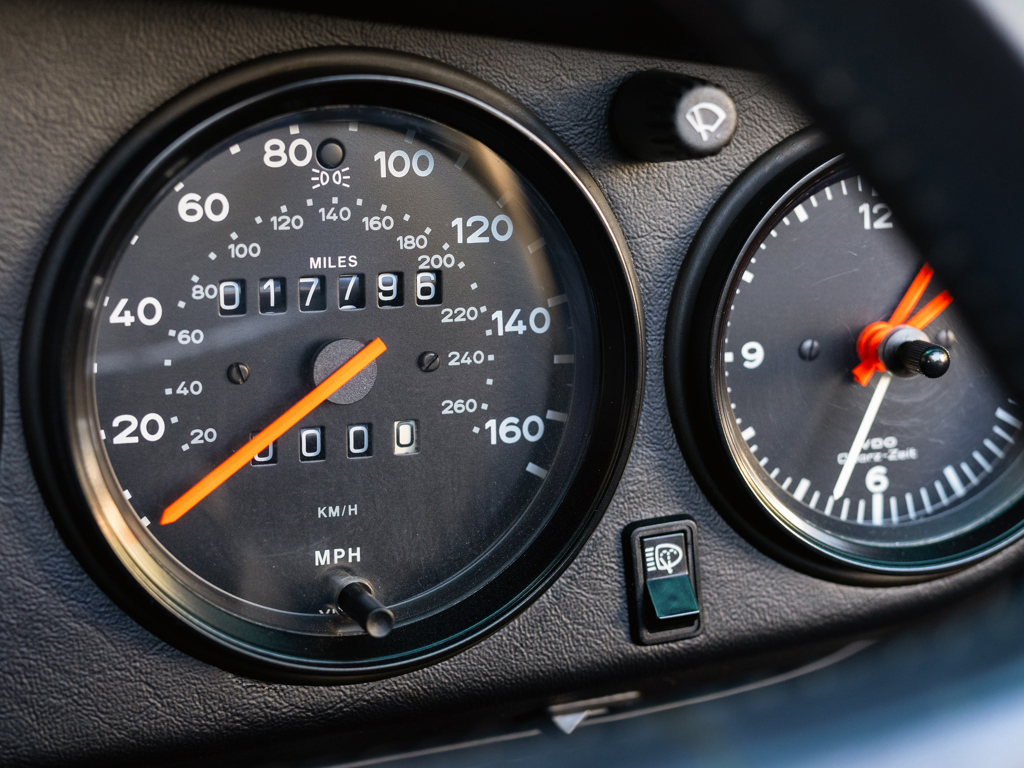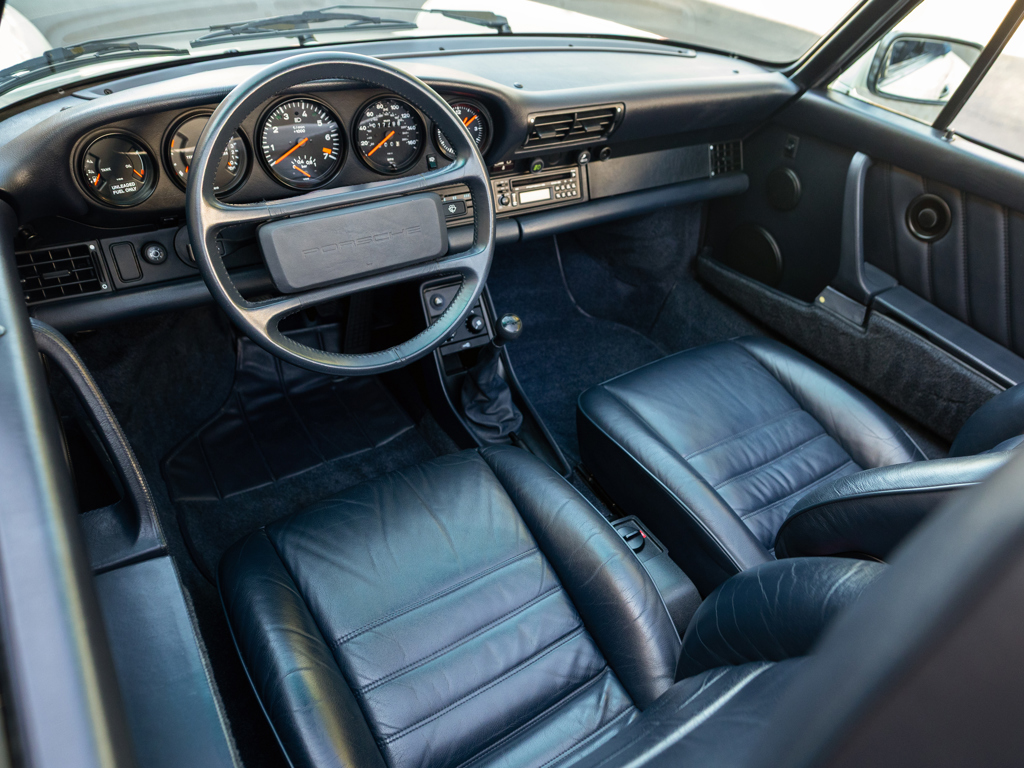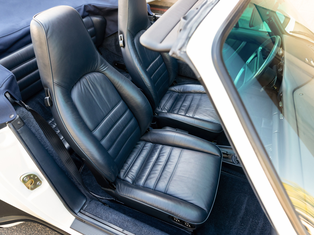 Formerly a member of the renowned White Collection in Houston, Texas Showing 17,796 miles on the odometer at cataloguing time Retains numbers-matching engine and gearbox, per accompanying Porsche Certificate of Authenticity Grand Prix White over a Marine Blue interior with supple leather seats Nicely equipped from the factory with a shorter gearstick, Porsche CD-2 radio, limited slip differential, and additional amplifier Meticulously documented with a collection of invoices and correspondence