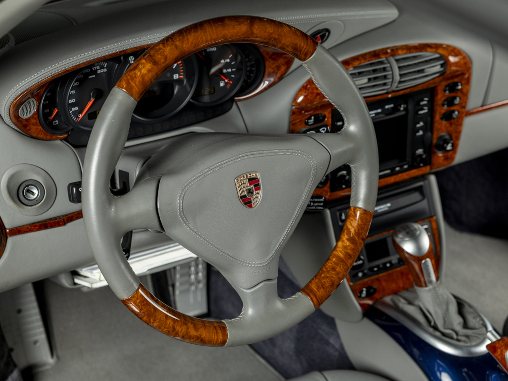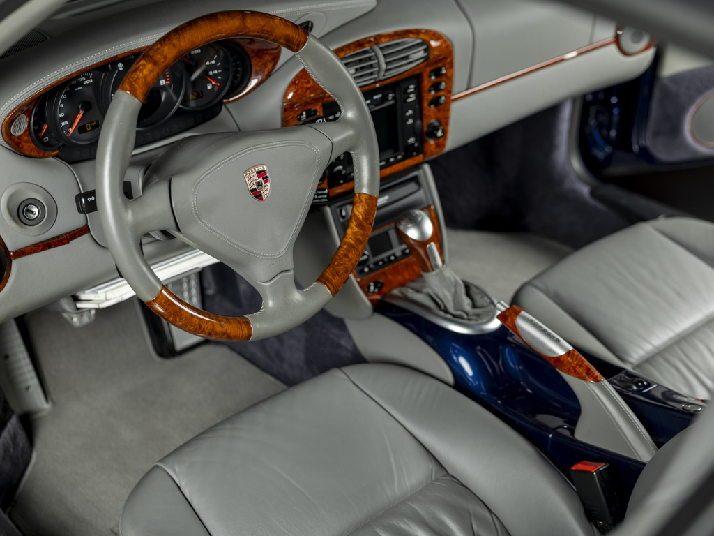 Offered Without Reserve | $80,000 - $100,000 USD Striking, well-optioned 996-generation 911 TurboFinished in lovely Lapis Blue Metallic paint over a Graphite Grey full leather interiorFeatures rarely seen Light Burr Maple Wood interior trim415-hp, 3.6-liter twin-turbocharged flat six-cylinder engine; six-speed manual transmissionShowing 7,116 miles at the time of cataloguing, with over $13,000 in service and restoration work completed in 2024 First unveiled in September 1999, Porsche’s new 996-generation 911 Turbo featured all-wheel drive and a new water-cooled 415-horsepower engine derived from the spectacular 911 GT1 racecar.