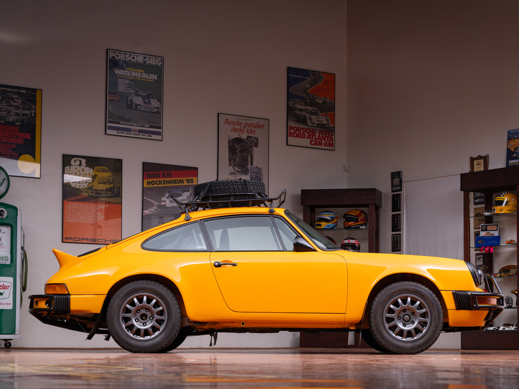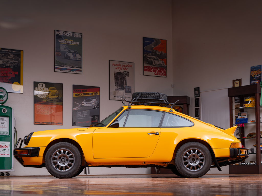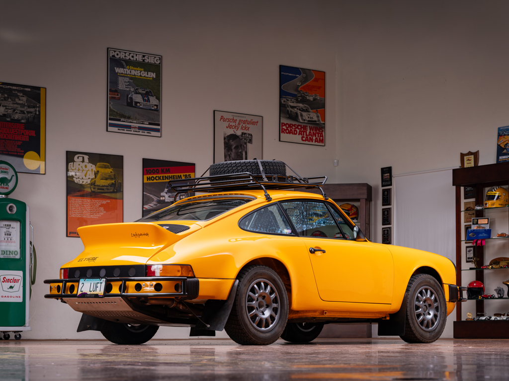 This 1987 Porsche 911 'Safari' by LuftAuto, offered from The Jim Edwards Collection, is one of only three rally-prepared cars modified with input from renowned experts. It features a modified European-spec 3.2 engine built by Rothsport’s Jeff Gamroth and a heavily modified suspension, making it a unique and high-performance vehicle.