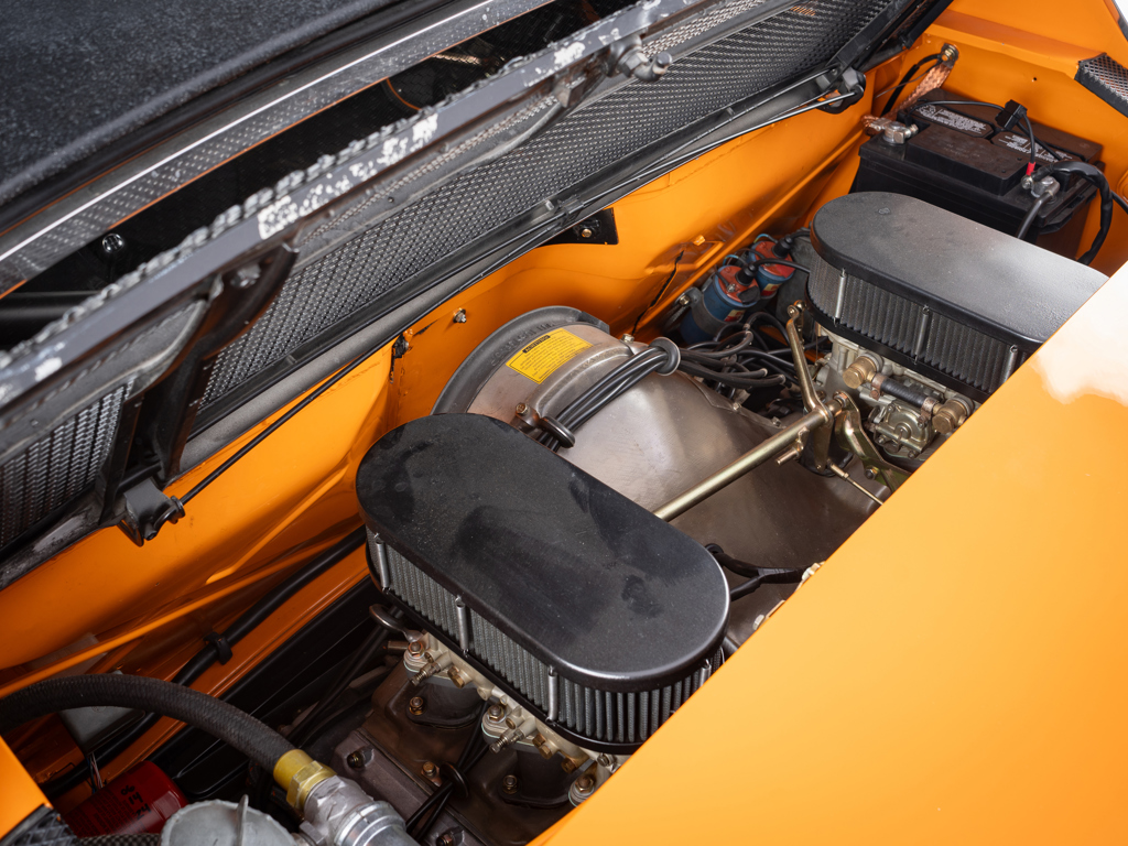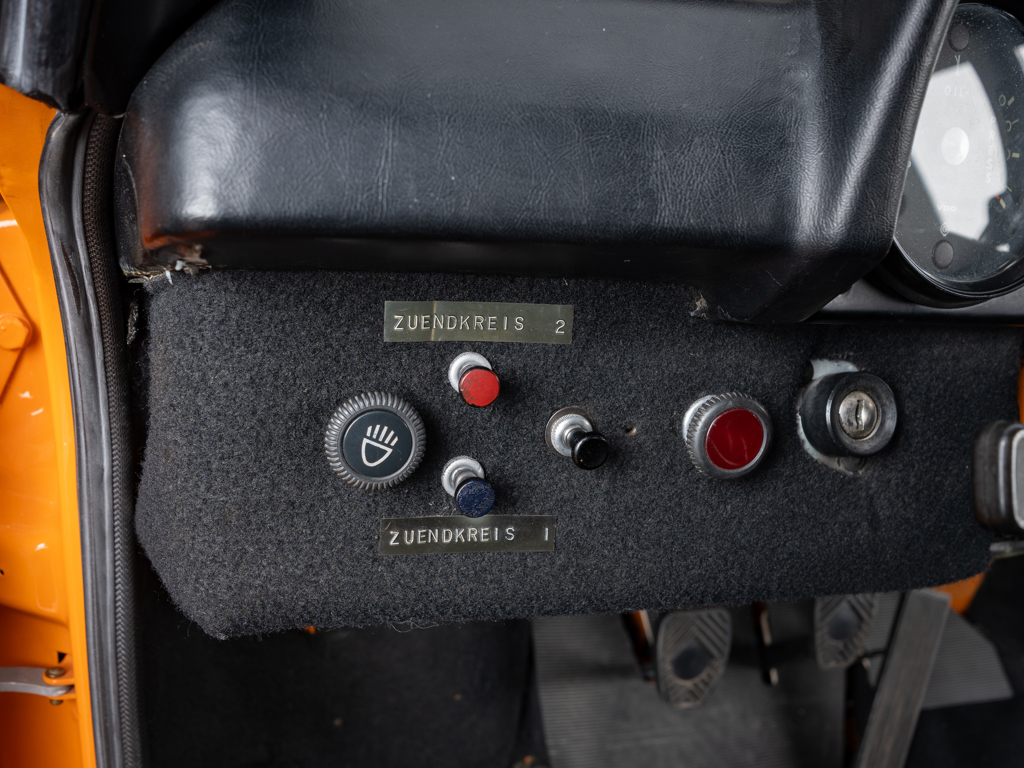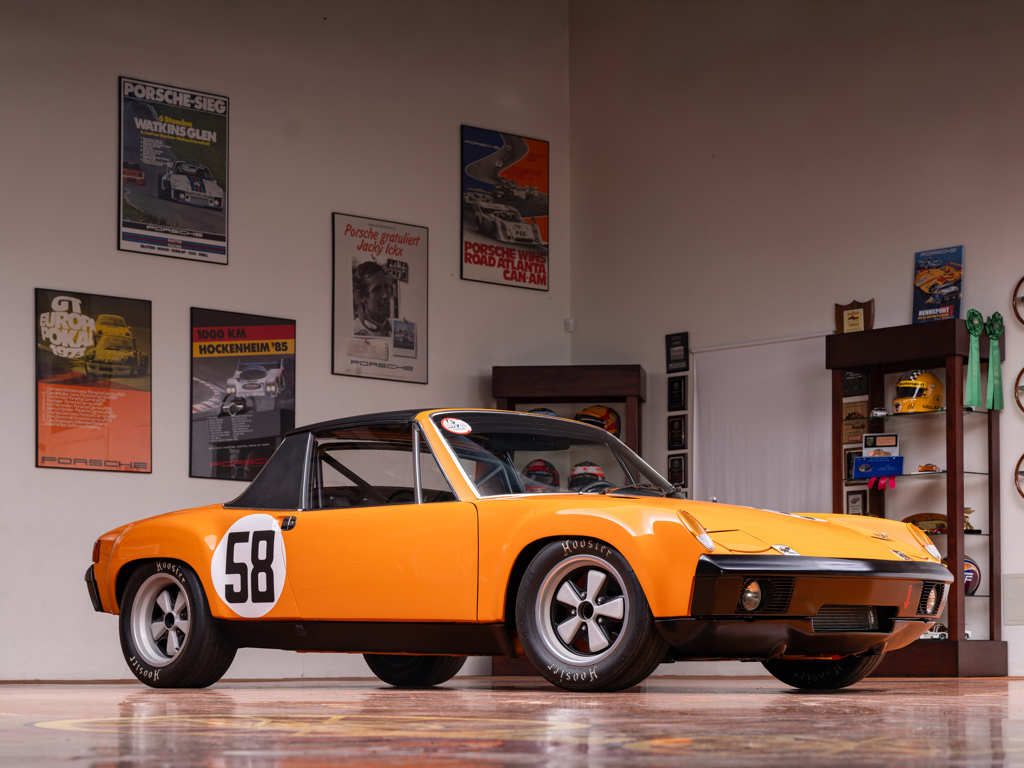 This 1970 Porsche 914/6 R, offered from The Jim Edwards Collection, is believed to be the first of twelve factory racecars and was driven by Vic Elford. It features chassis reinforcements, lightweight body panels, and a 906-specification 2.0-liter engine.
