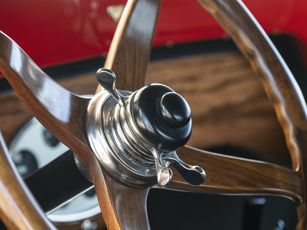 This 1927 Stutz Vertical Eight speedster, formerly owned by Ray and Helen Keto, is offered to benefit the San Marino Motor Classic. It features a striking red and yellow livery and would benefit from mechanical freshening before extended road use.