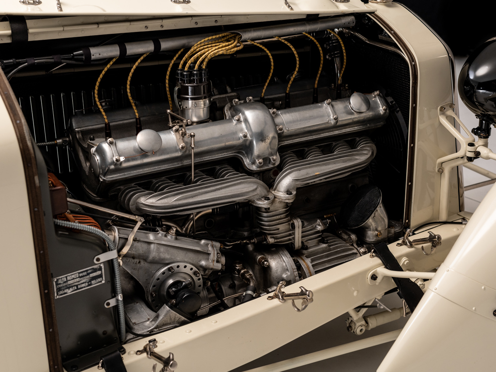 Beautifully restored and presented in its wonderful white over green leather colour combination, unveiled to great acclaim at the 2023 Concours of Elegance at Hampton Court Palace Matching-numbers engine uprated to 2.6-litre capacity by marque specialist Neil Twyman Rich and storied ownership history with notable custodians including the avid car collector Lord Laidlaw Clothed in a stunning Le Mans-style Tourer body built by Rod Jolley Coachbuilding, inspired by the sister 8C driven by Mike Hawthorn Importantly chronicled by esteemed Alfa Romeo historian Simon Moore in the authoritative The Legendary 2.3: Alfa Romeo 8C 2300 and other works Accompanied by a comprehensive history file that charts the car’s early years in Italy through to its more recent restorations Magnifiquement restaurée et présentée dans une superbe teinte blanche avec intérieur en cuir vert, dévoilée avec succès en 2023 lors du Concours d'Élégance de Hampton Court Palace Moteur d'origine (numéros concordants) augmen...