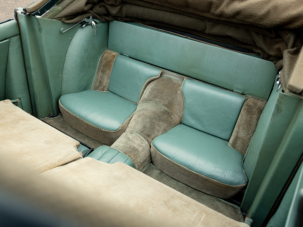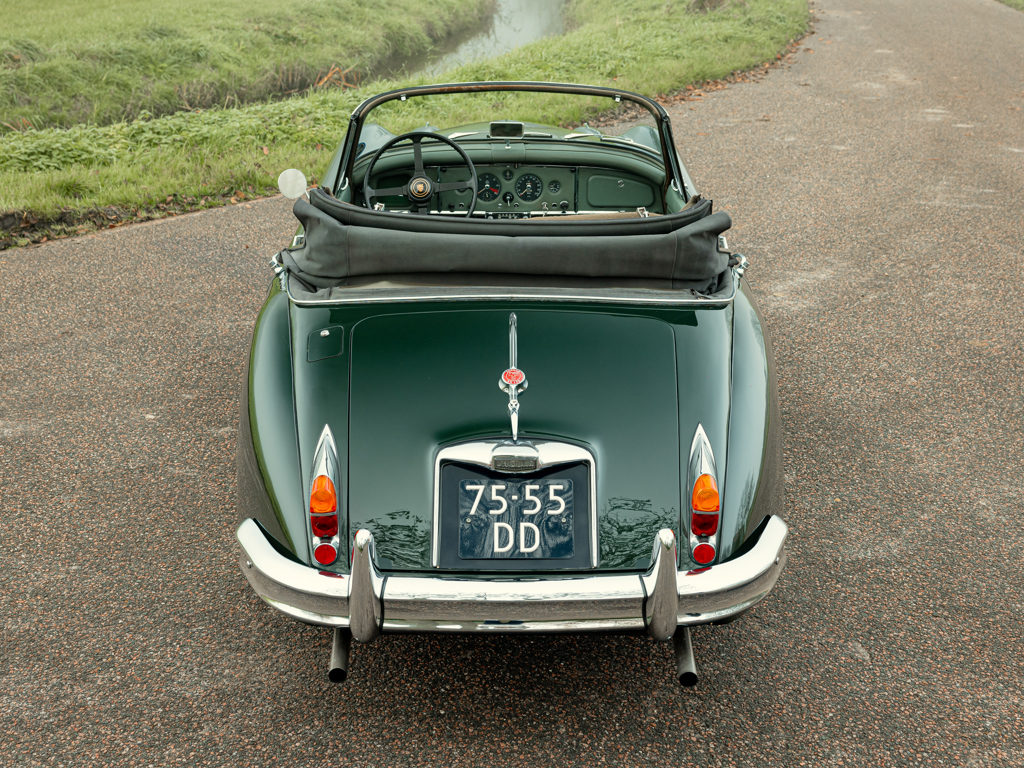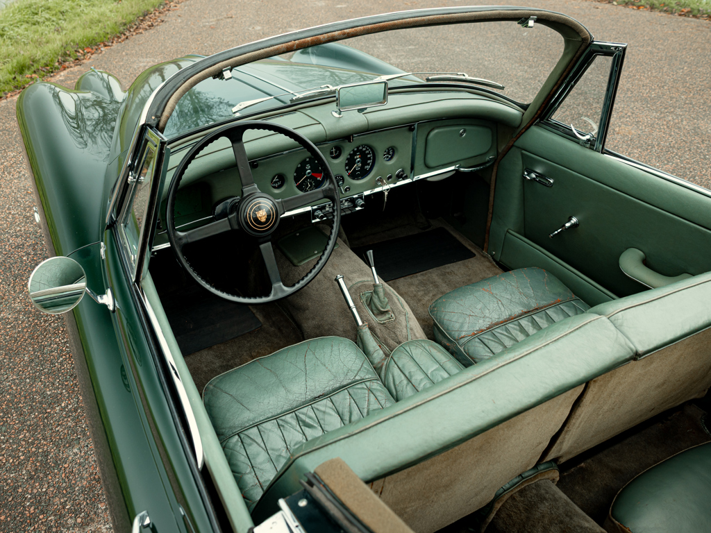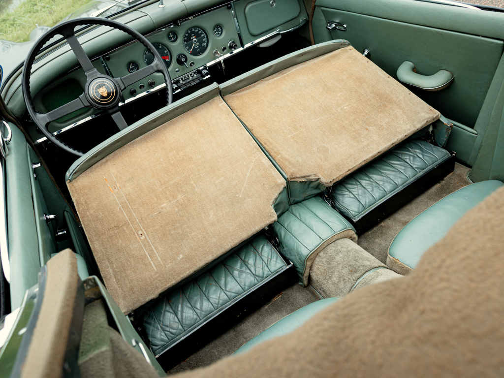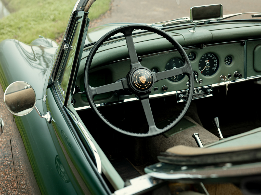 Thought to be one of only 68 examples of the XK 150 S 3.8-Litre Drophead Coupé built in right-hand drive; since converted to left-hand drive Single family ownership from 1968 until now Finished in its factory-correct colour of British Racing Green Retains its matching-numbers engine block and cylinder head L’un des 68 exemplaires de la XK 150 S 3.8-Litre Drophead Coupé construite pour la conduite à droite ; depuis convertie pour la conduite à gauche Une seule famille de propriétaires de 1968 à nos jours Peinture d’origine British Racing Green Conserve son bloc moteur et sa culasse à numéros concordants