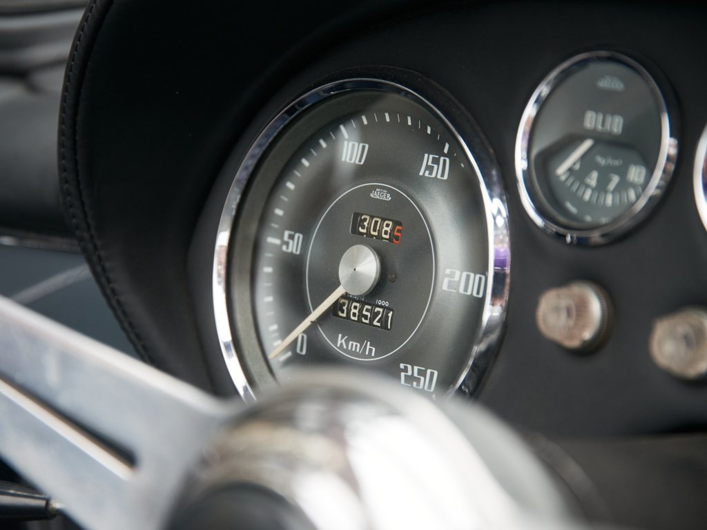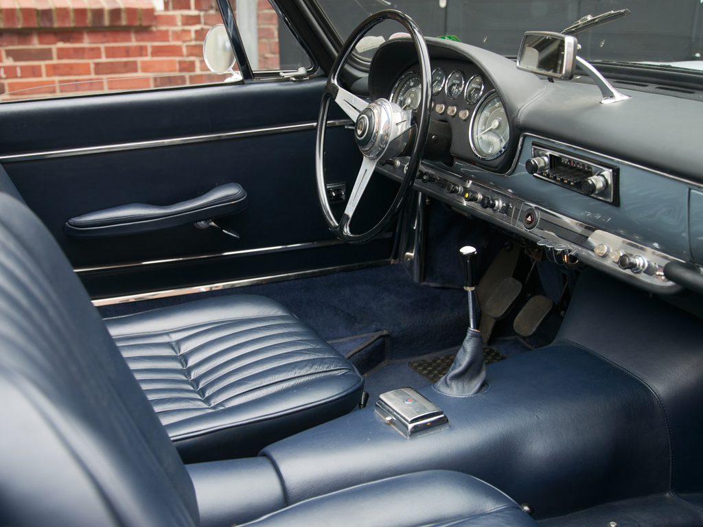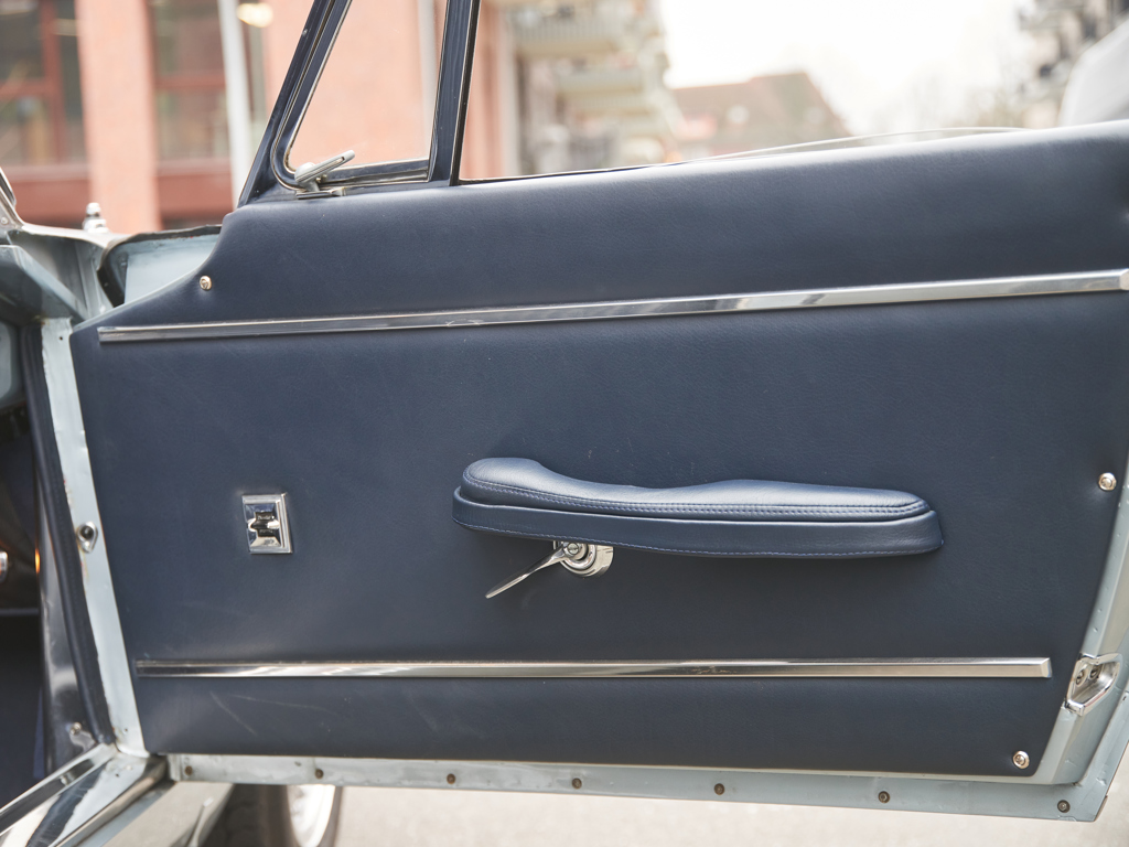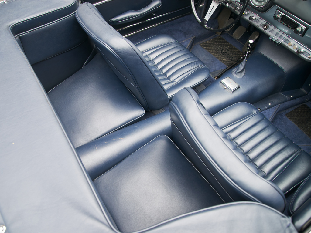The car, originally Oro Longchamps over Blue, is now an attractive opalescent blue and has had recent mechanical work totaling €39,000.