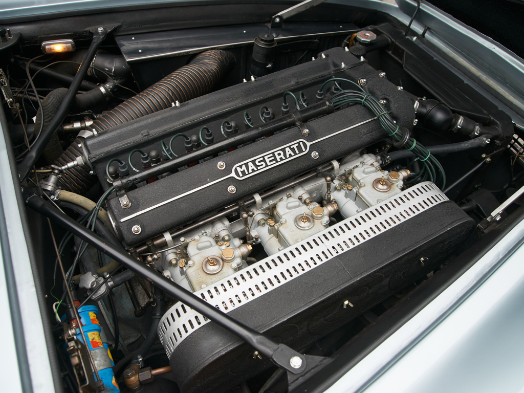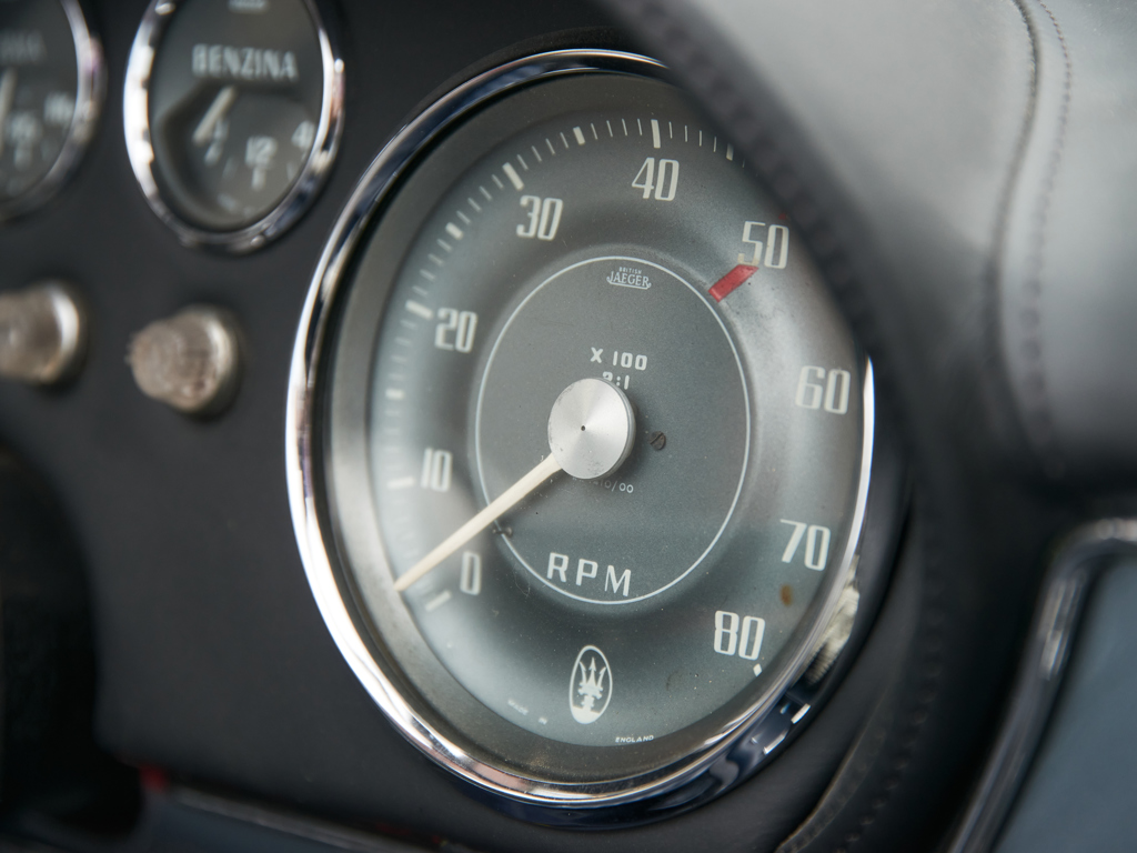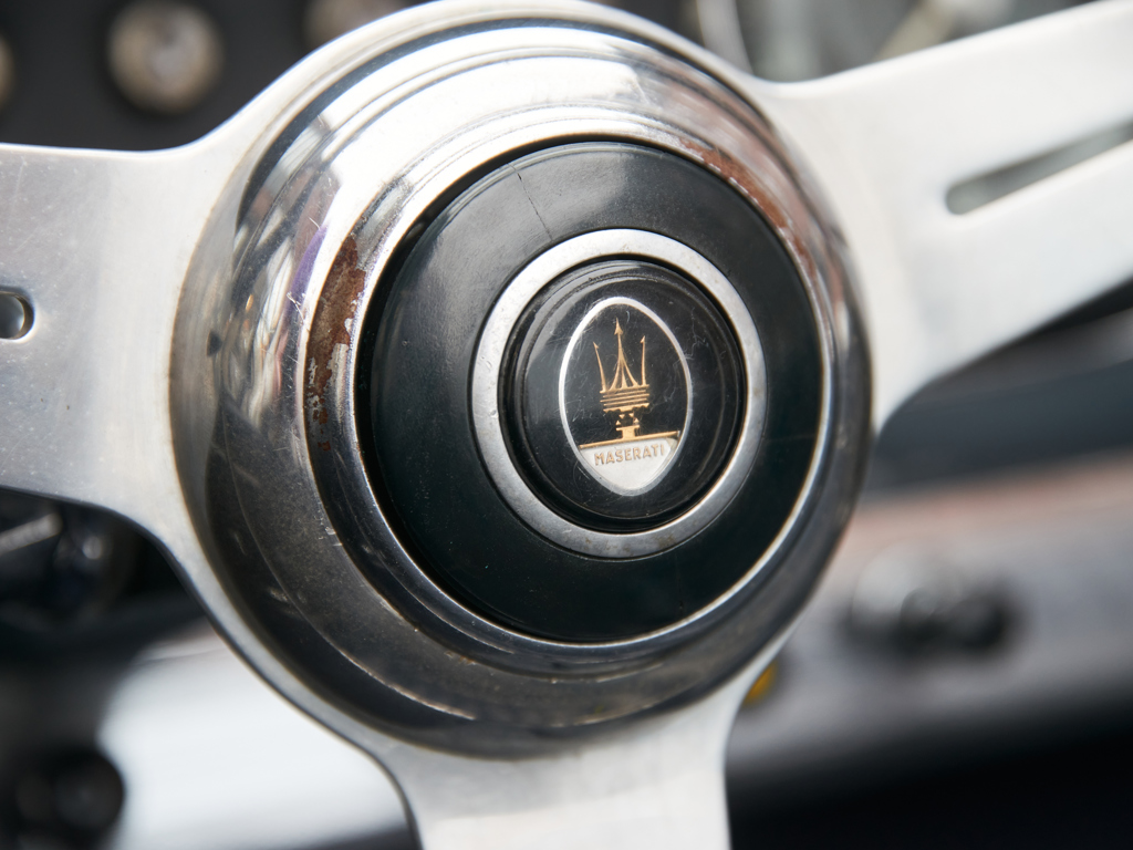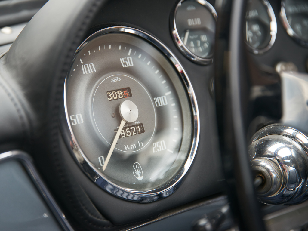 Per the records of Archivio Storico Maserati, chassis number AM101 1391 was originally finished in the metallic gold shade of Oro Longchamps over a Blue Connolly leather interior.