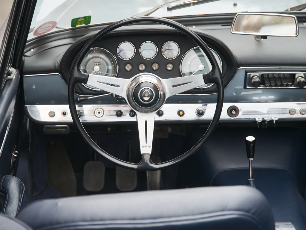 This 1962 Maserati 3500 GT Spyder by Vignale, one of 242 built, features a matching-numbers 3.5-litre straight-six engine and a desirable five-speed ZF manual gearbox.